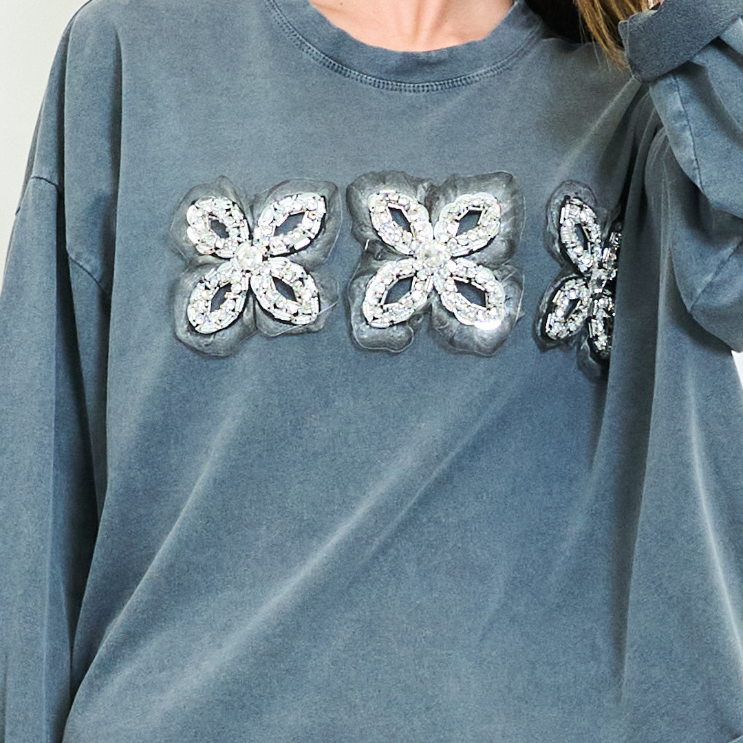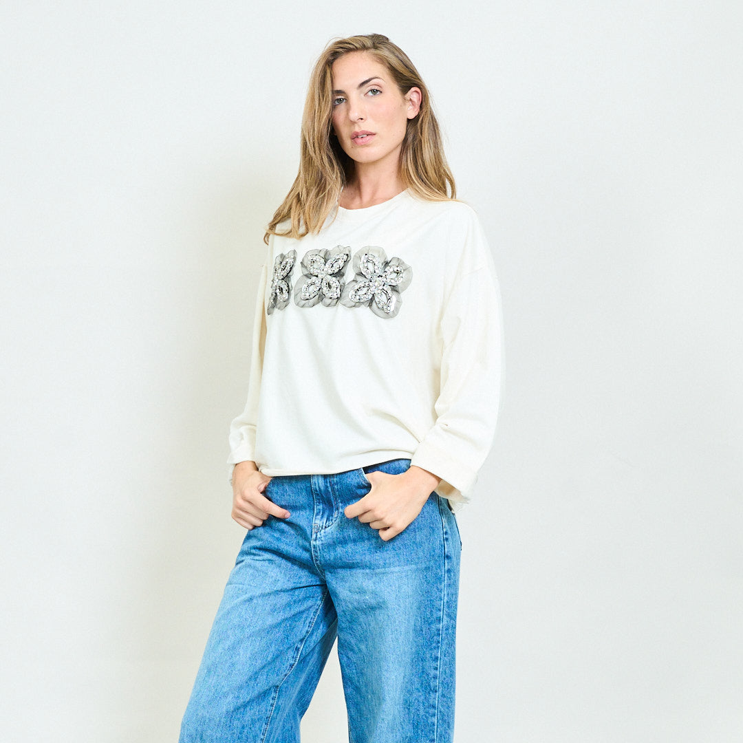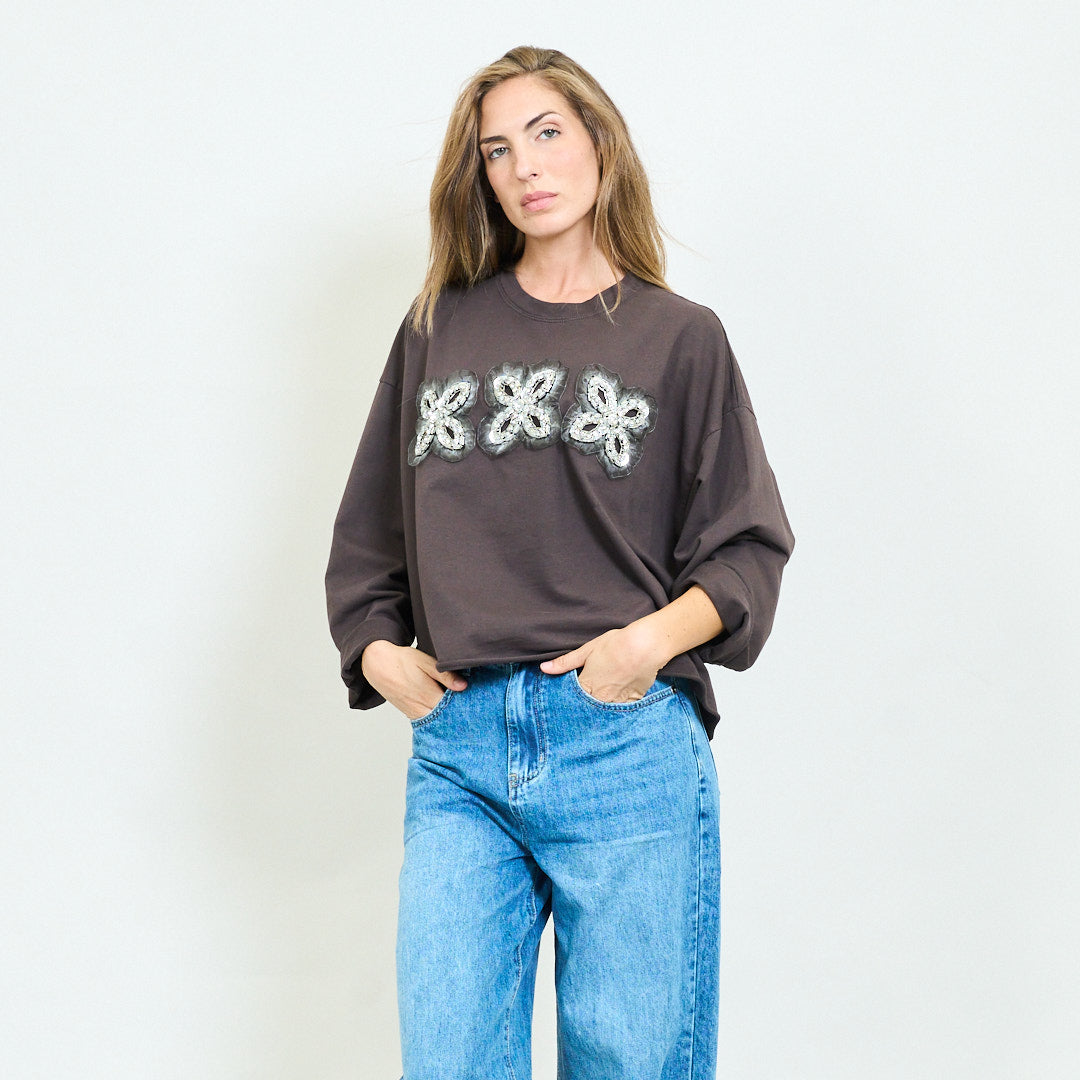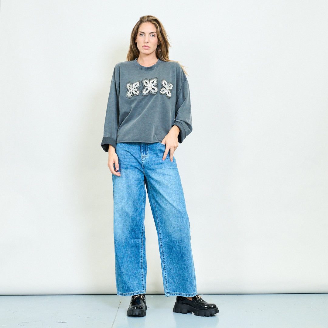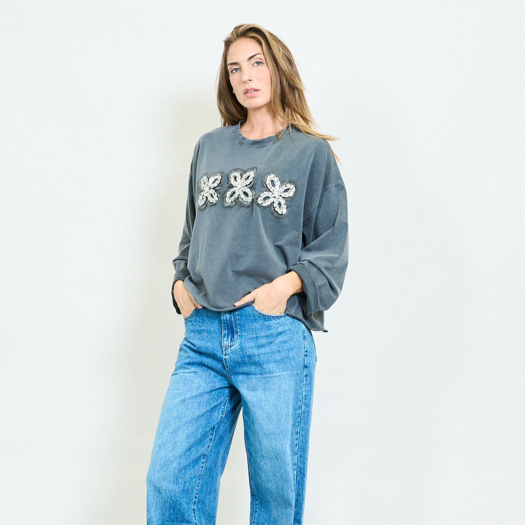 Pyntet sweatshirt med paljetter blomsterapplikationer engros
