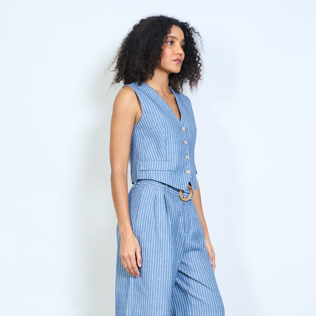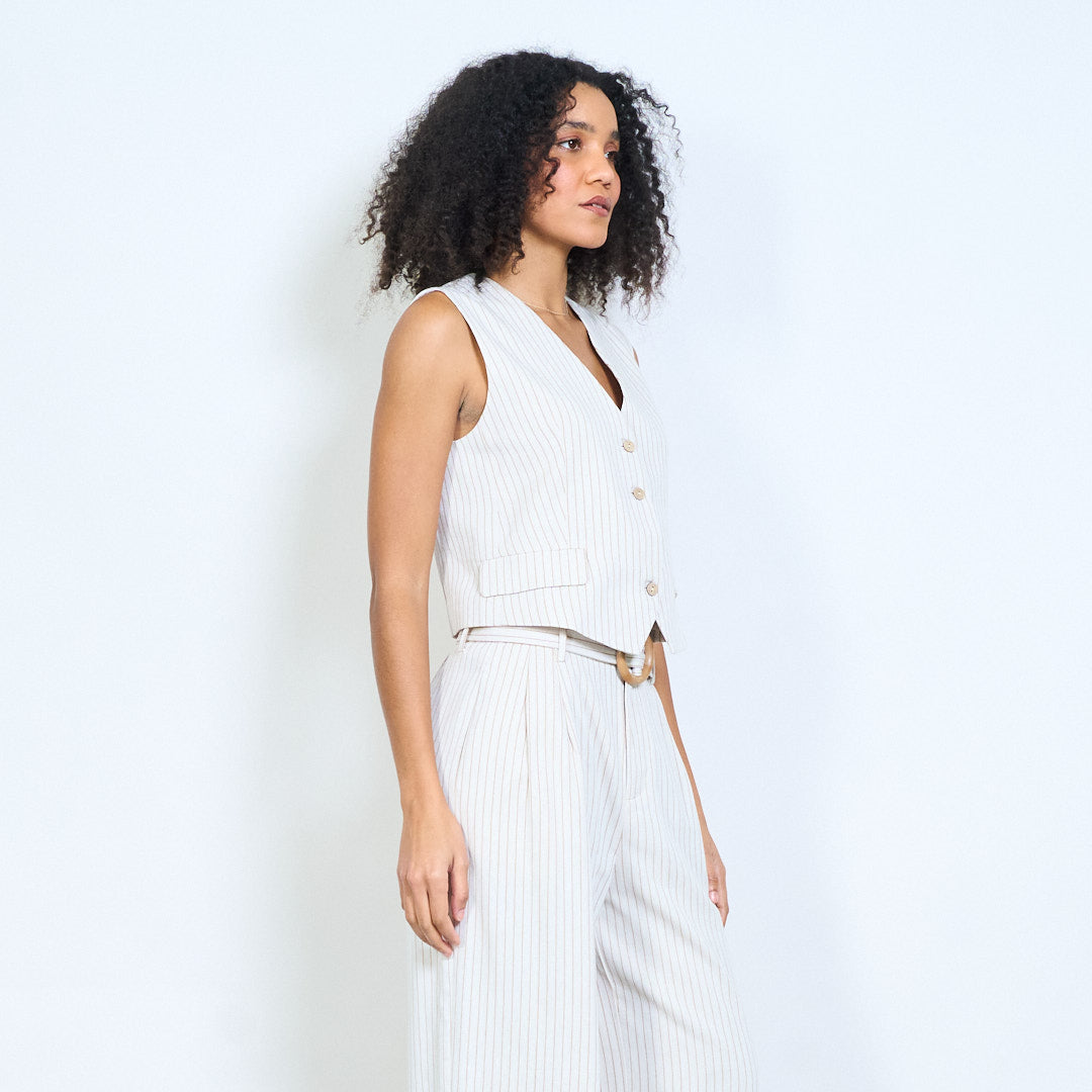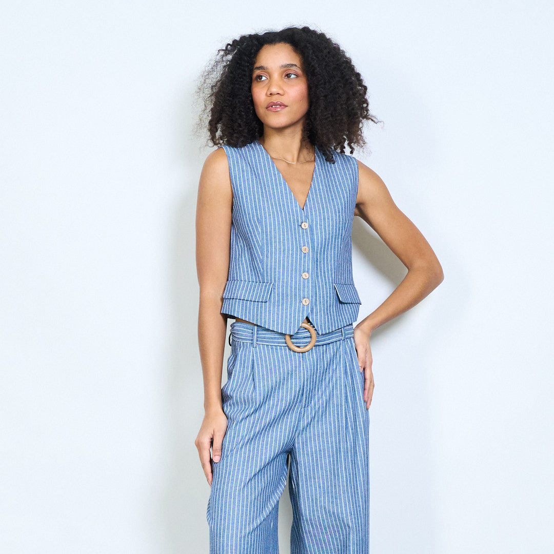 Nålestribet skræddersyet v-hals knap foran vest engros