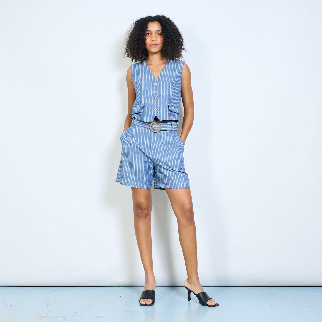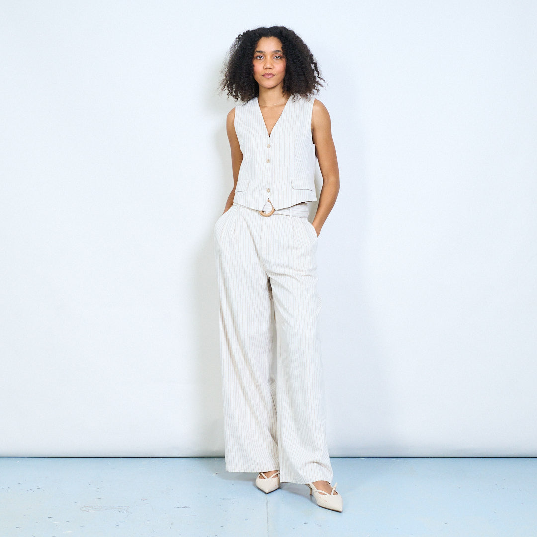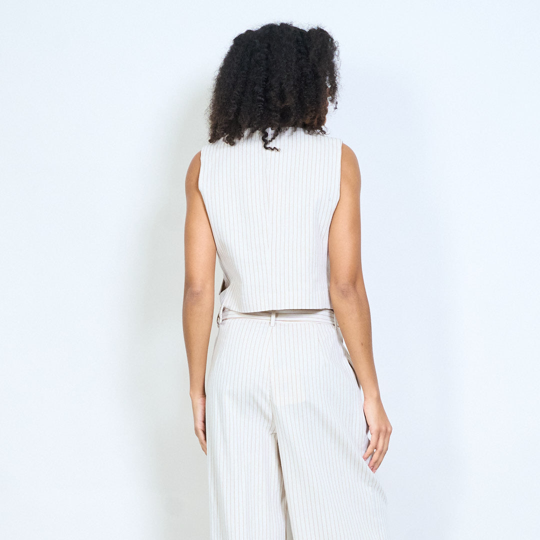 Nålestribet skræddersyet v-hals knap foran vest engros