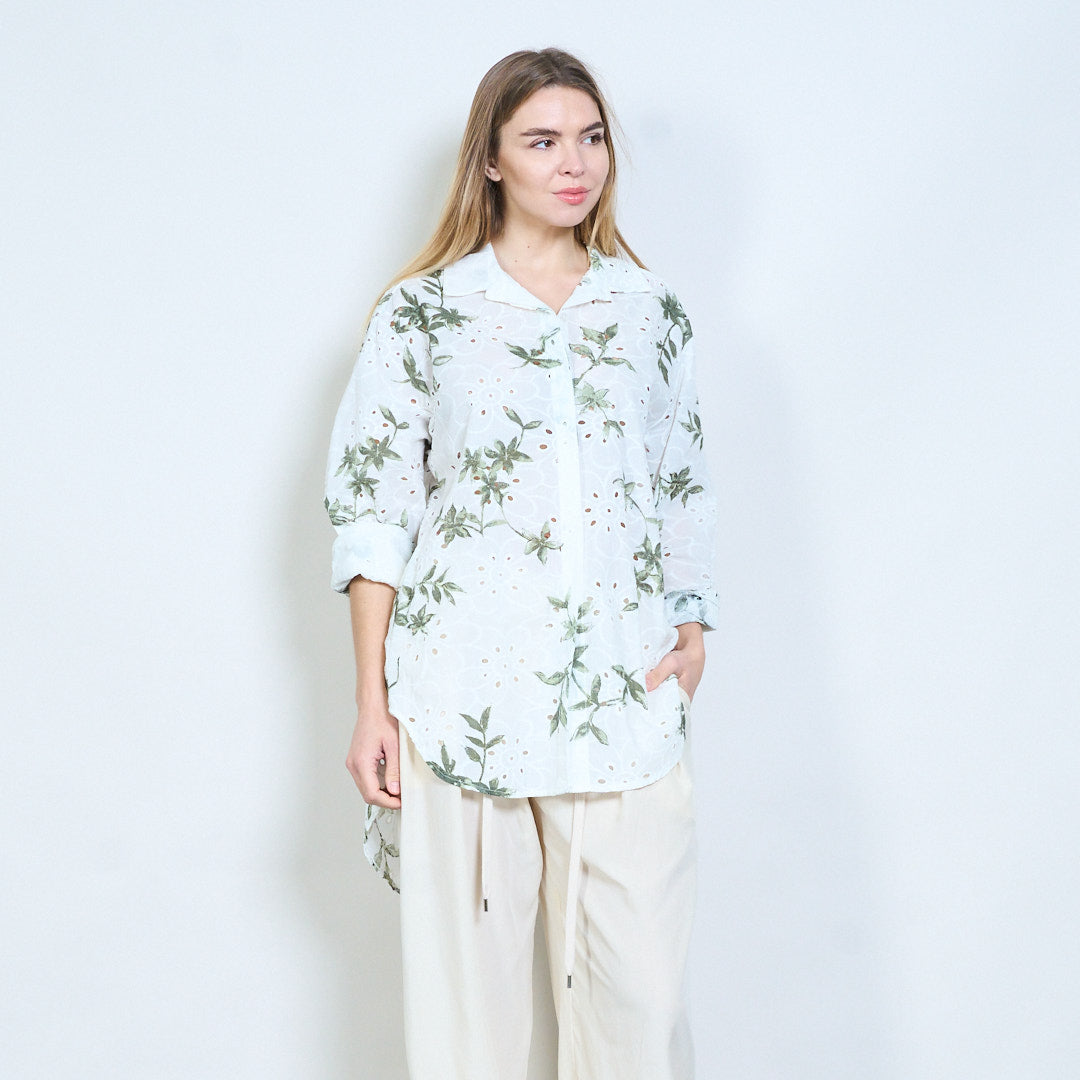Botanisk print longline skjorte engros