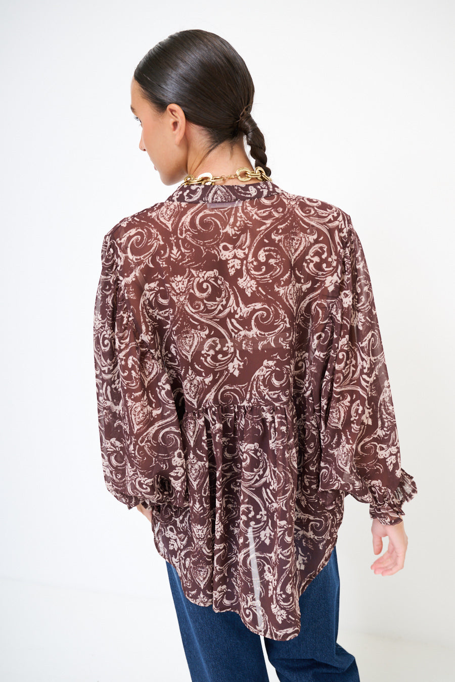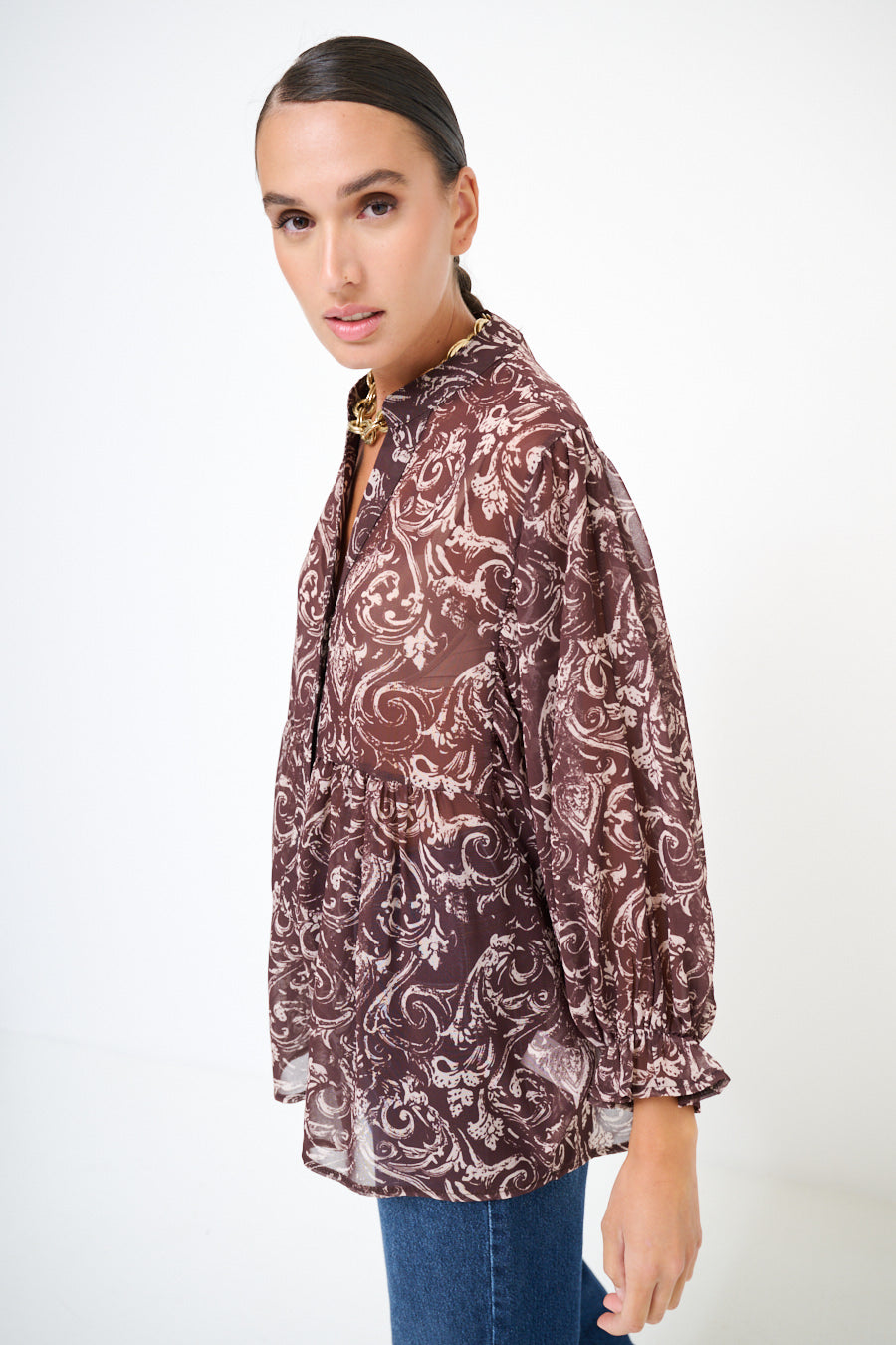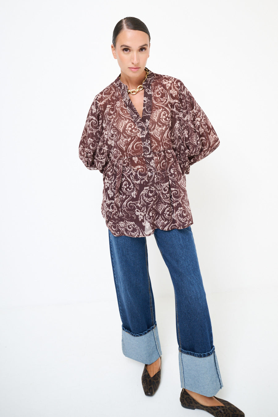 Paisley Print Sheer Oversized Button Blouse Wholesale