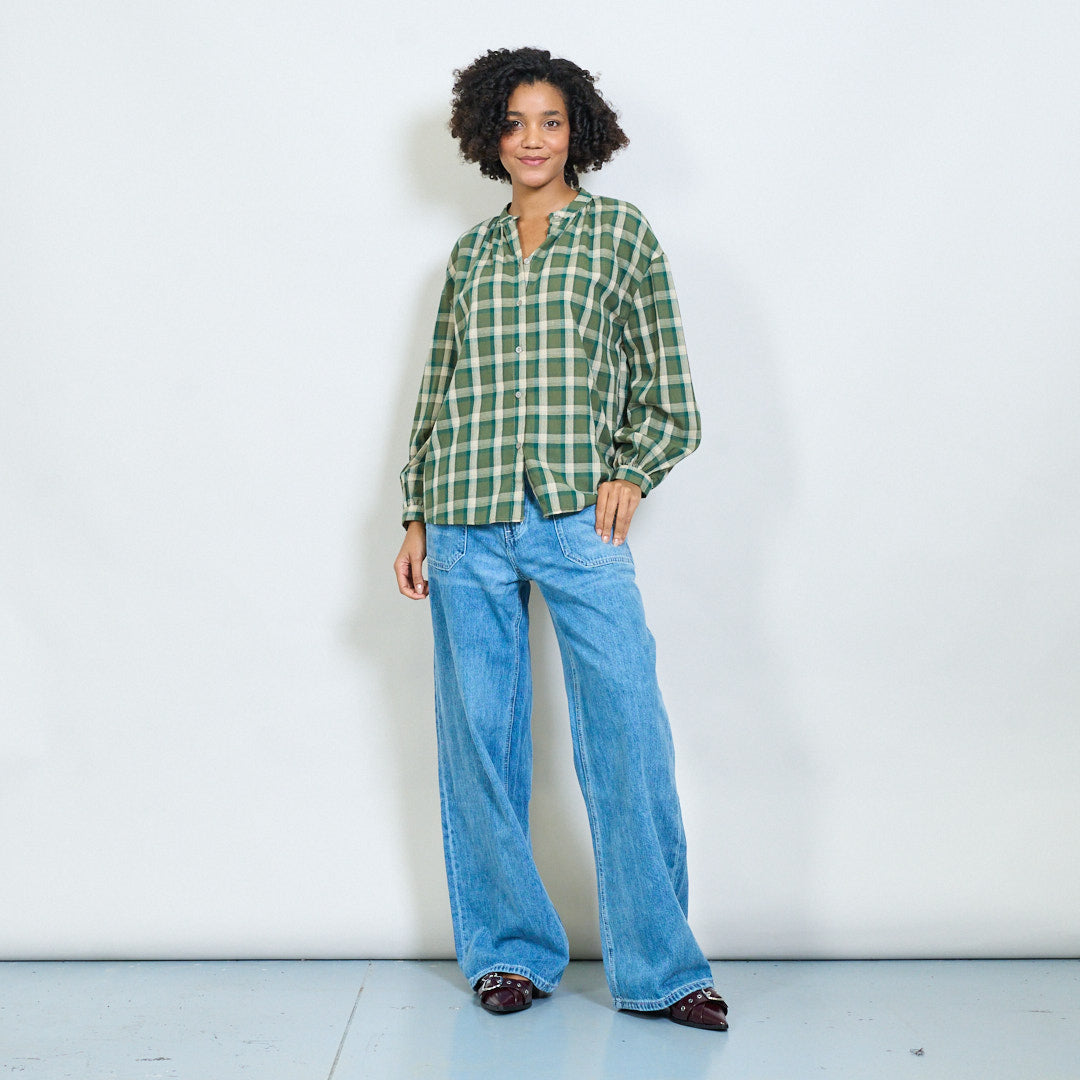 - Bånd kravehalsudskæring med delvis lukning af knap