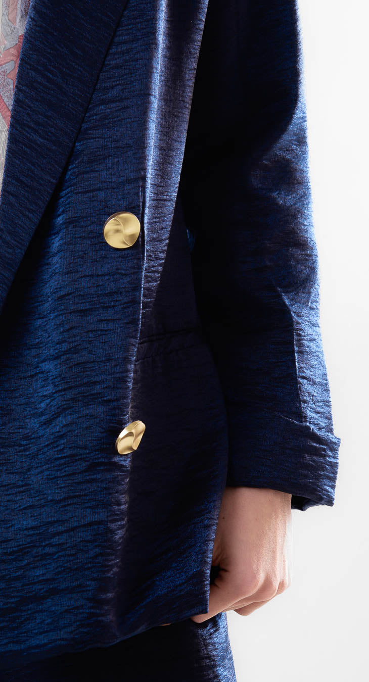 Dobbeltradet satin effekt afslappet blazer engros