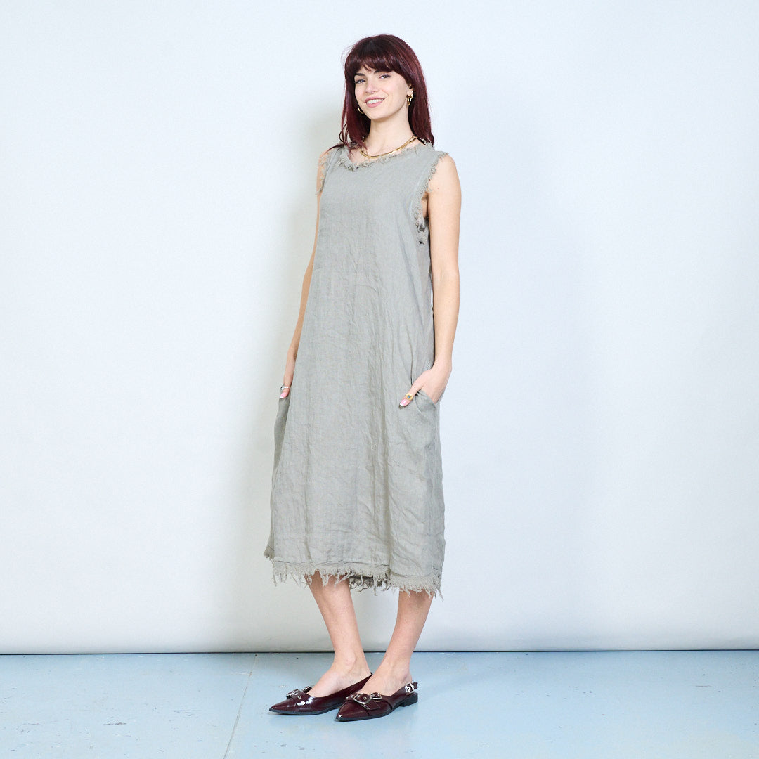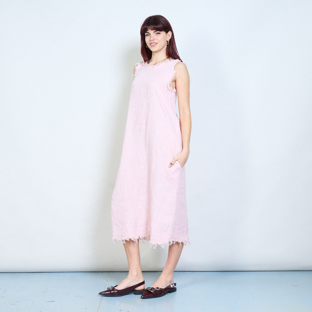 Frynser detaljeret ærmeløs afslappet midikjole engros