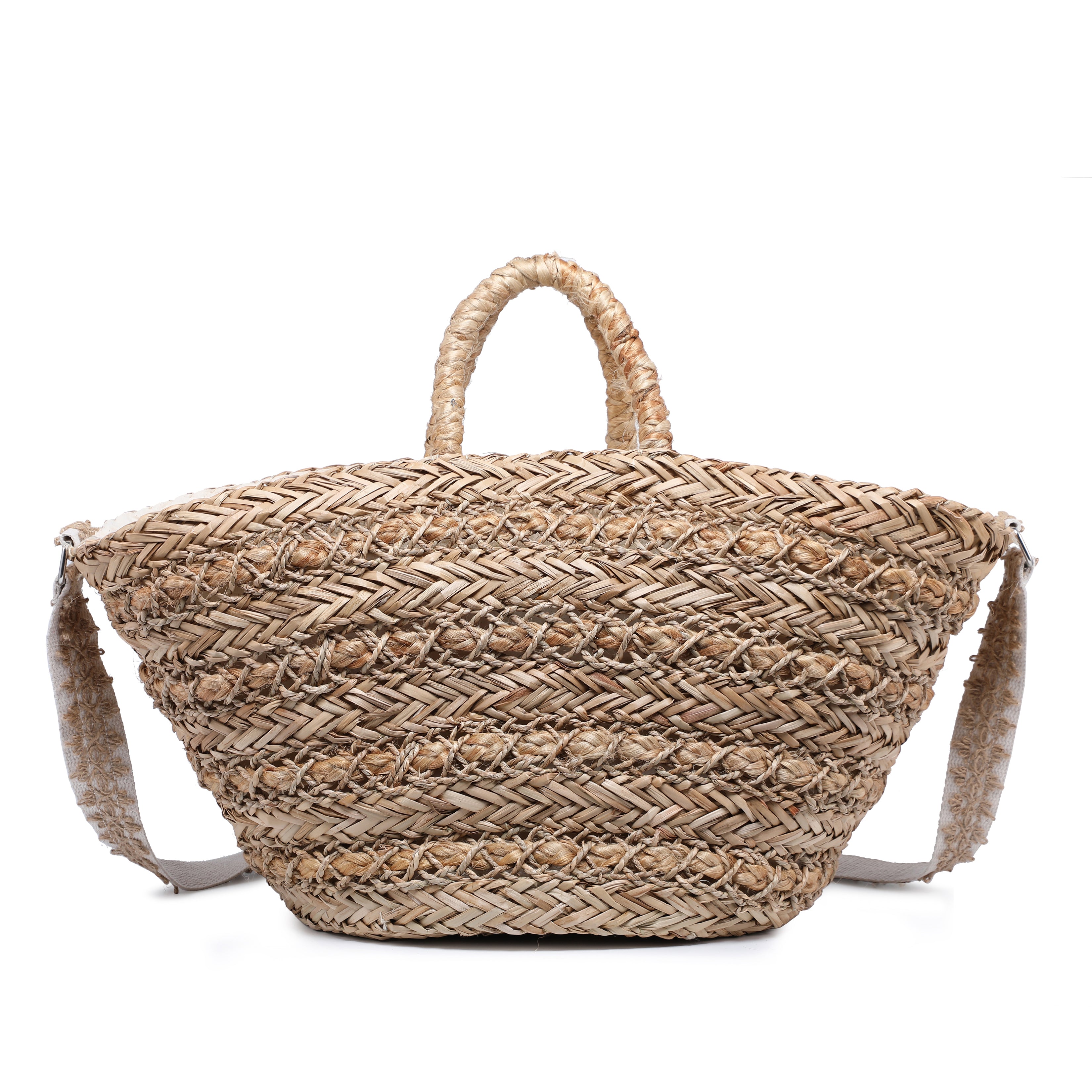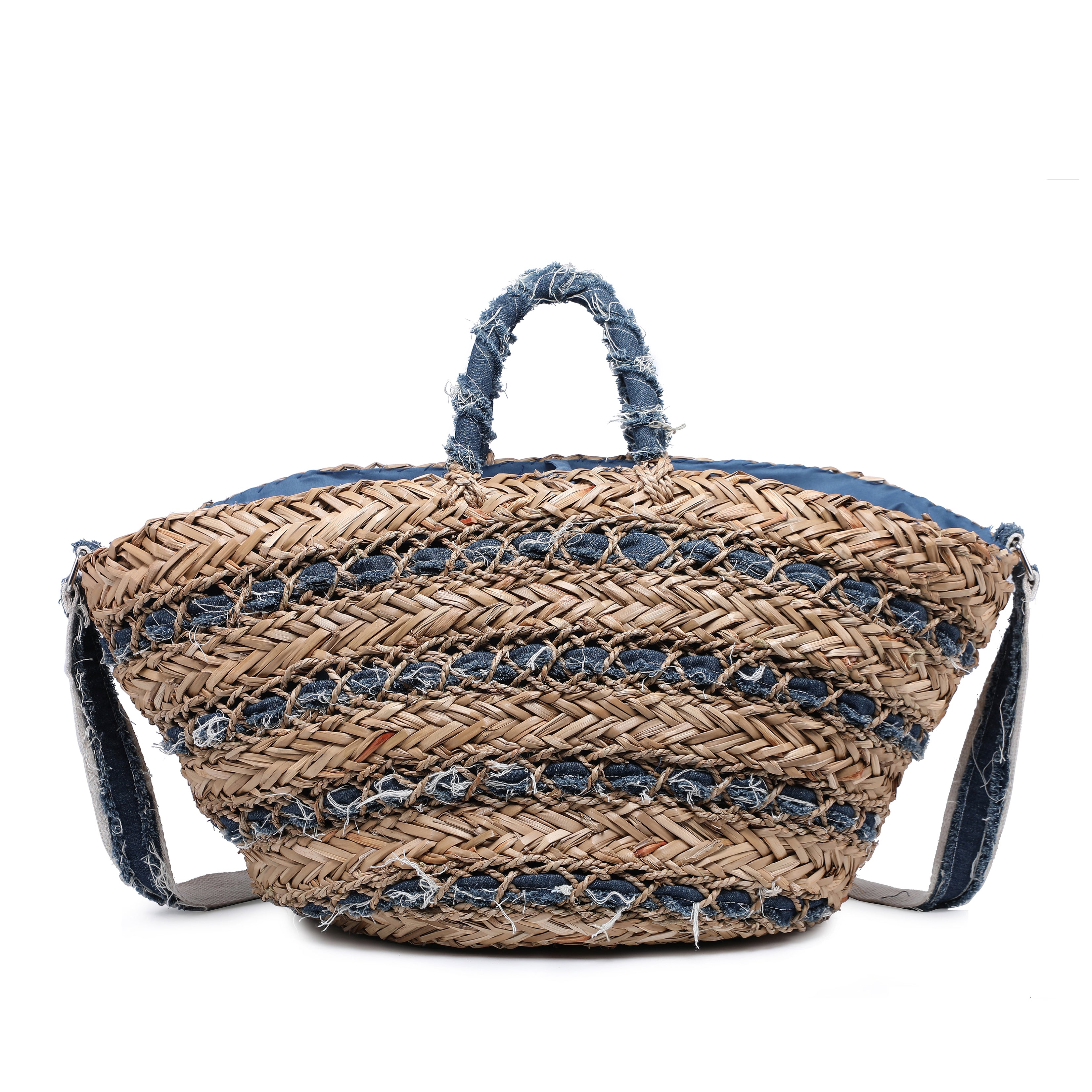 Flettet raffia -taske med nødlidende stofvæv og stropp engros