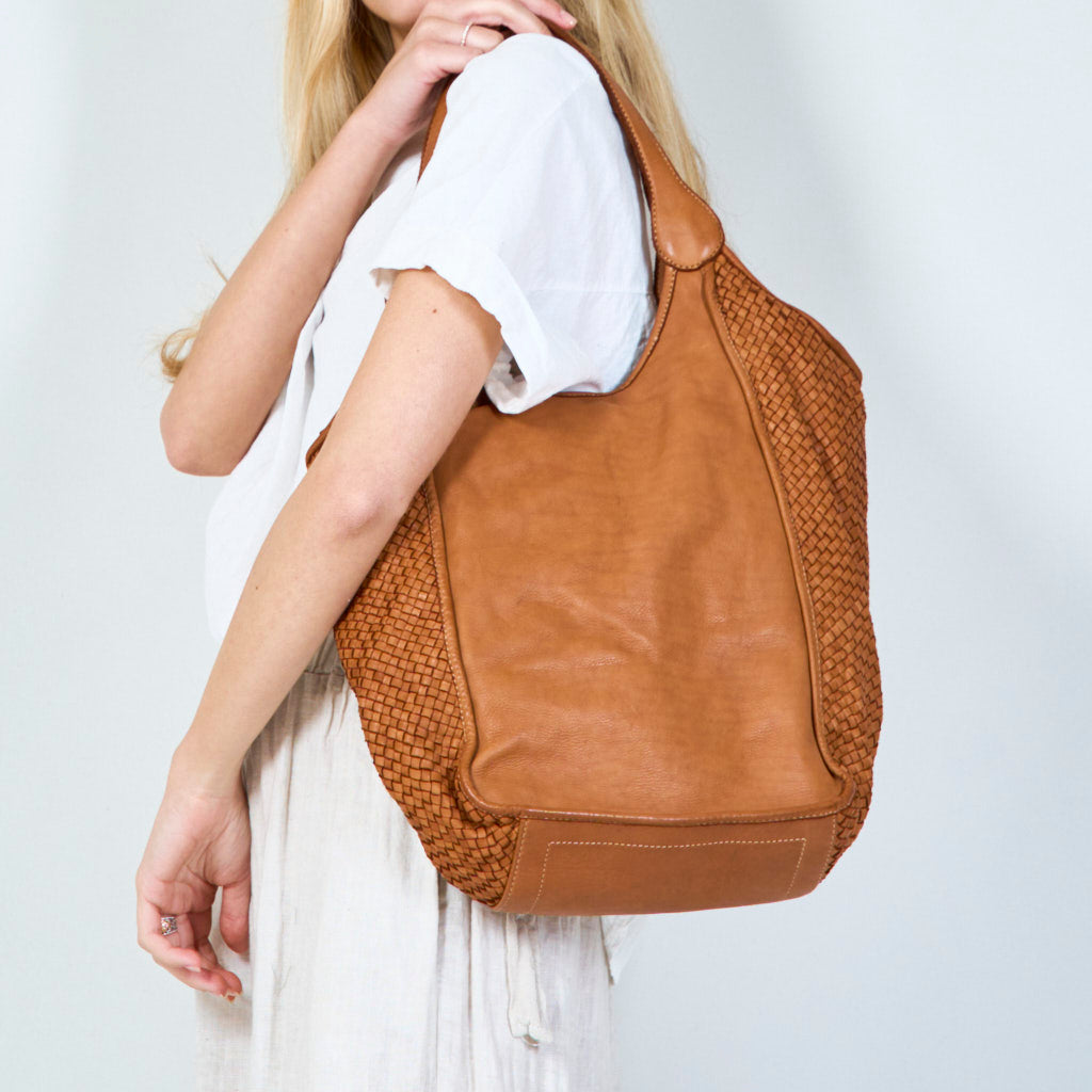 RUCHED HANDLE LÆDER TOTE PAGER Engros