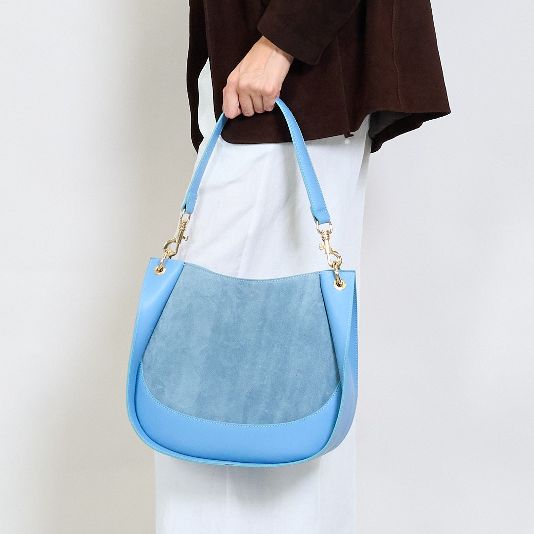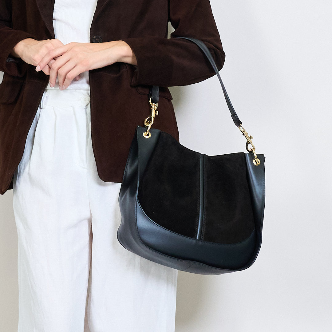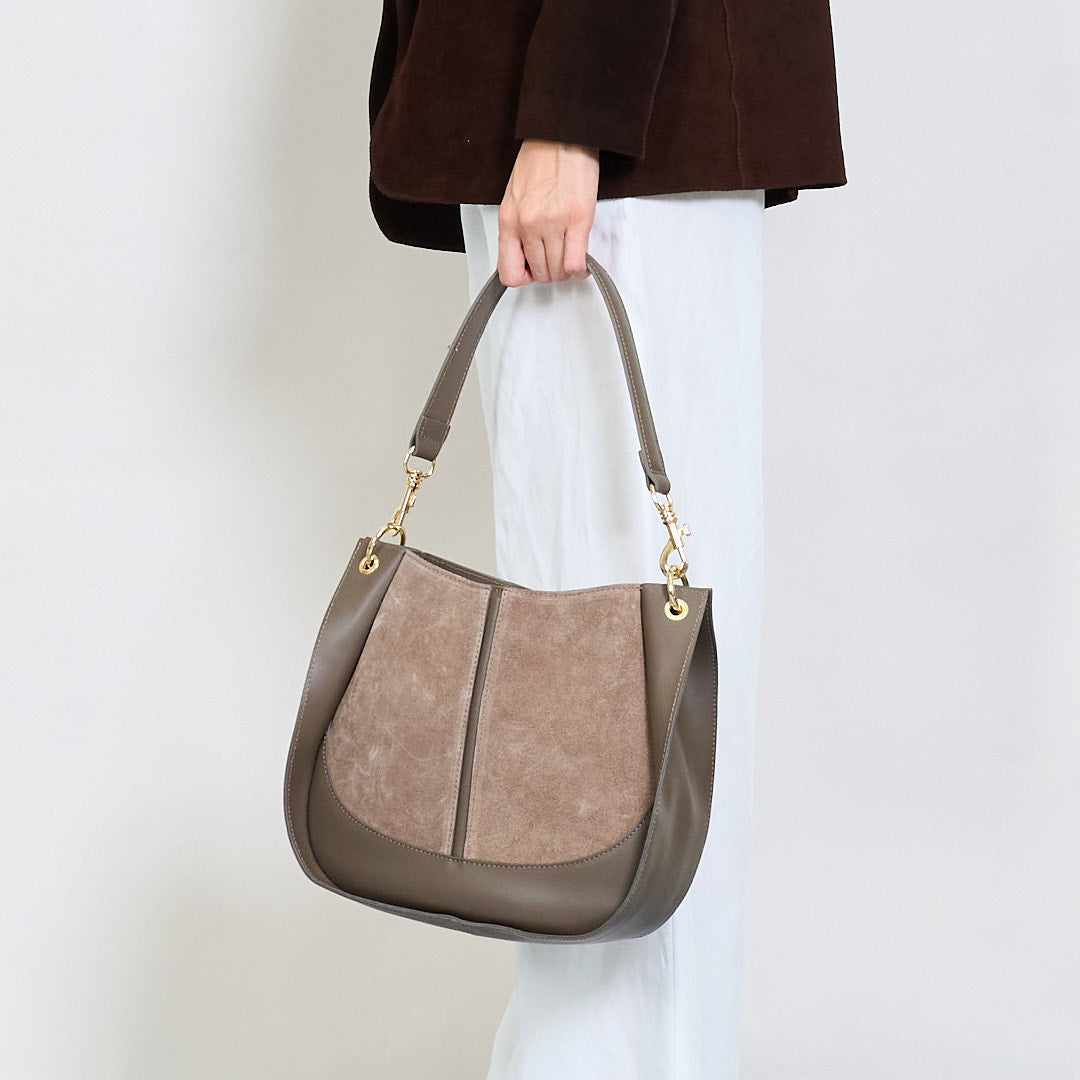 - Elegant blanding af glat læder og bløde ruskindpaneler