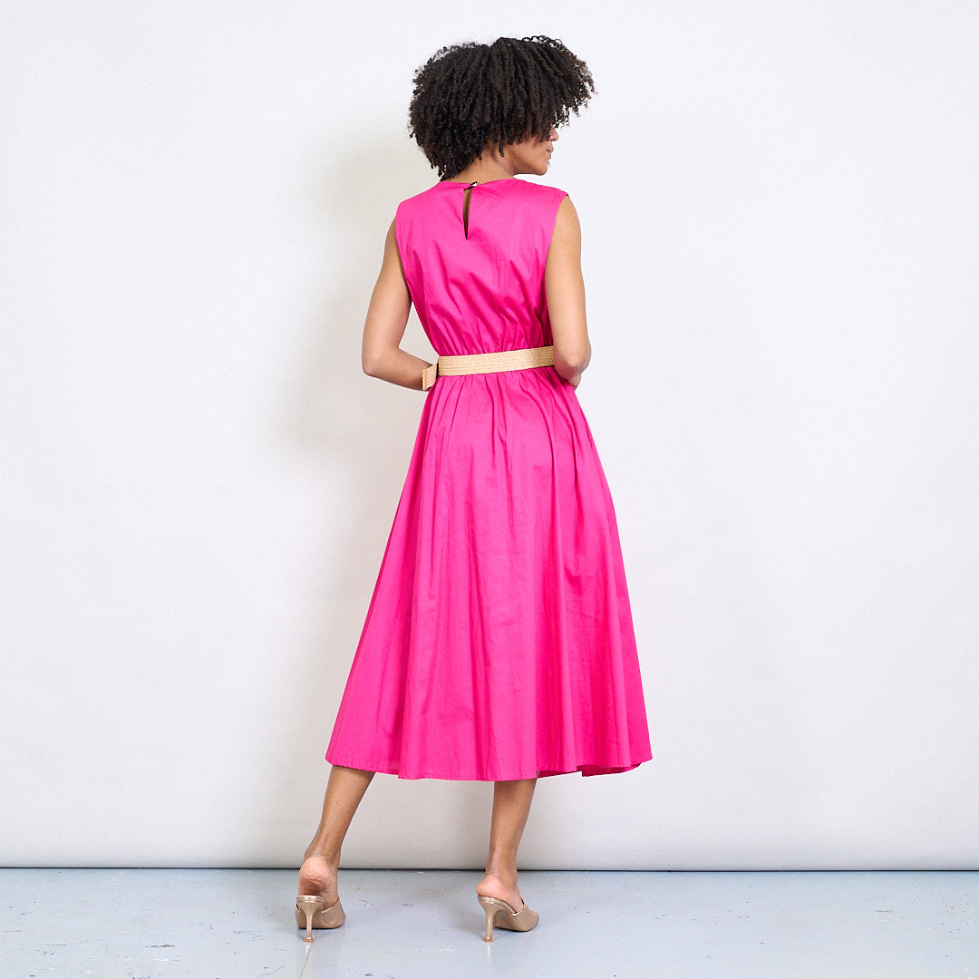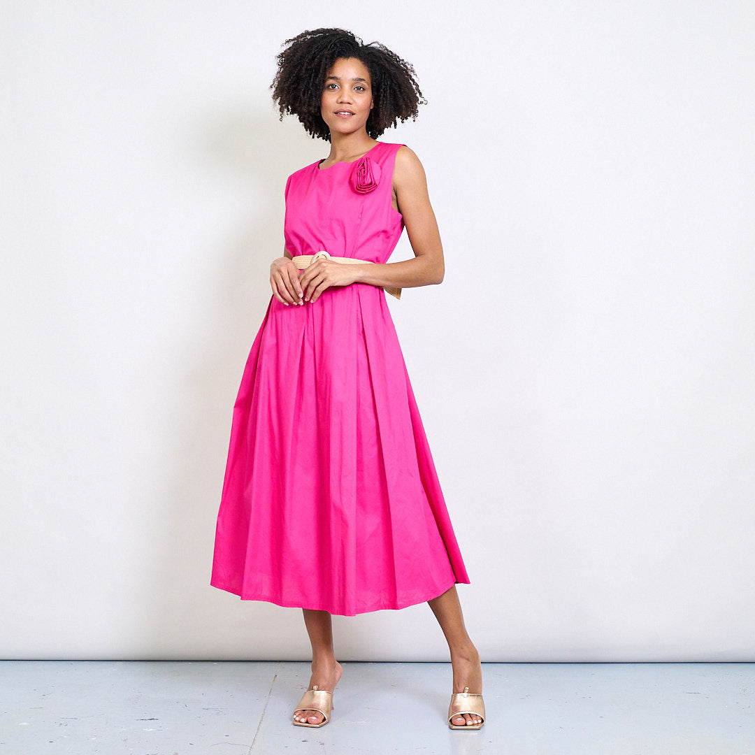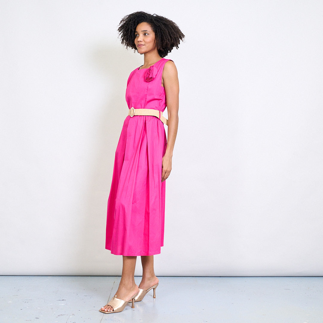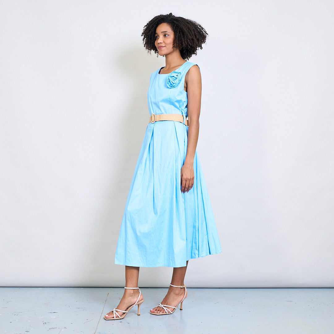 Minimalistisk blomsterapplikationsbæltet ærmeløs Midi -kjole Engros