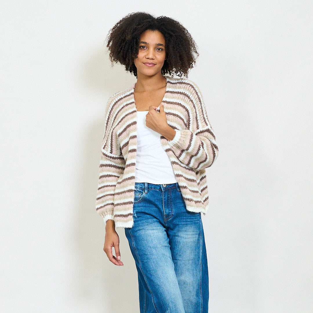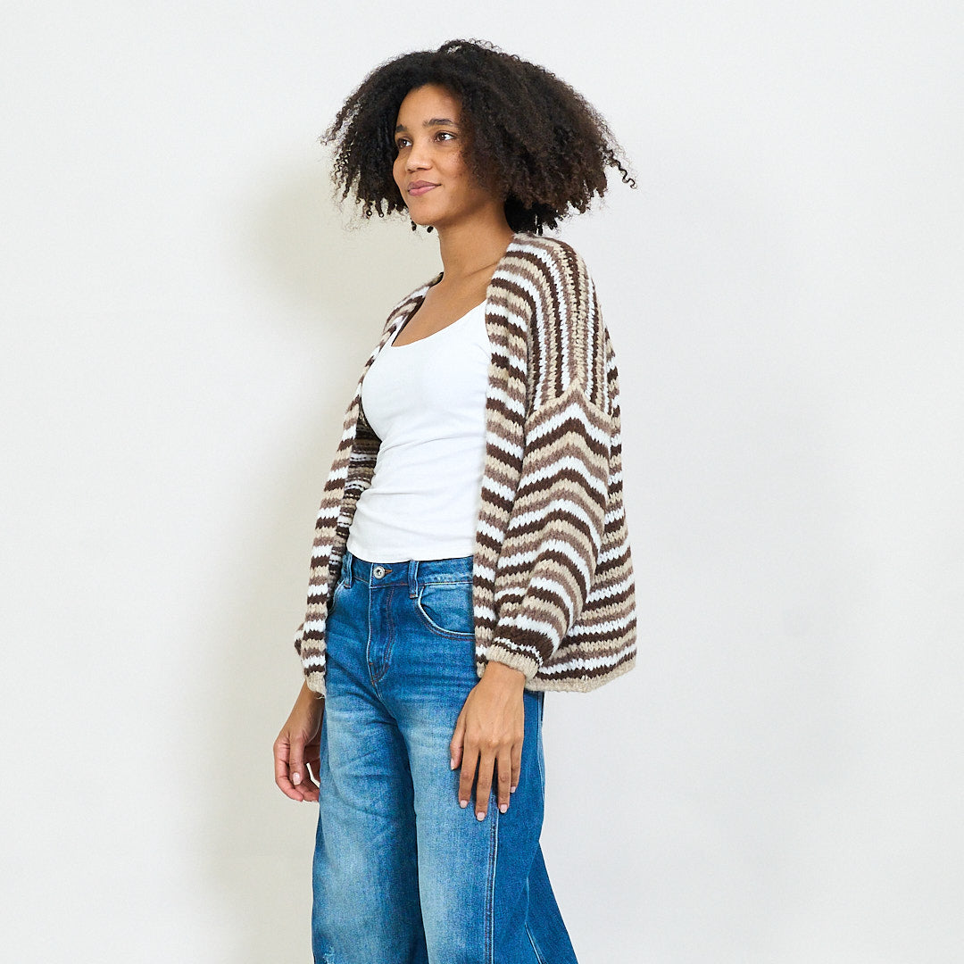 Wavy Stripe Mønster Slouchy Knit Cardigan Wholesale