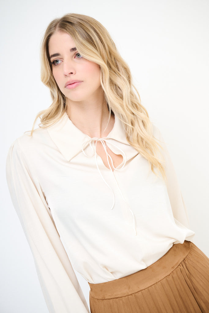 - Lange ærmer med manchetter med knapper tilføjer raffinement og alsidighed
