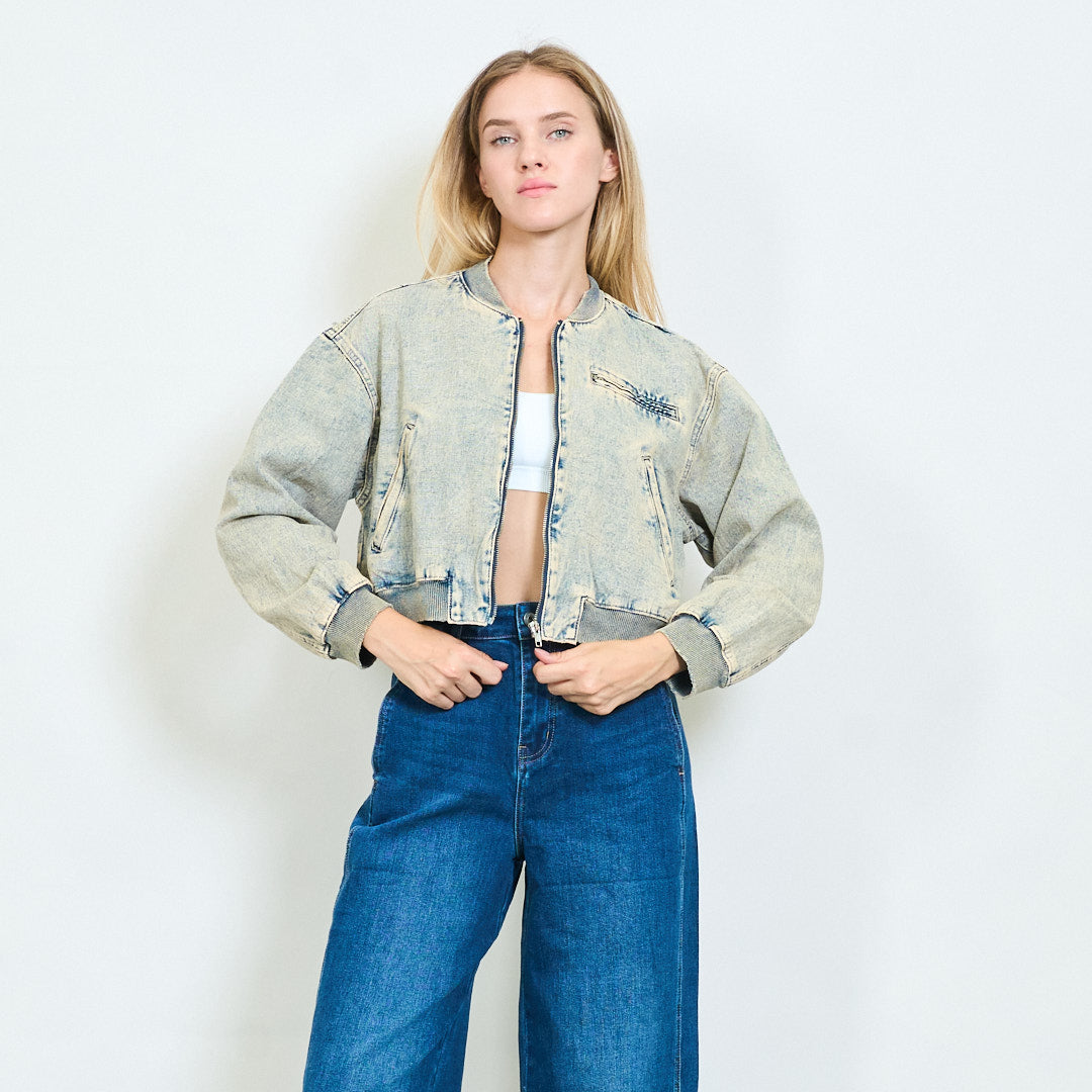 - Casual Bomber Silhouette med ribbet krave, manchetter og hem