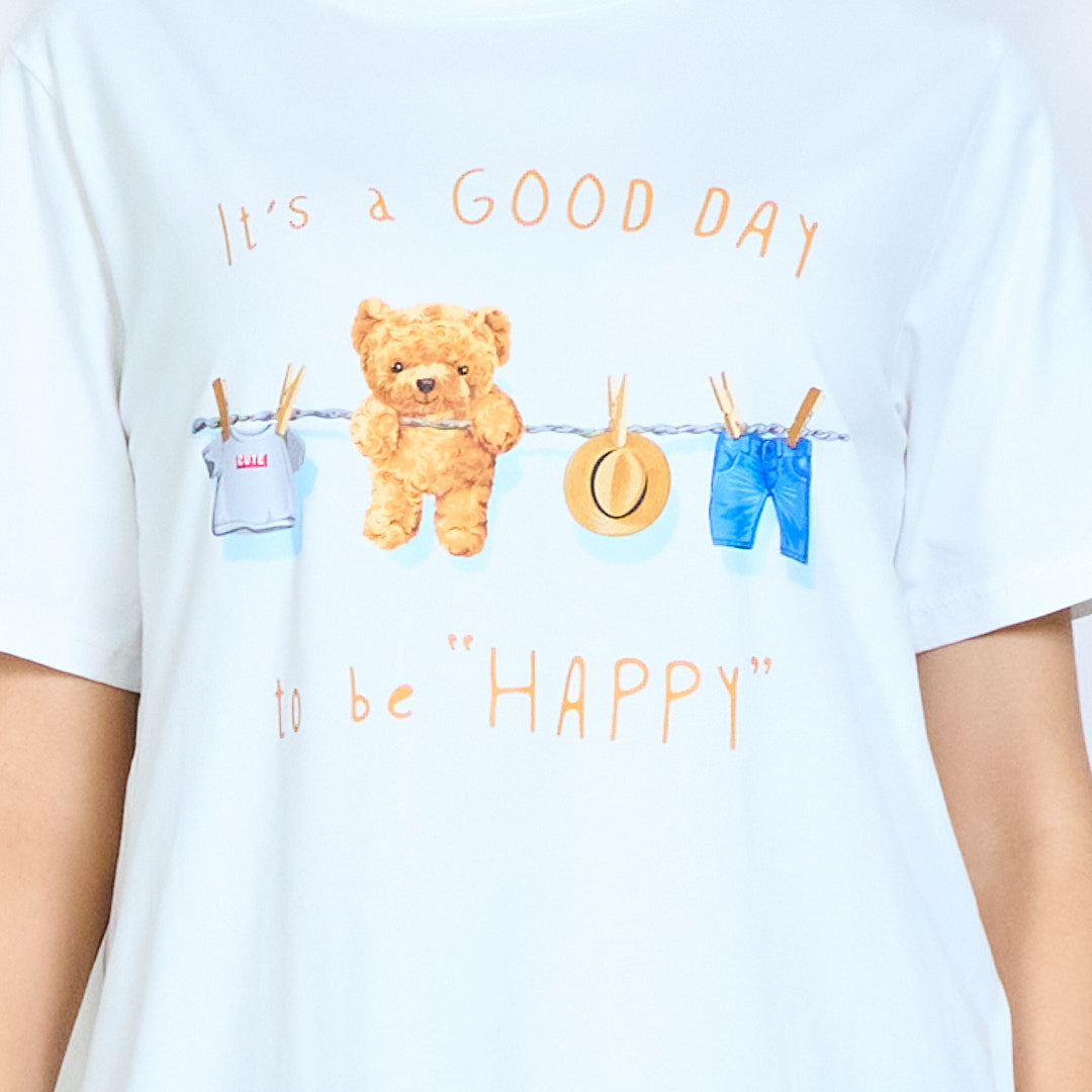 "Det er en god dag at være glad" slogan bamse t-shirt engros