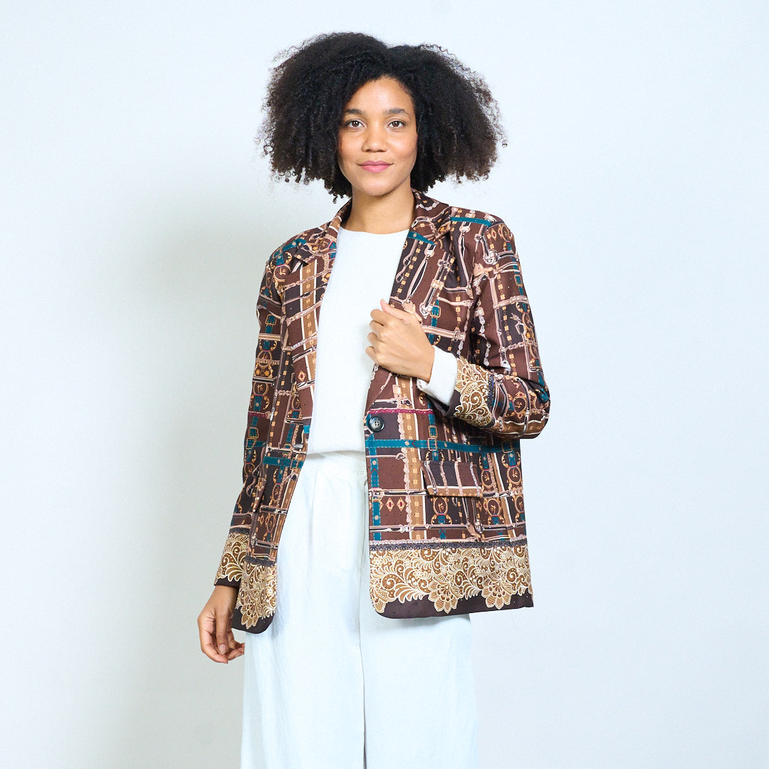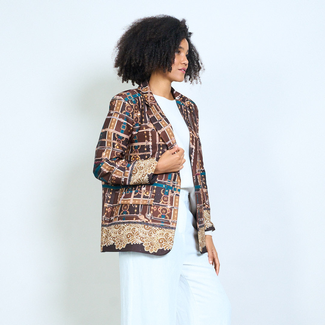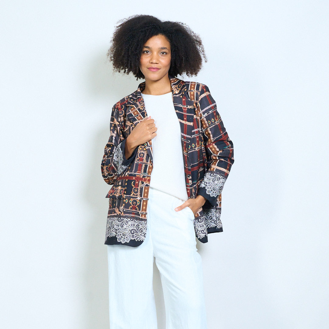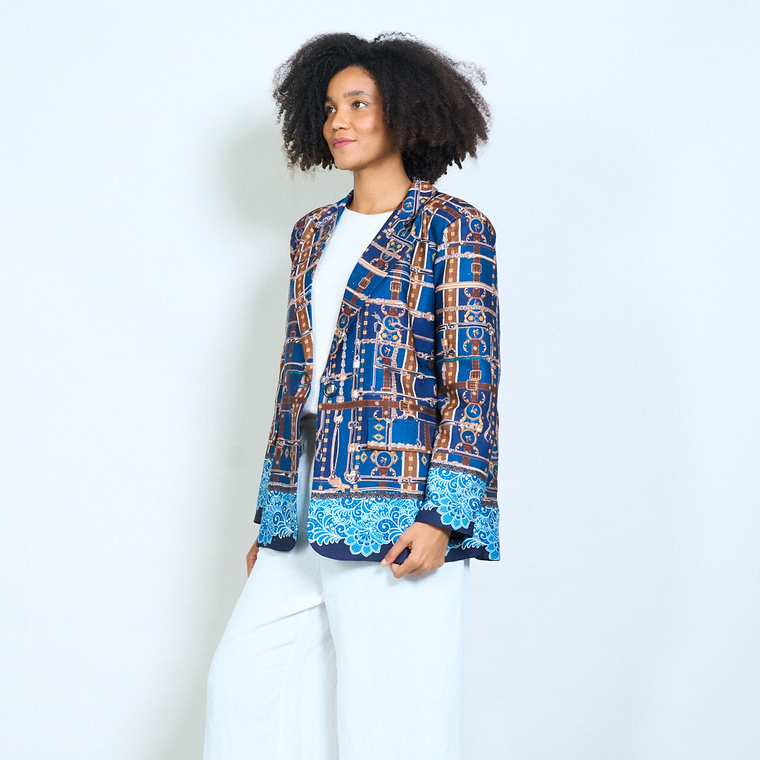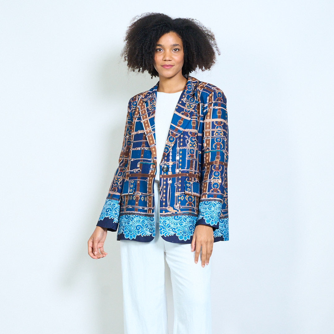 Skræddersyet blazer med kæde- og bæltetryk med enkelt knap og trykt blondekant engros