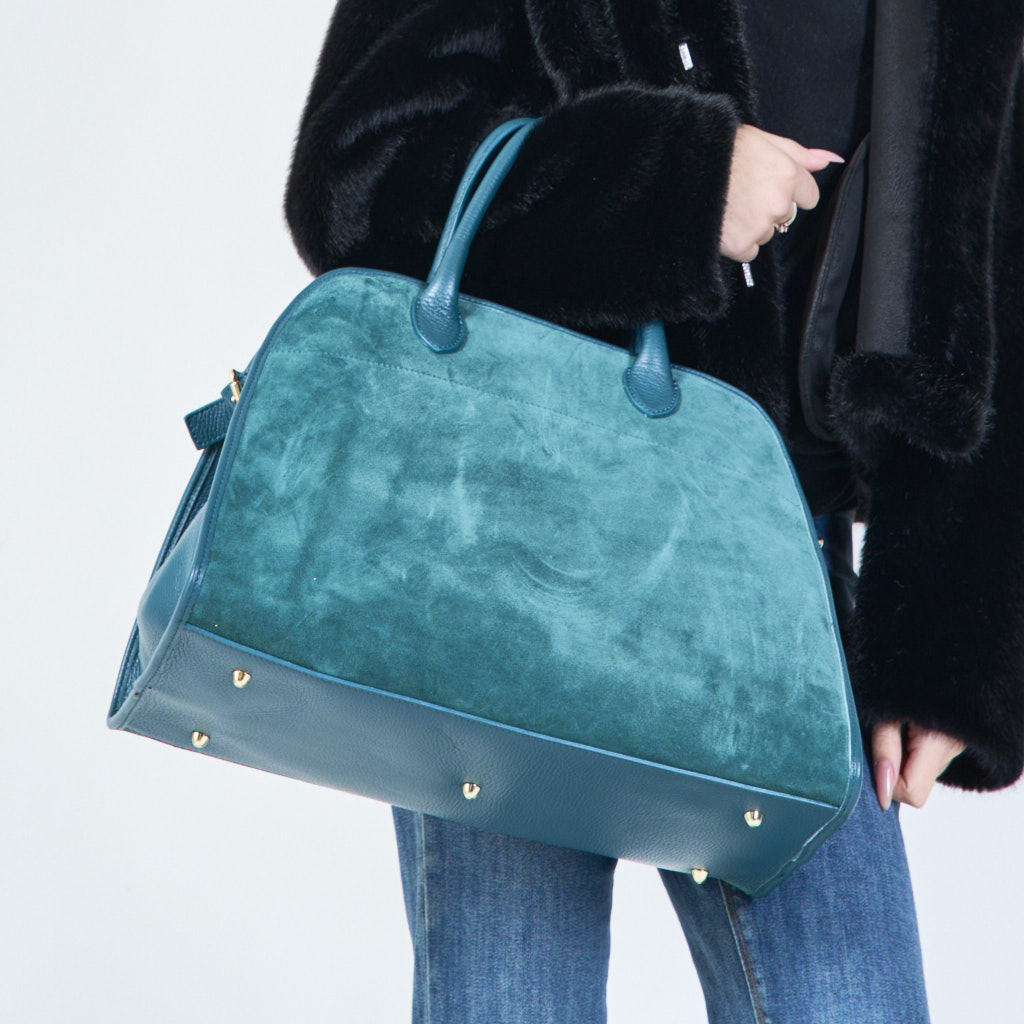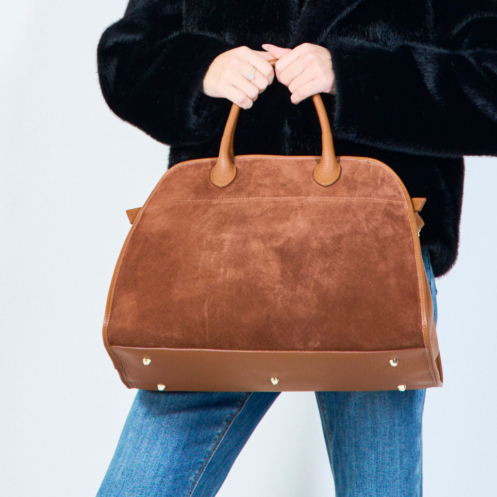 Großer strukturierter Wildleder und Lederhandtasche Großhandel
