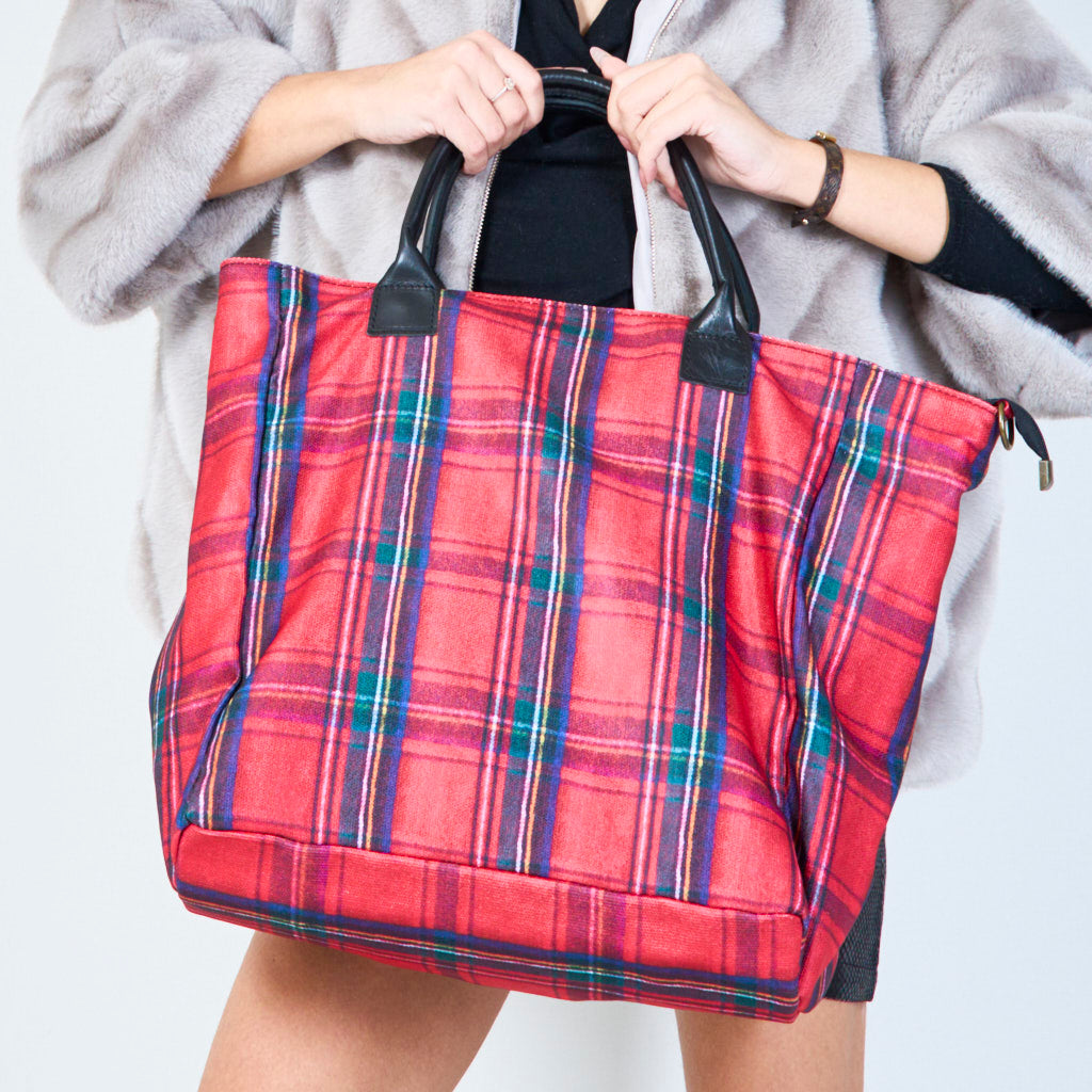 Plaid -Tasche mit strukturierten Griffen im Großhandel