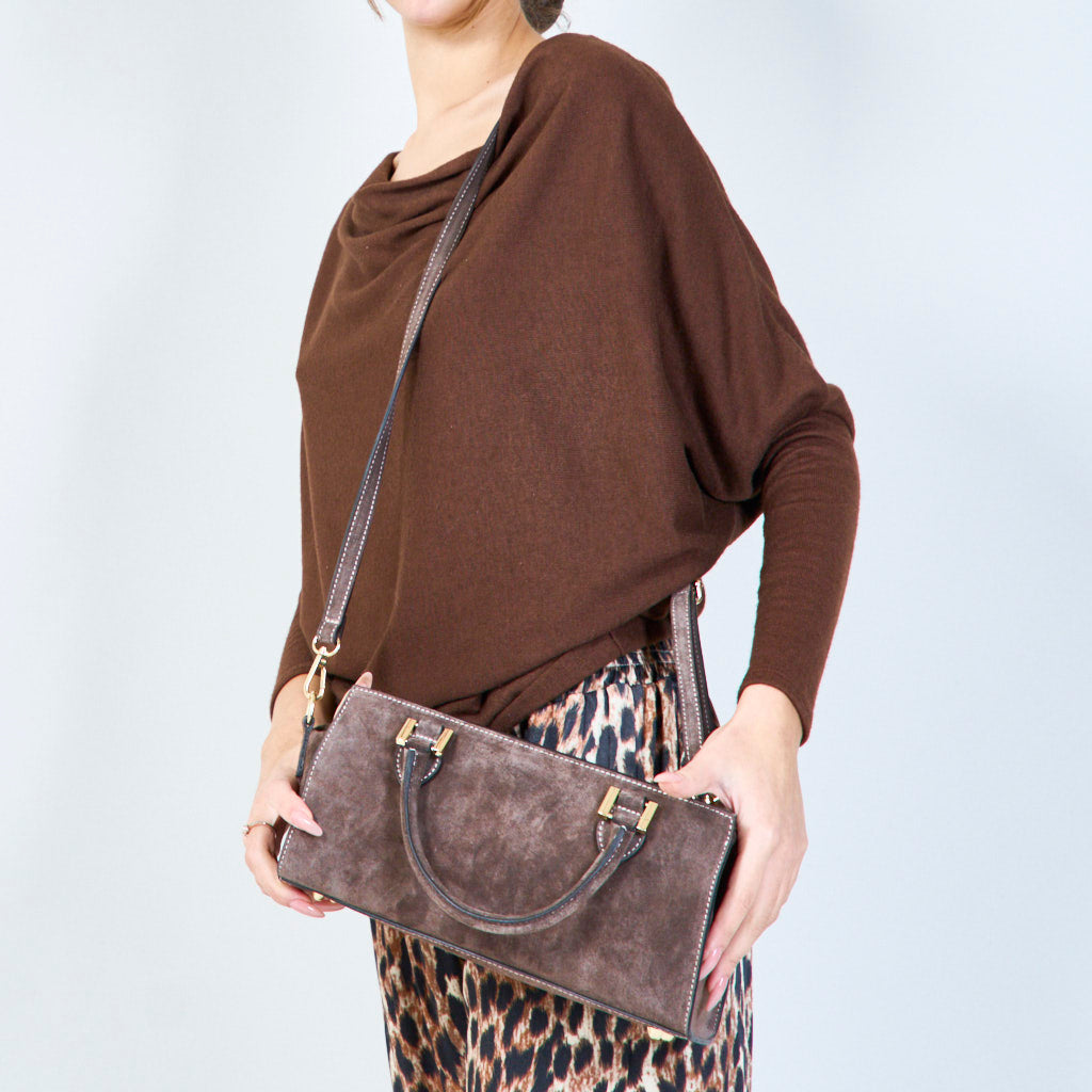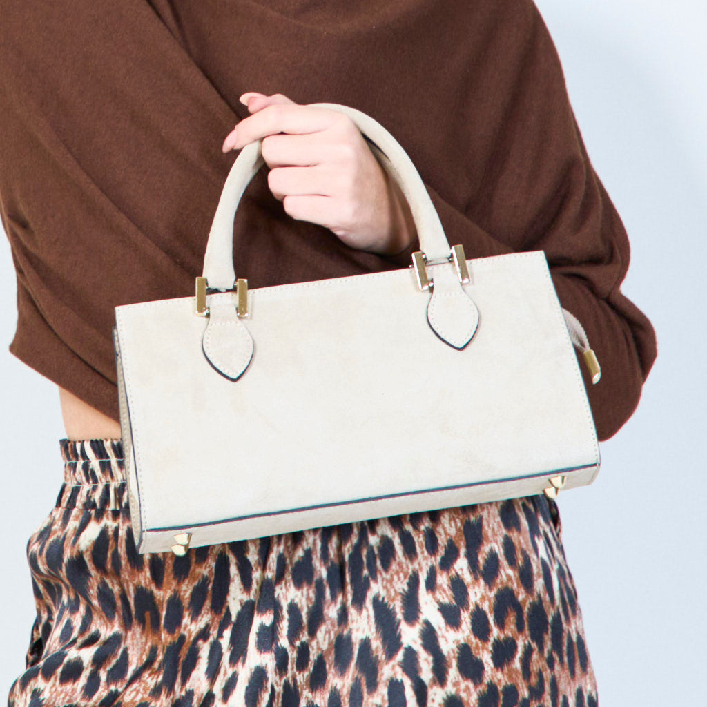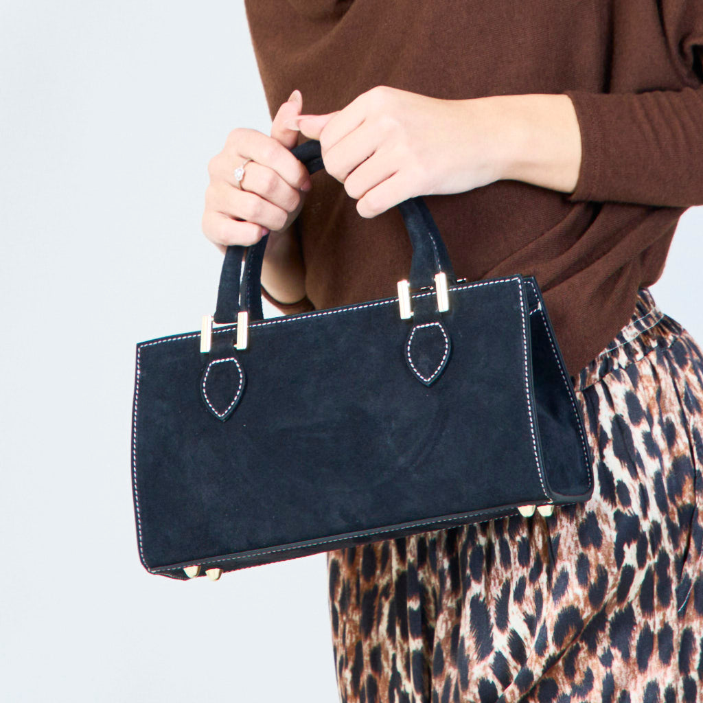 Wildleder -strukturierte Handtaschen mit Metallakzenten Großhandel