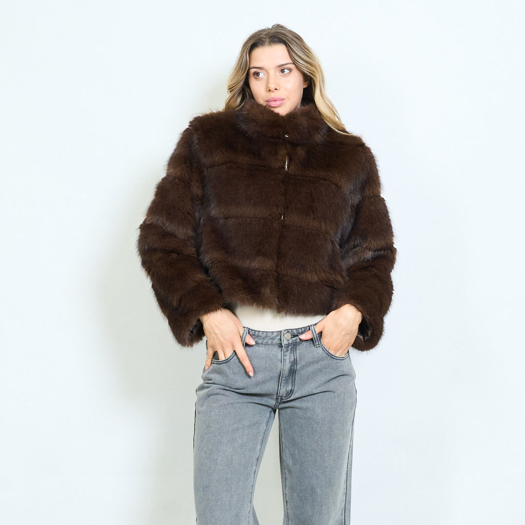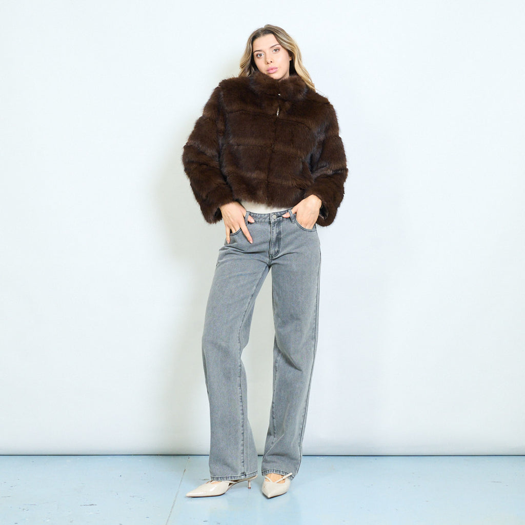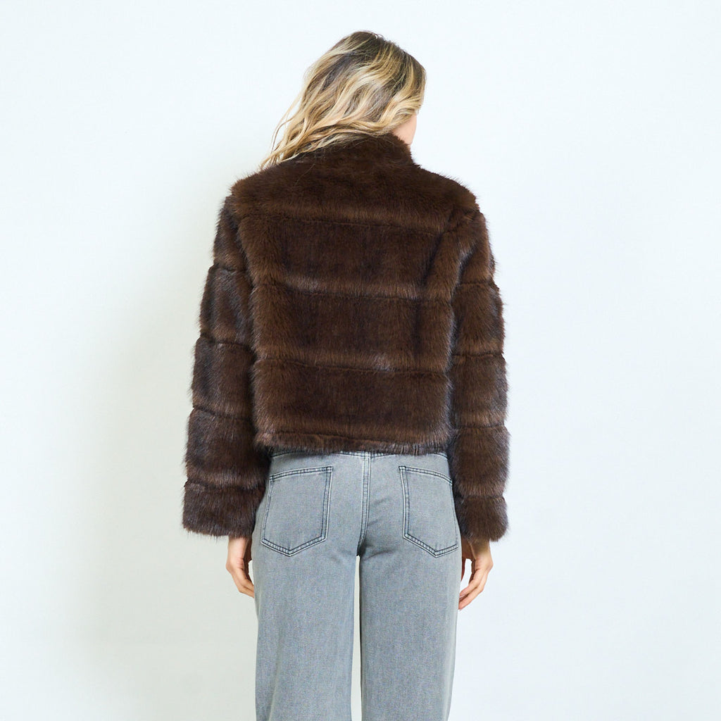 Plüsch-Kurzjacke aus Kunstpelz mit verstecktem Verschluss im Großhandel