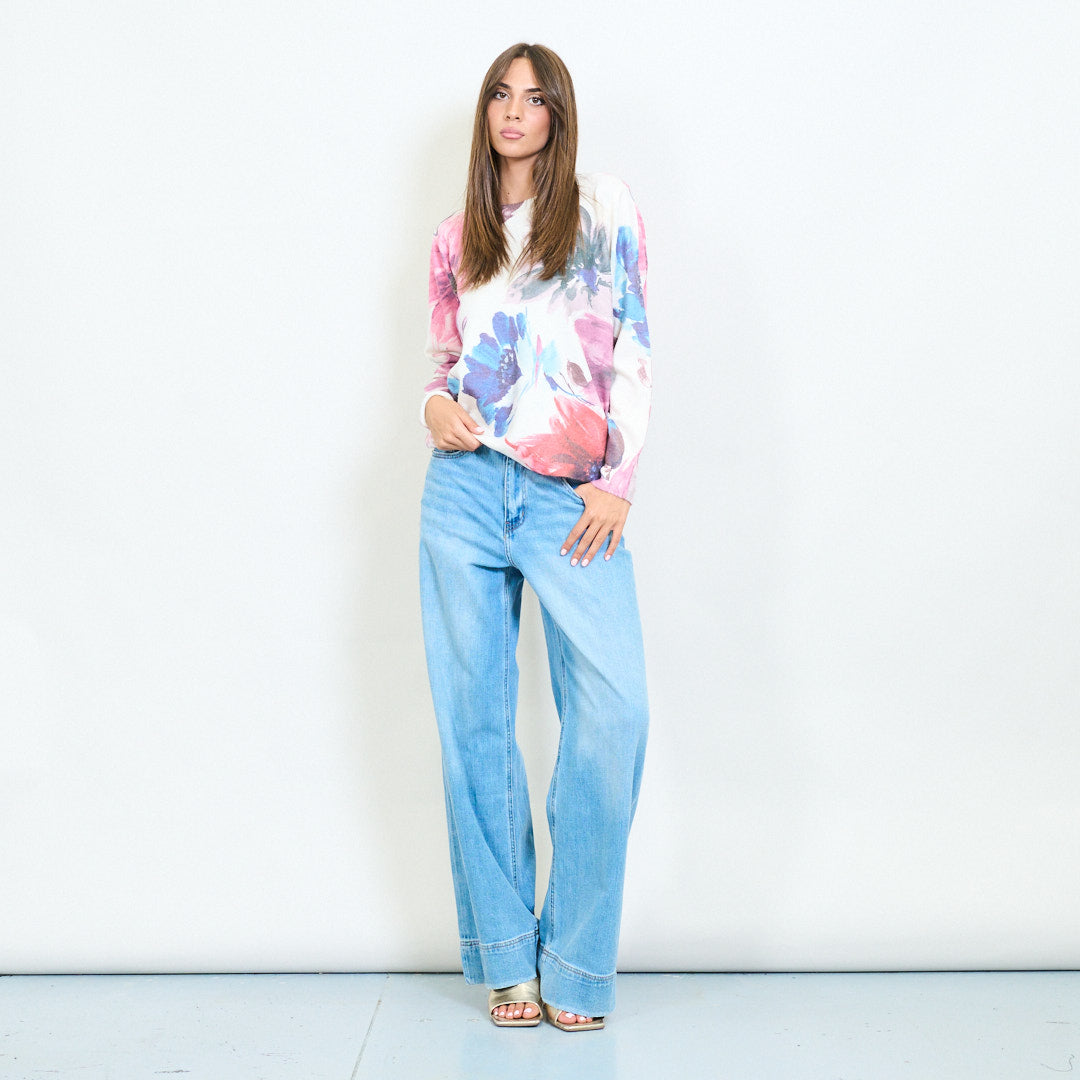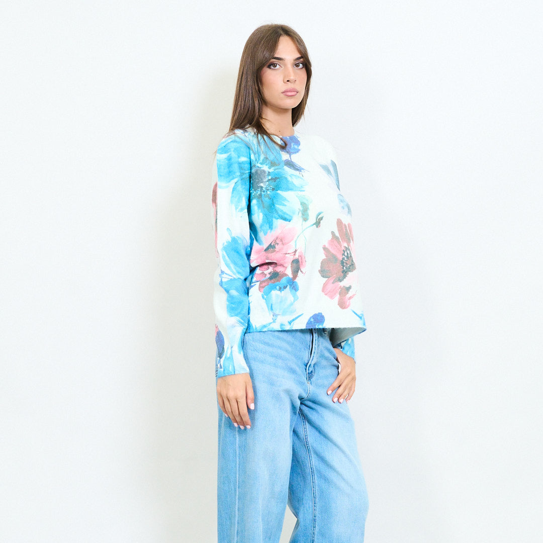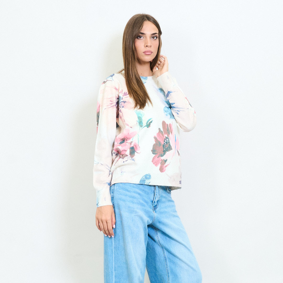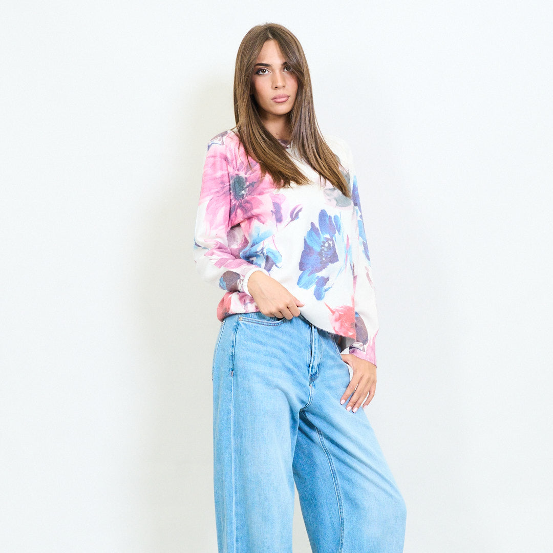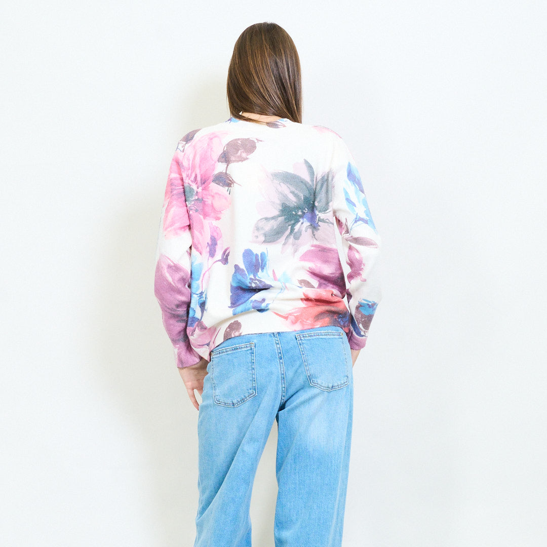 - Weiche Strickpullover mit fettem Blumendruck im Aquarellstil