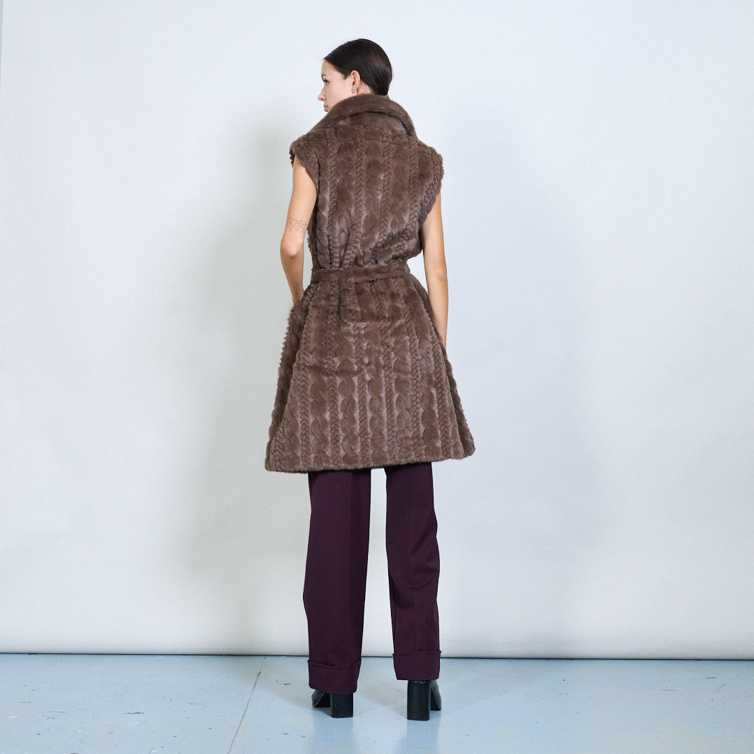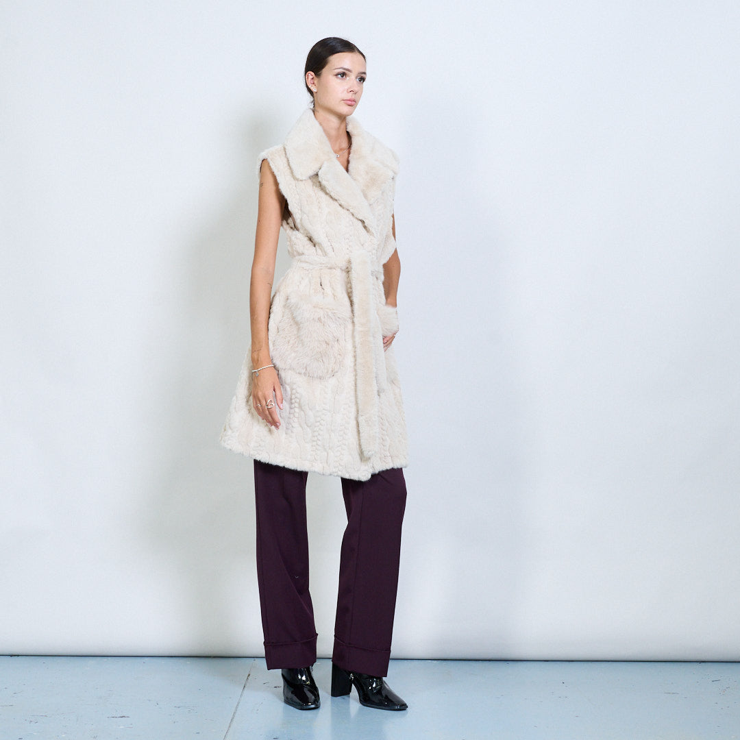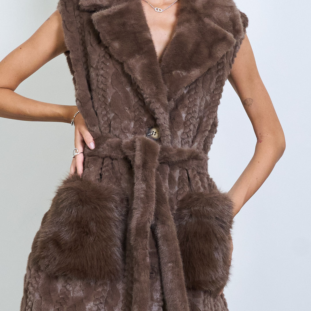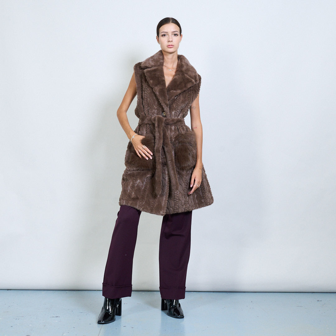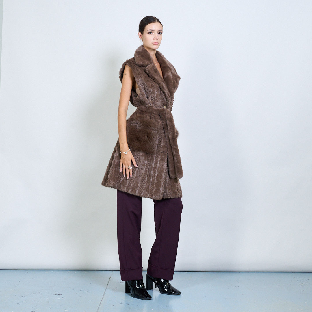 - Luxuriöser Kunstfell langer Mantel mit ärmelloses Design