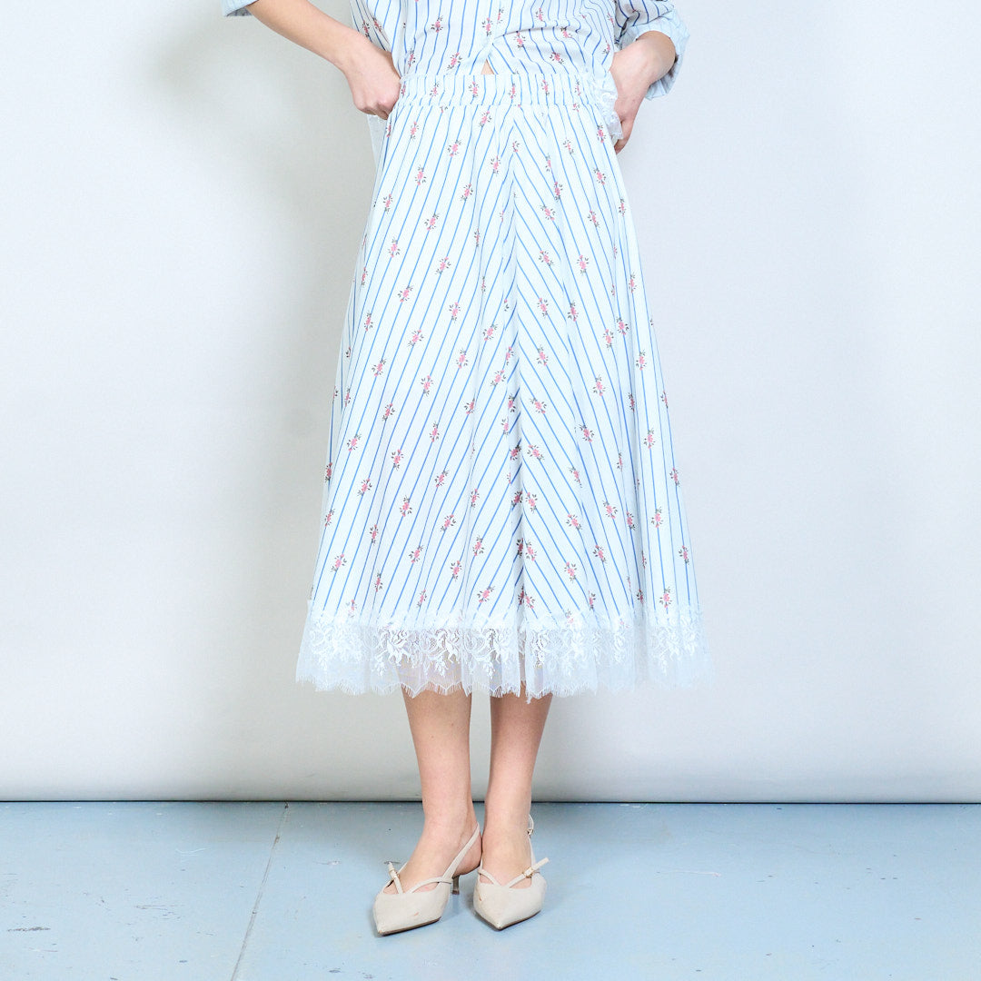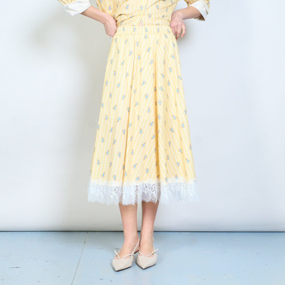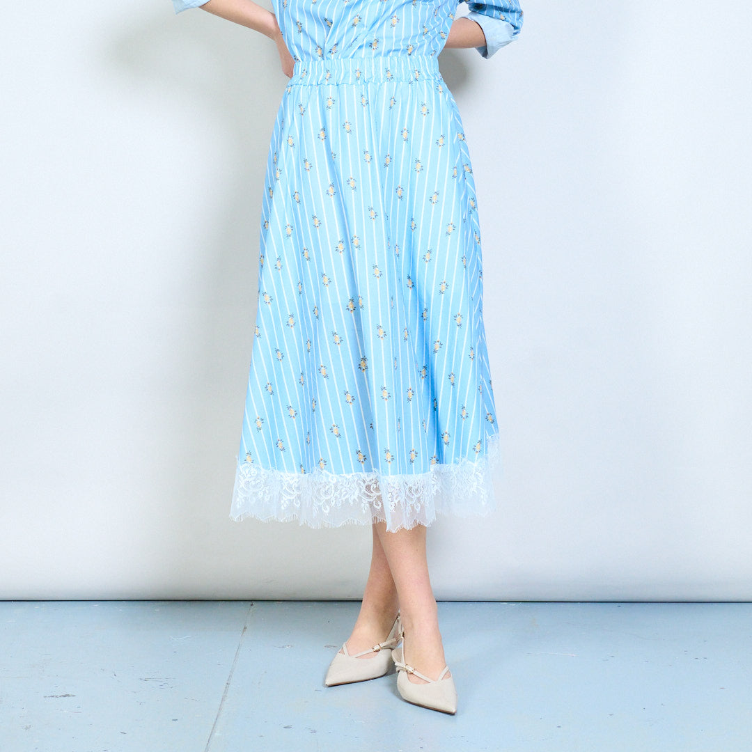 Gestreifter Midirock mit Blumendruck, Spitzensaum und elastischer Taille im Großhandel