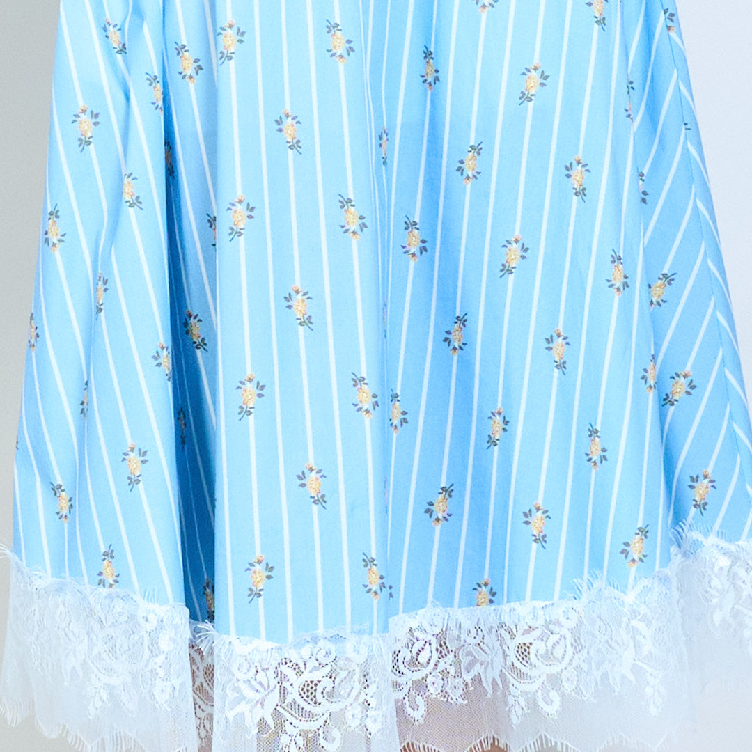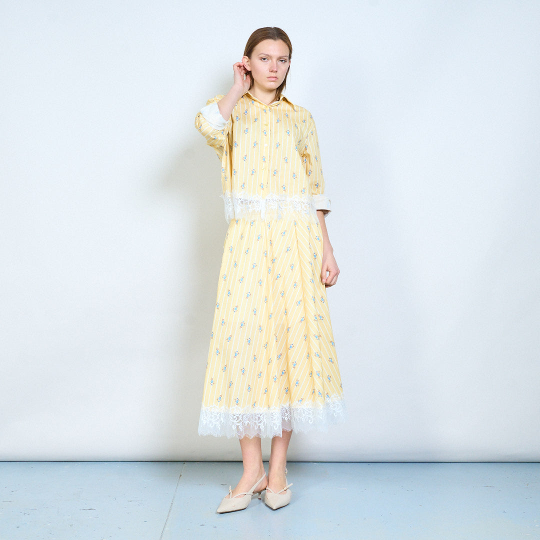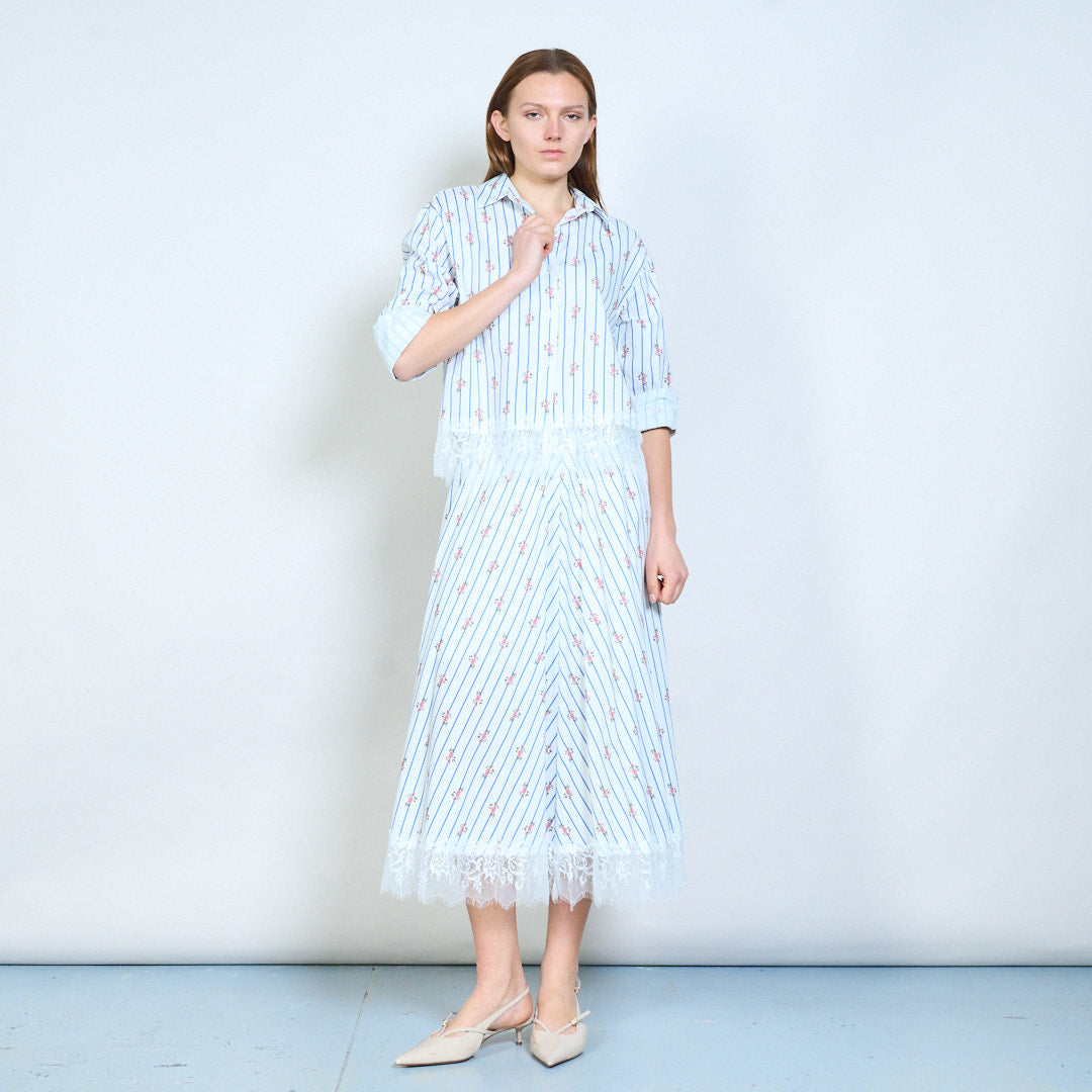 Gestreifter Midirock mit Blumendruck, Spitzensaum und elastischer Taille im Großhandel