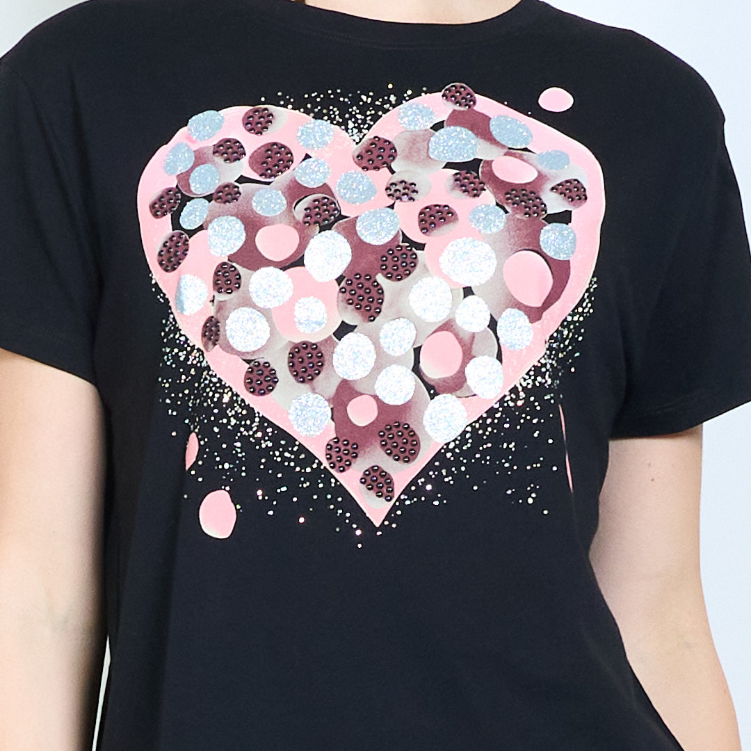 Herz-Grafik-Tupfen-verziertes Kurzarm-T-Shirt im Großhandel