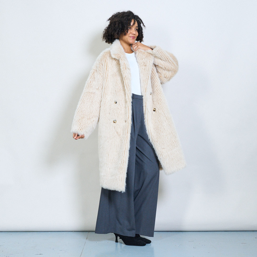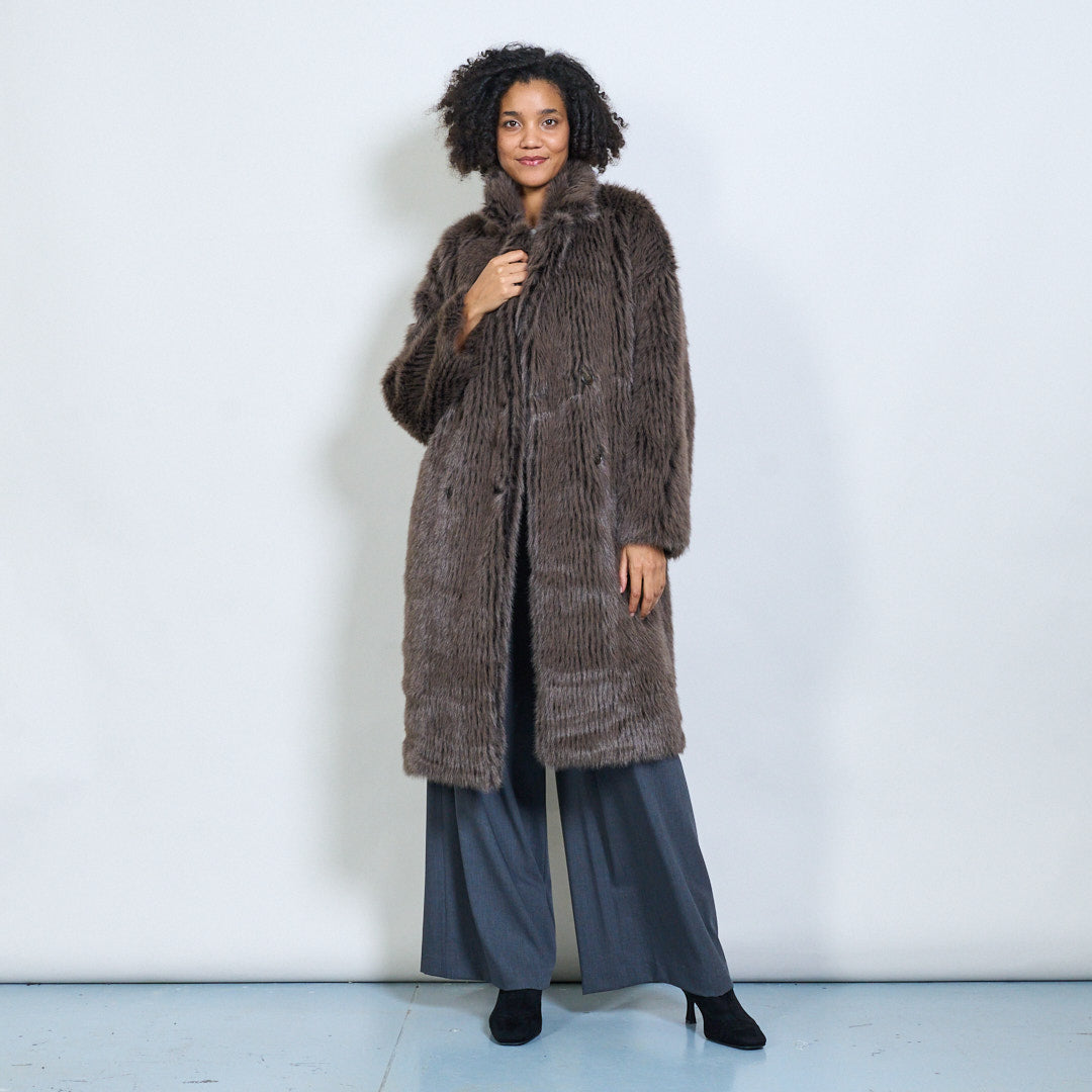 - Eleganter langer Mantel mit weichem Kunstpelz für ein luxuriöses Gefühl
