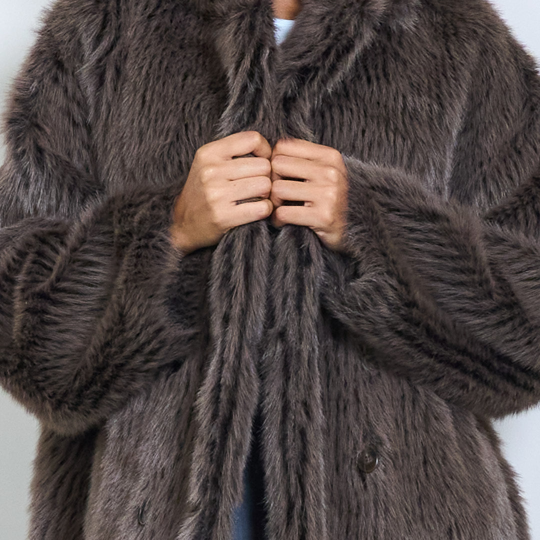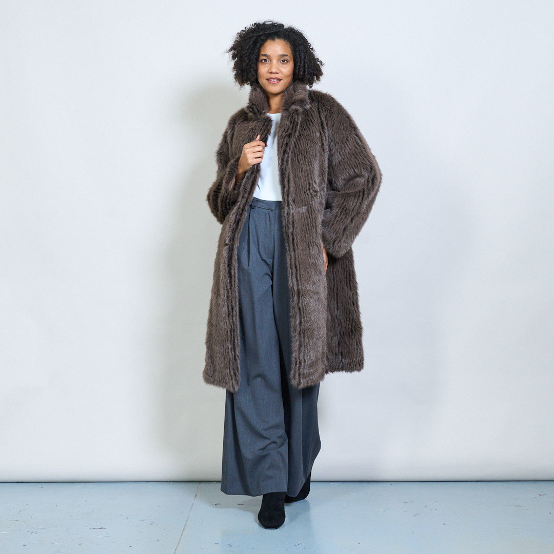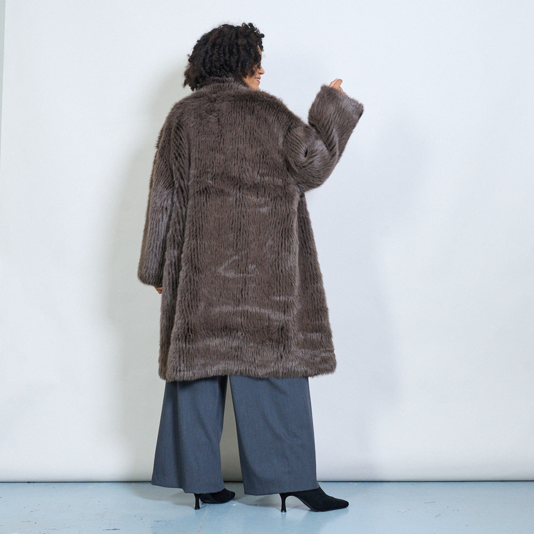 Langer Kunstpelzmantel mit Reverskragen Großhandel