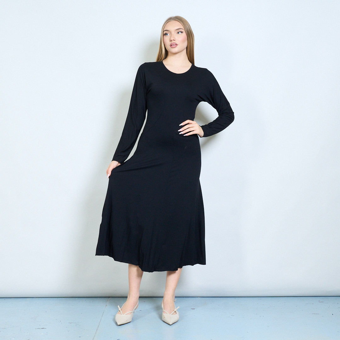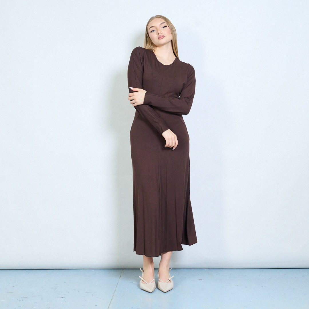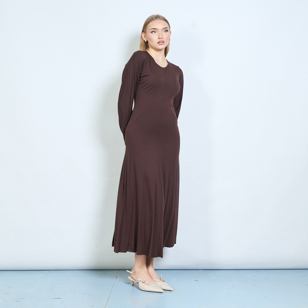 Langes Kleid mit plissierter Konturnaht im Großhandel