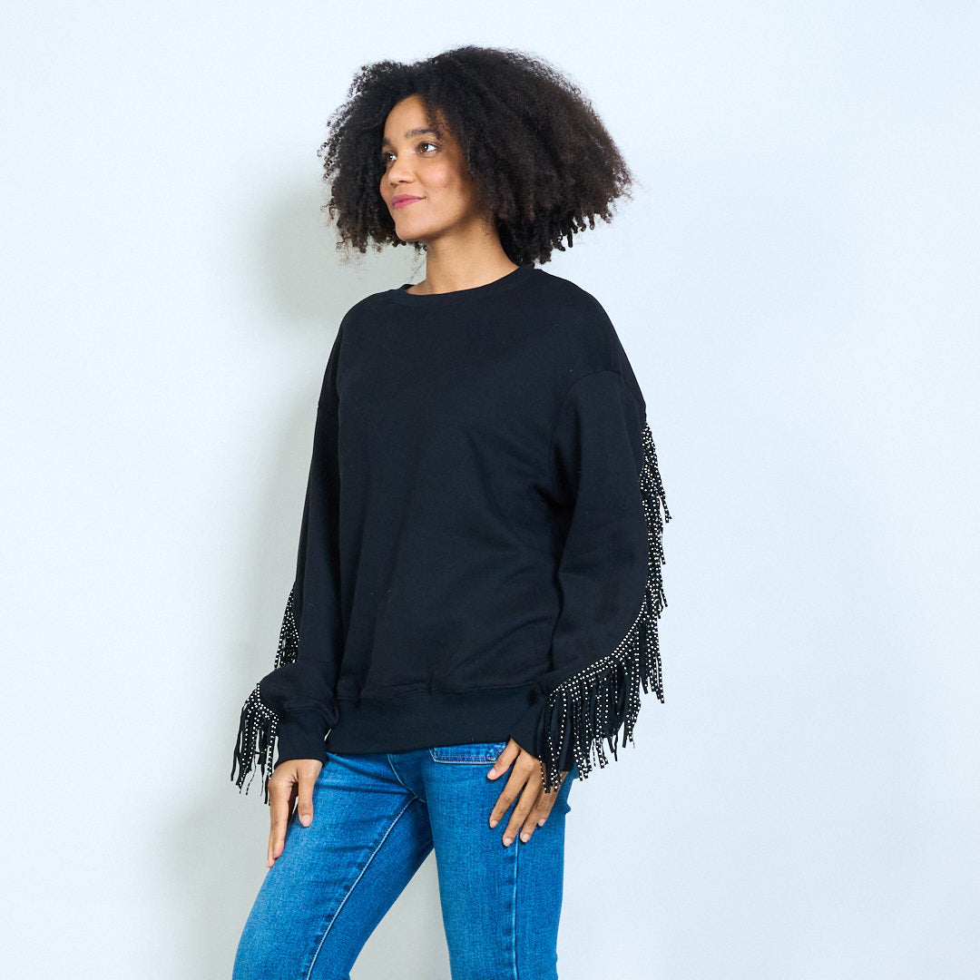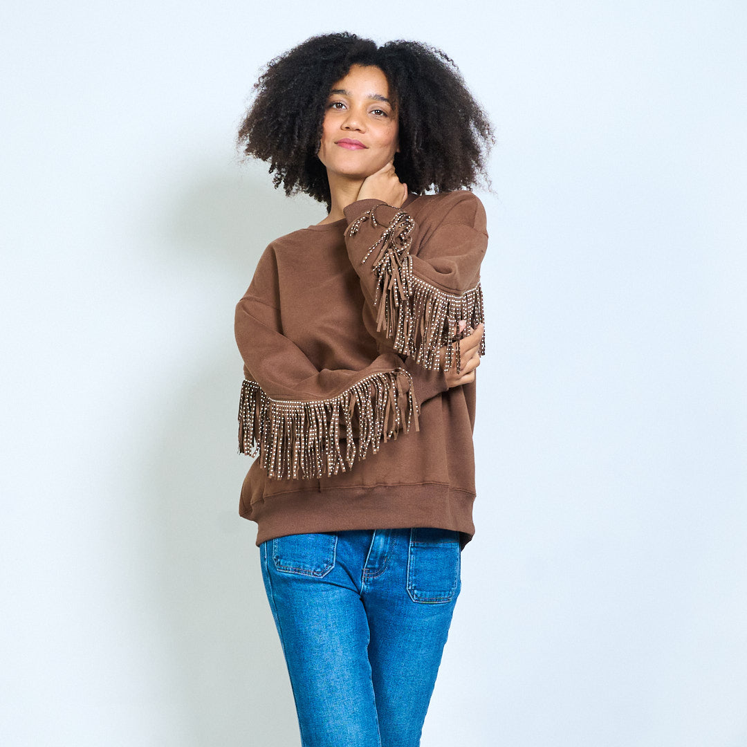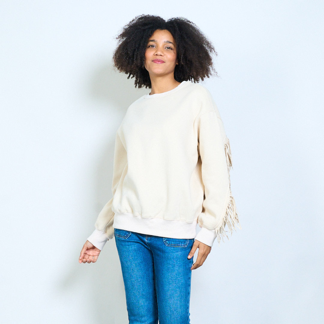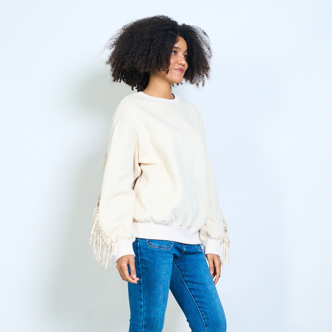 Lässiges Sweatshirt mit Rundhalsausschnitt und Fransenverzierung im Großhandel