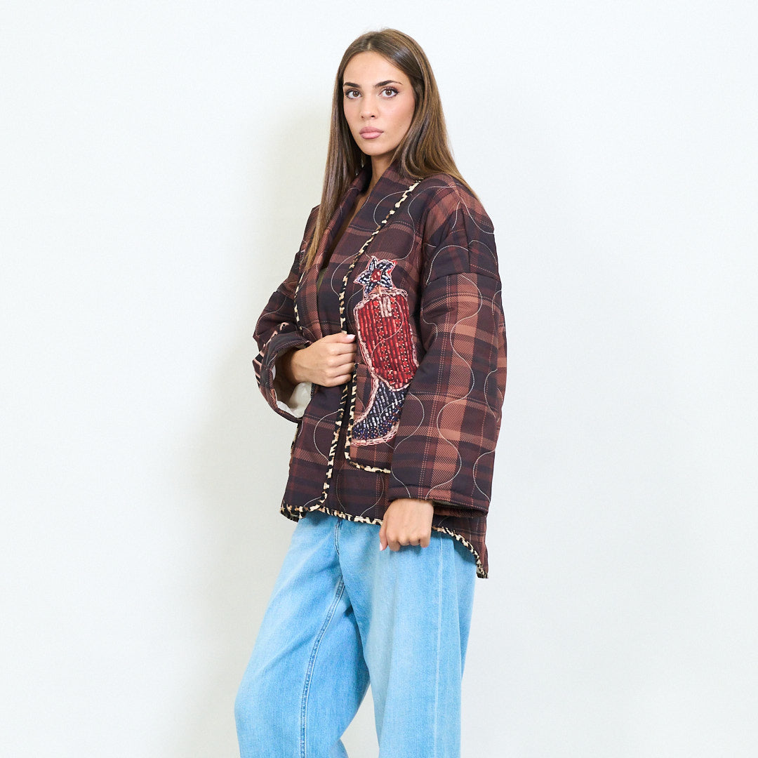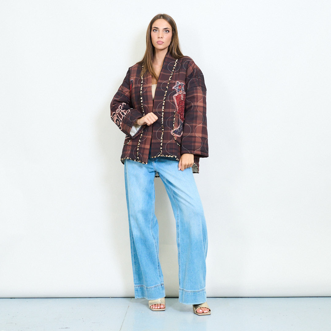- Gesteppte Jacke in kräftigem Plaid mit Anweisung Patchwork