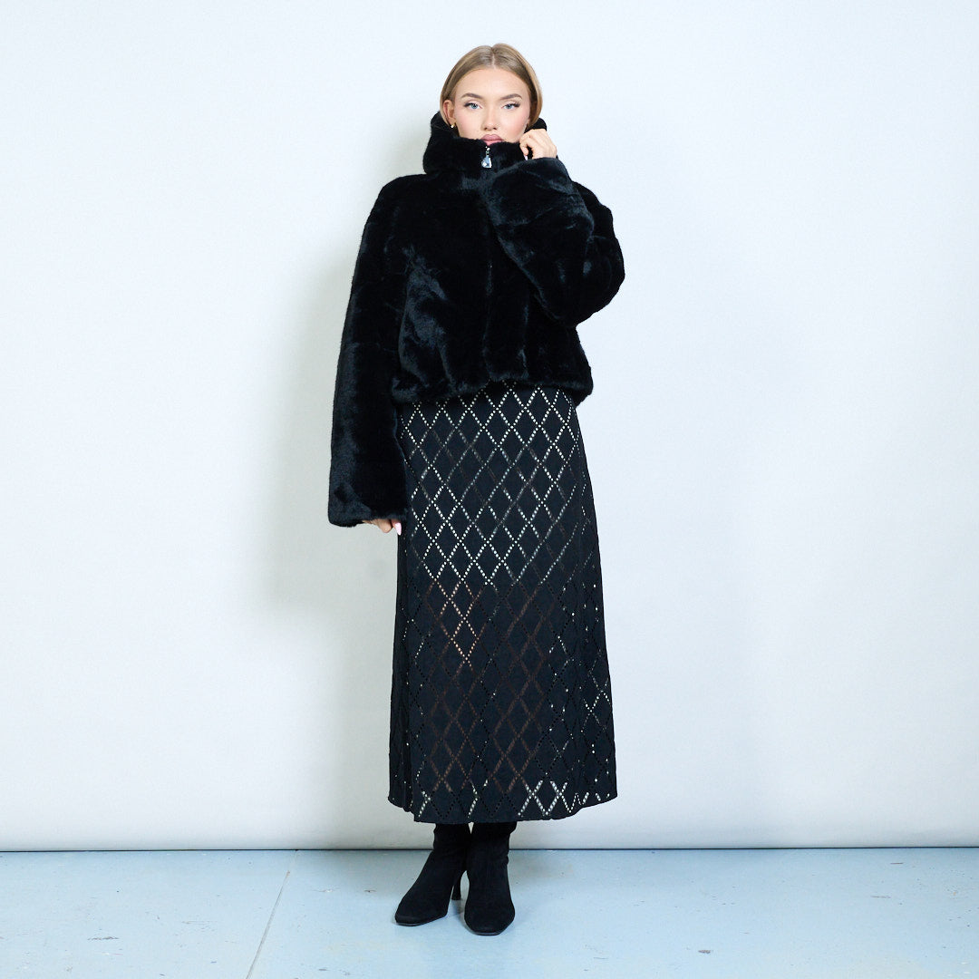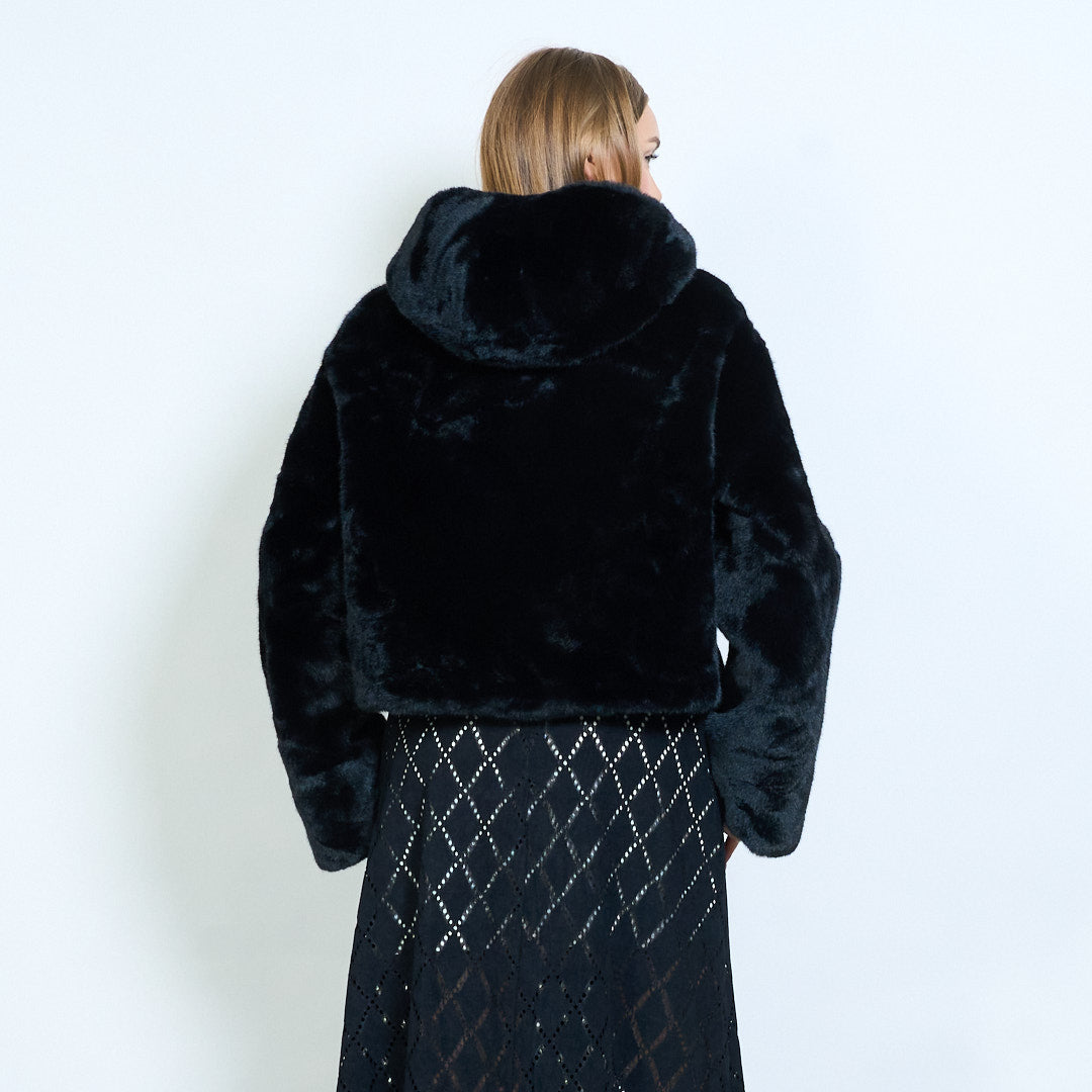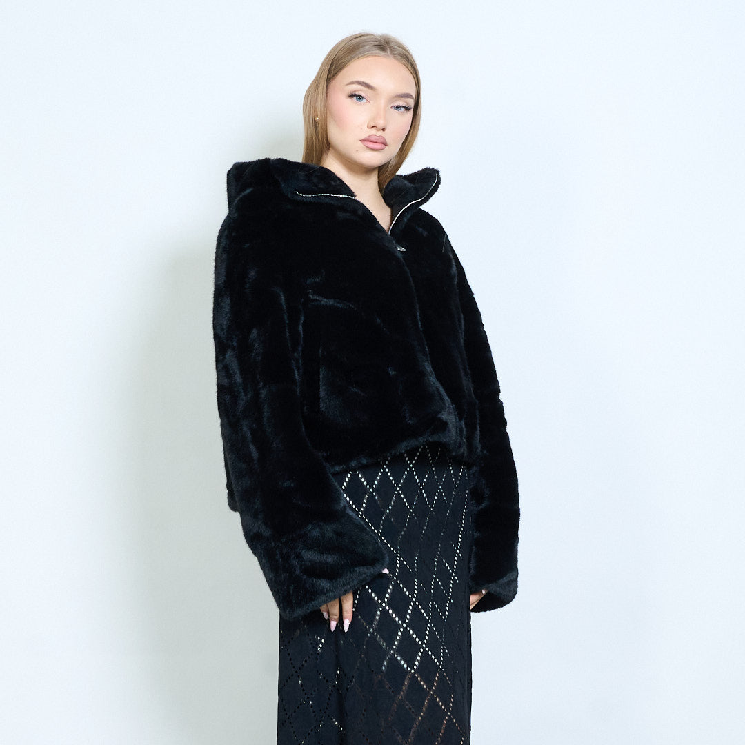 Plüsch-Kunstfell-Kurzjacke mit Reißverschluss vorne und breitem Kragen im Großhandel