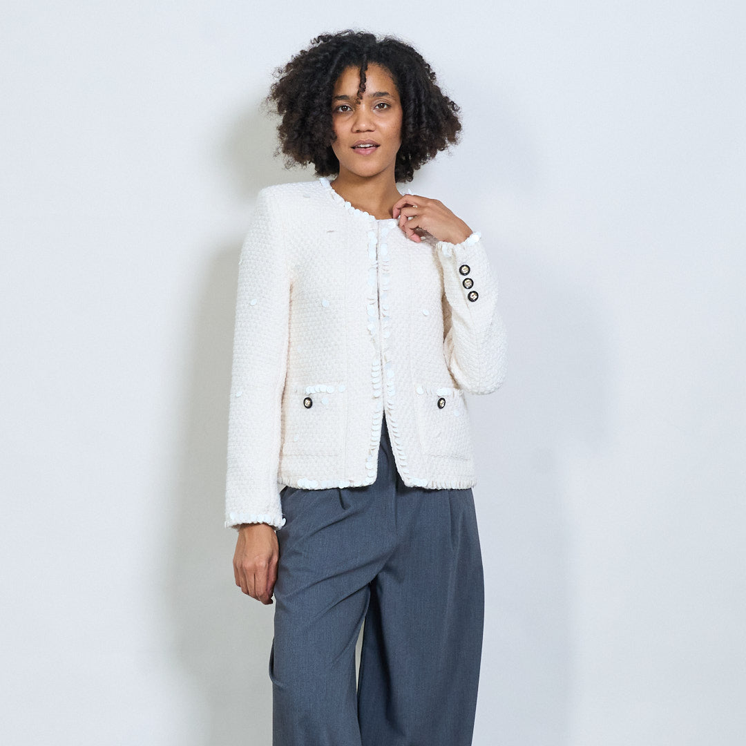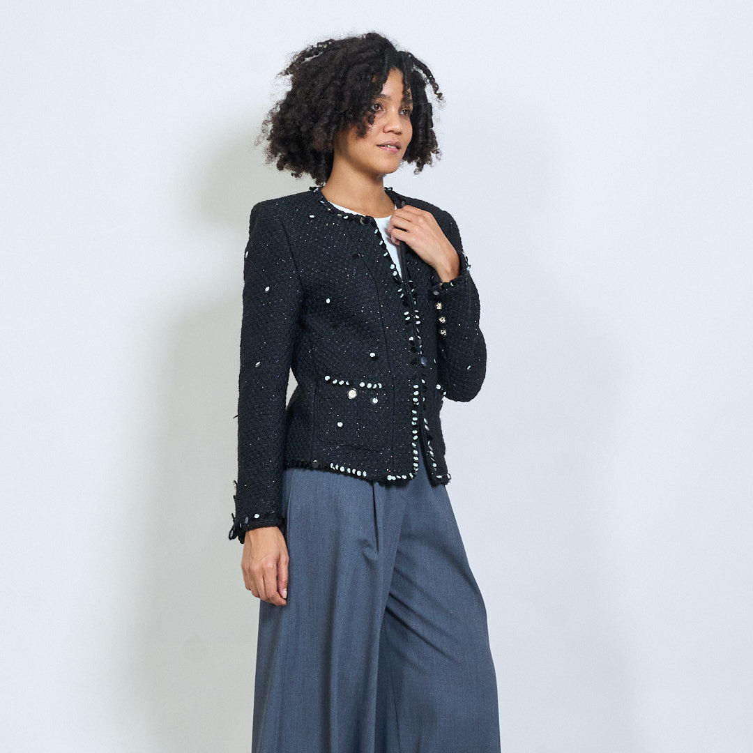 Verzerzte Tweed Blazer mit Paillettendetails Großhandel