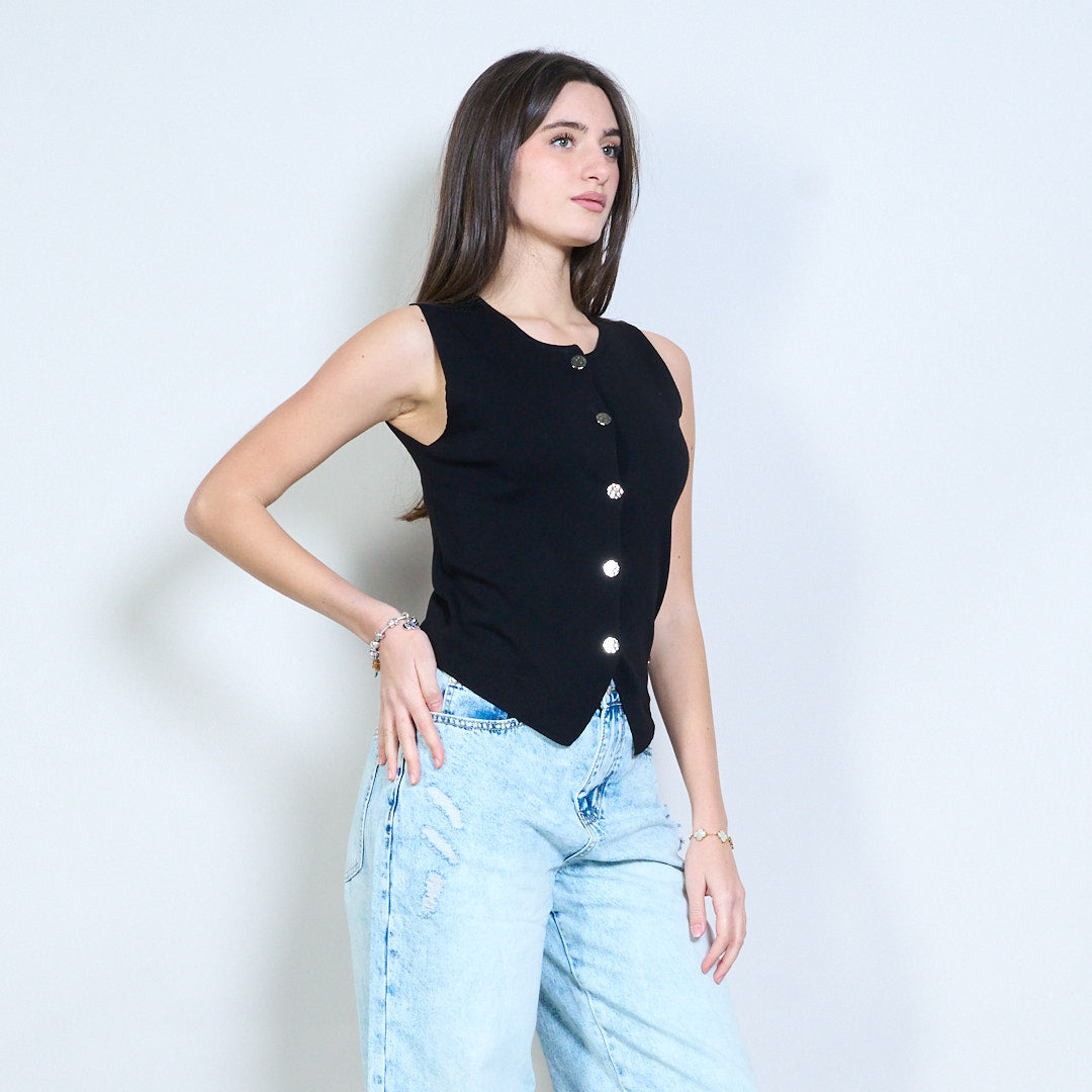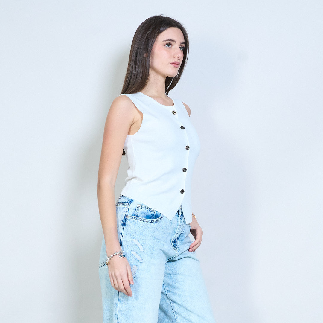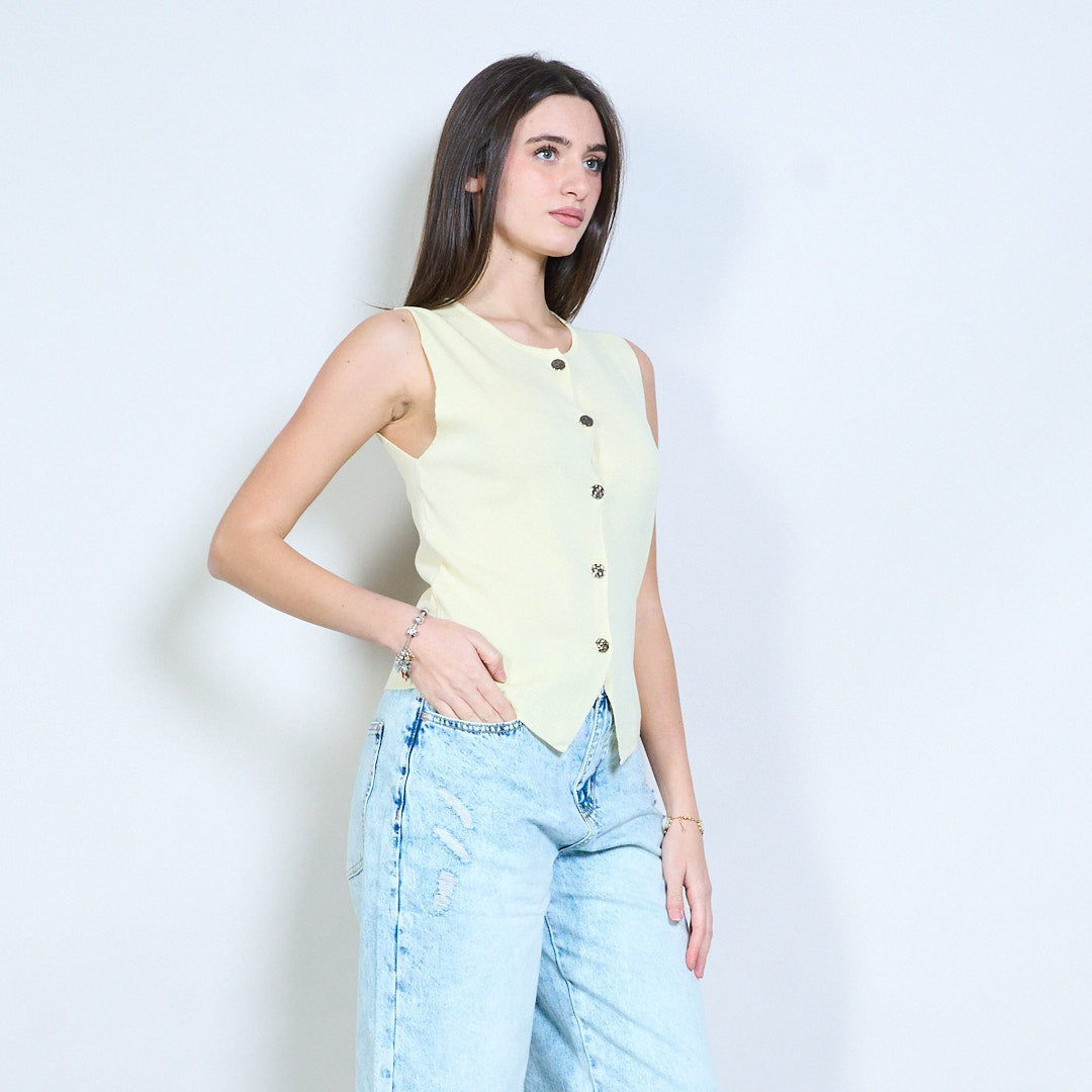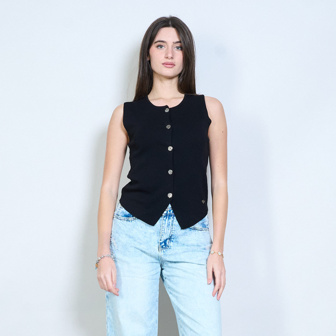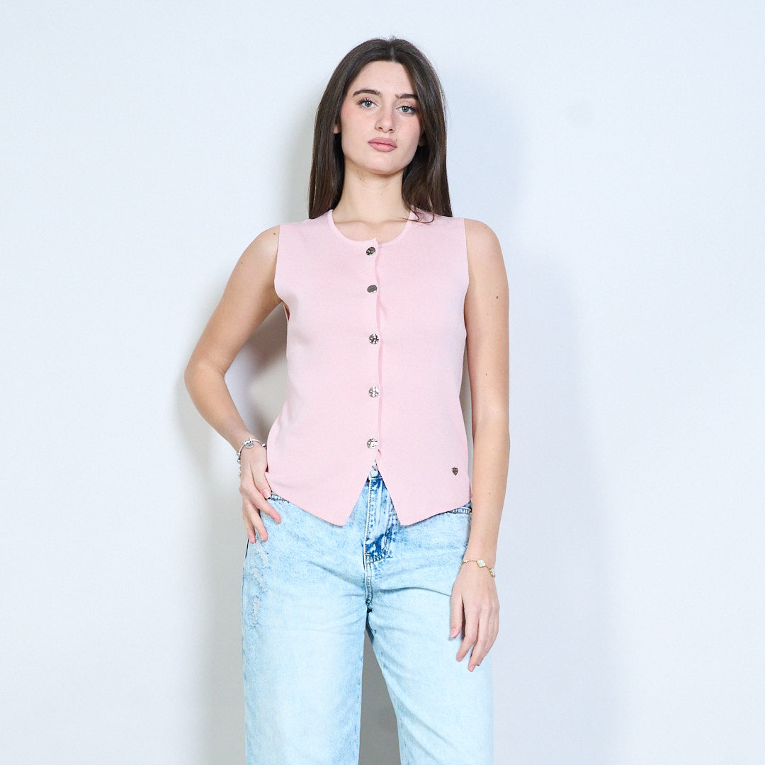 Minimalistisches, gestricktes, ärmelloses Weste-Top mit Knopfleiste vorne im Großhandel