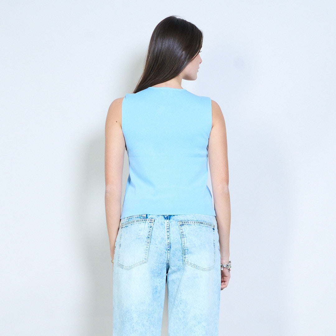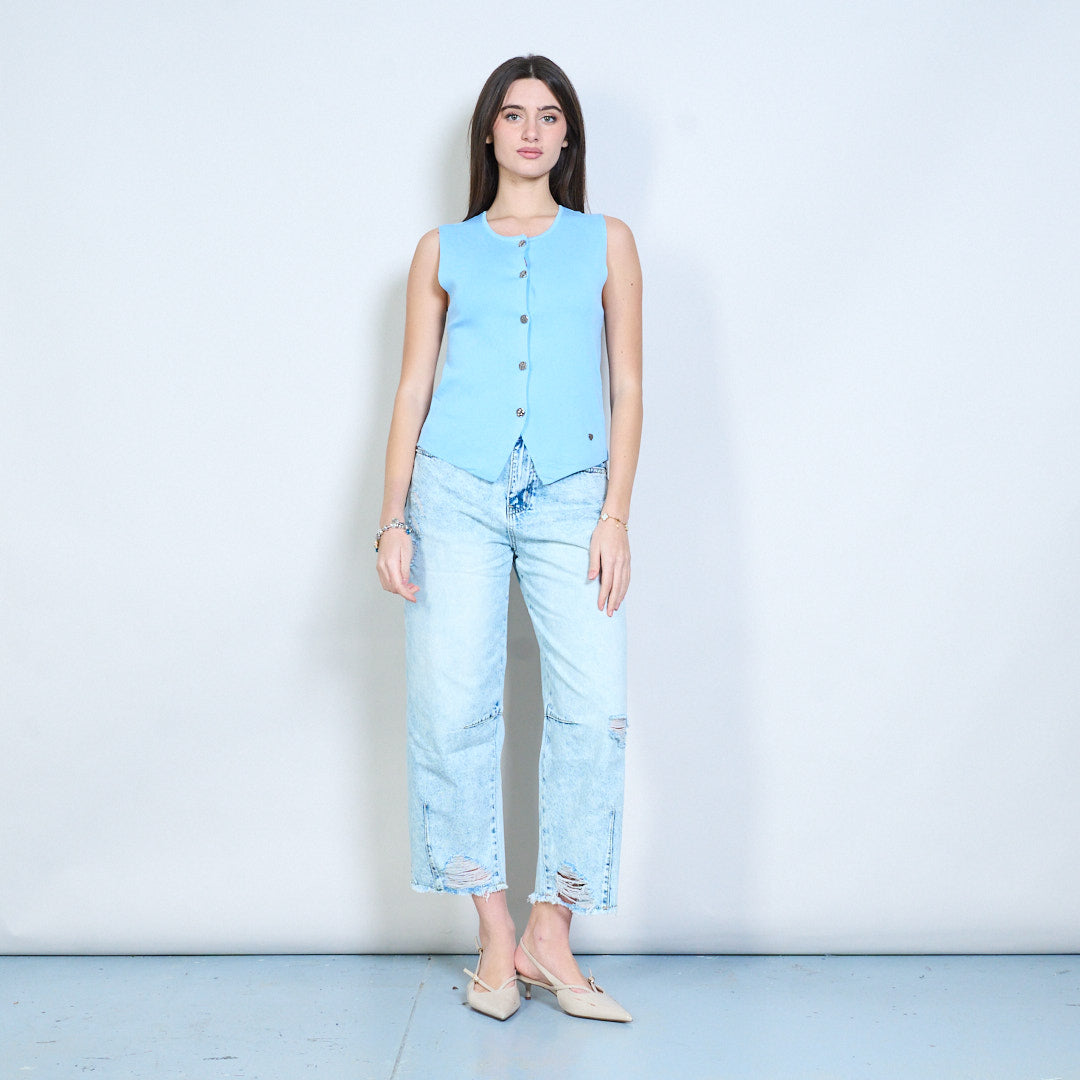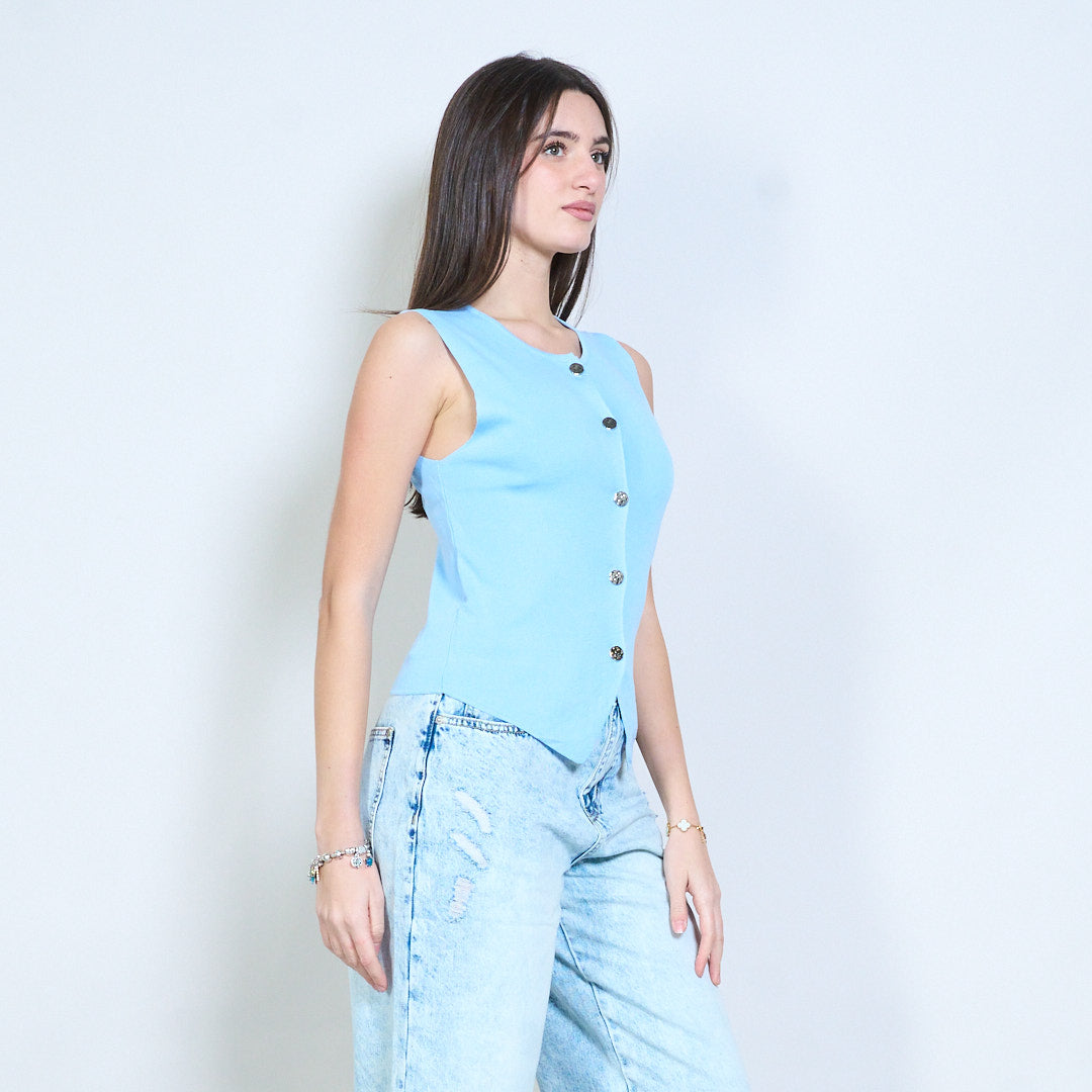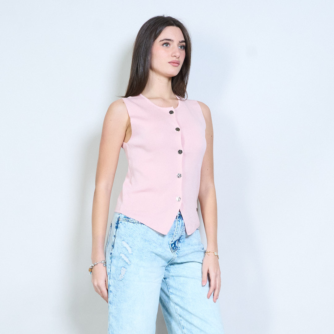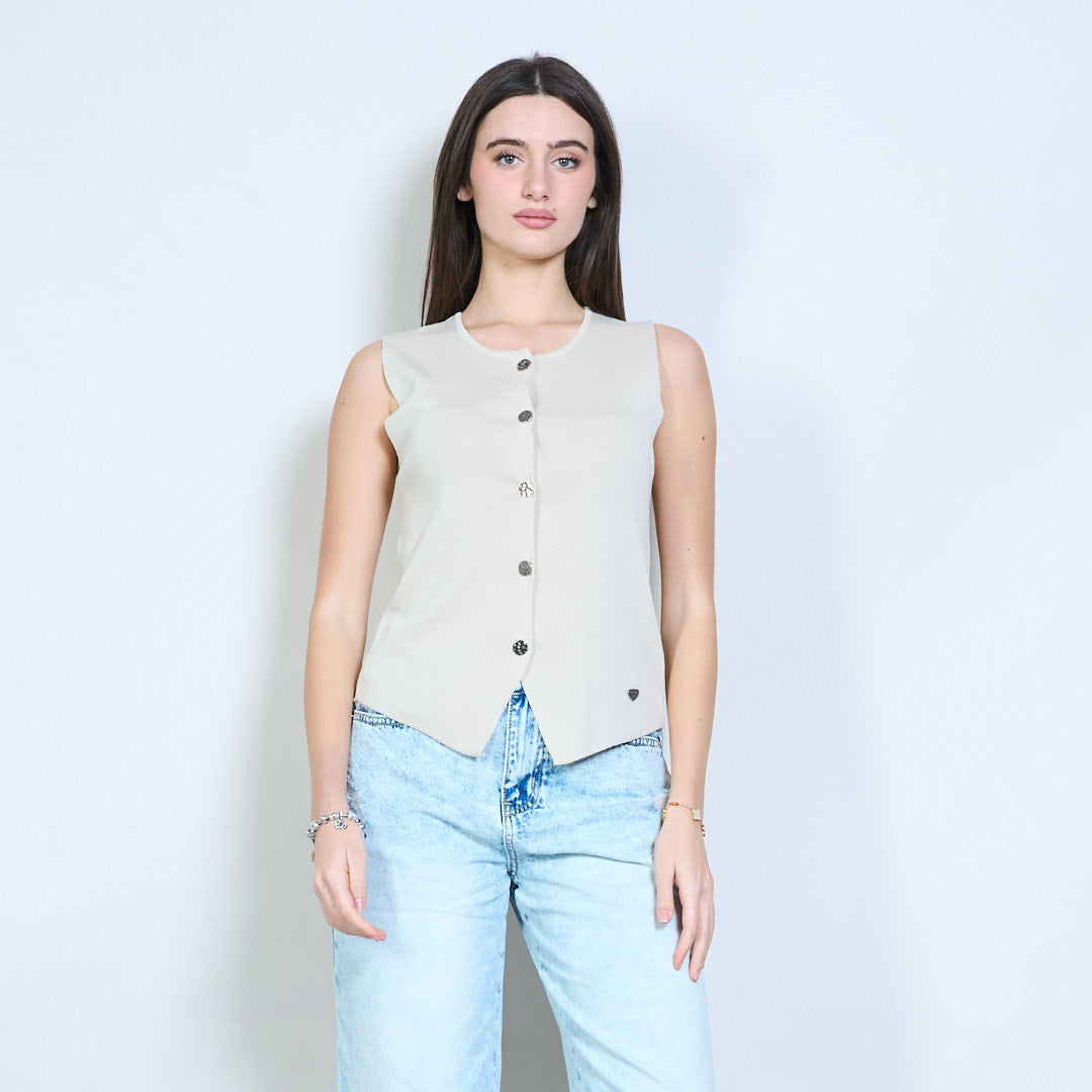 Minimalistisches, gestricktes, ärmelloses Weste-Top mit Knopfleiste vorne im Großhandel
