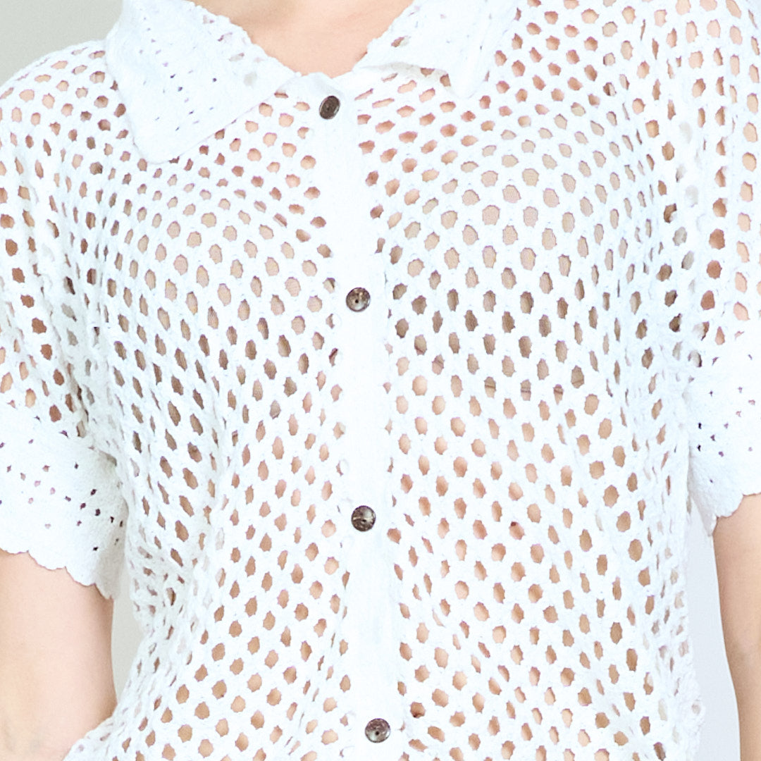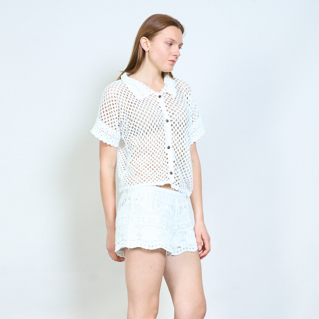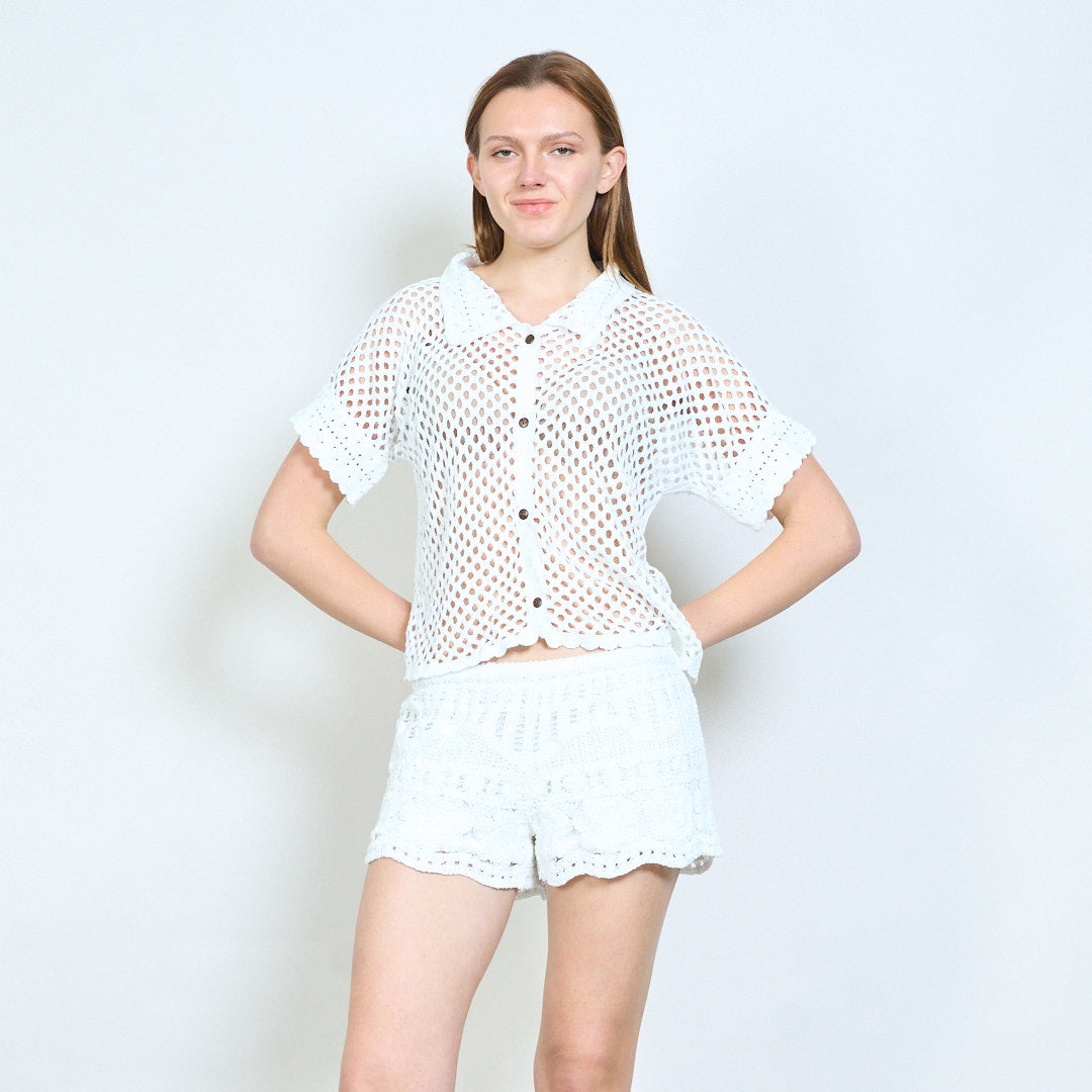 Offen gestricktes, kurzärmliges Oberteil mit Häkelkragen im Großhandel