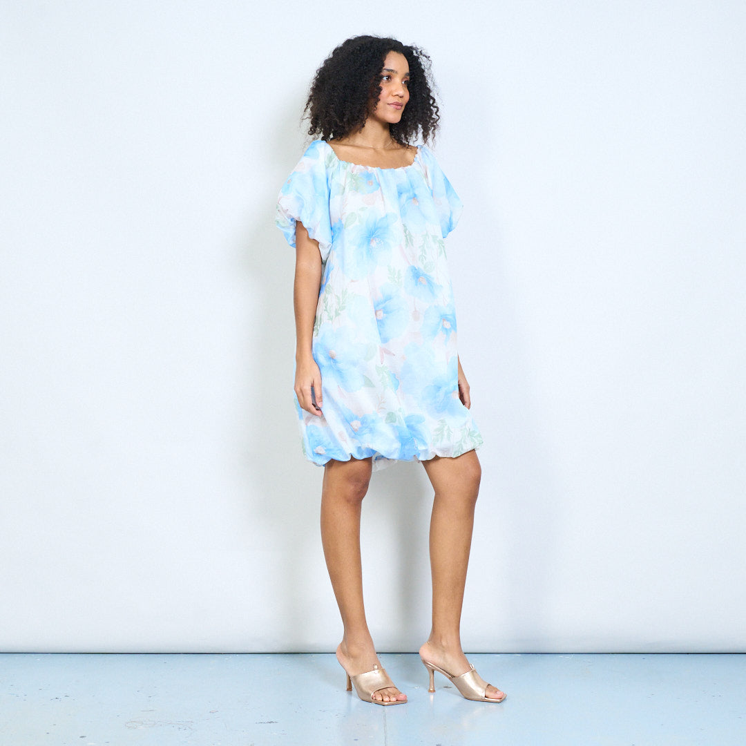 Schulterfreie Chiffonbluse mit Aquarellblumen im Großhandel