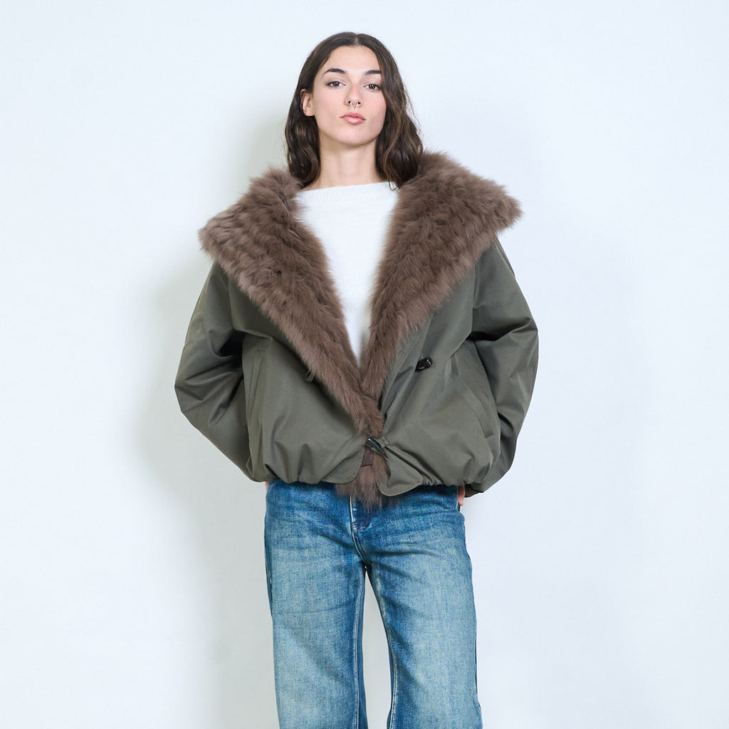 Winterparkajacke mit Kunstpelzbesatz und Kapuze im Großhandel