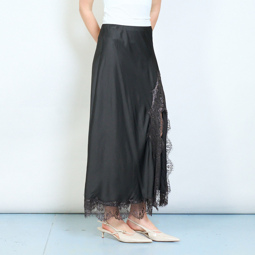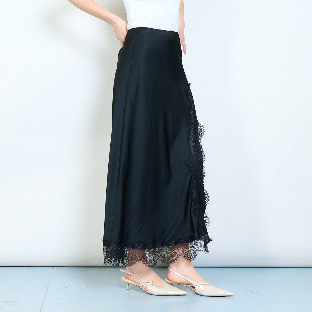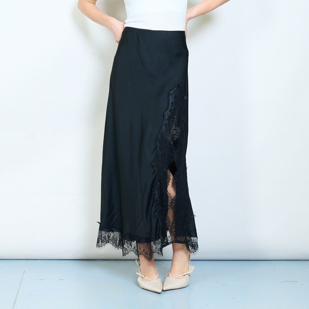 Eleganter, gerader Midi-Rock mit Spitzenbesatz und fließendem Fall