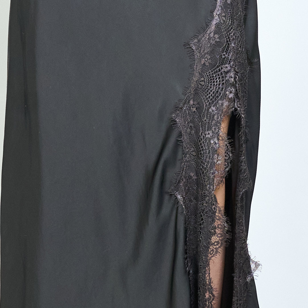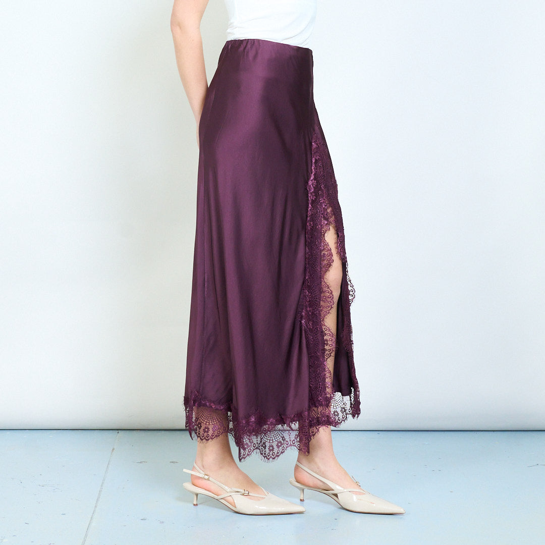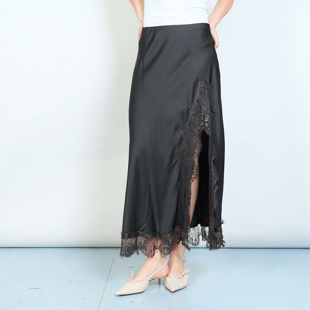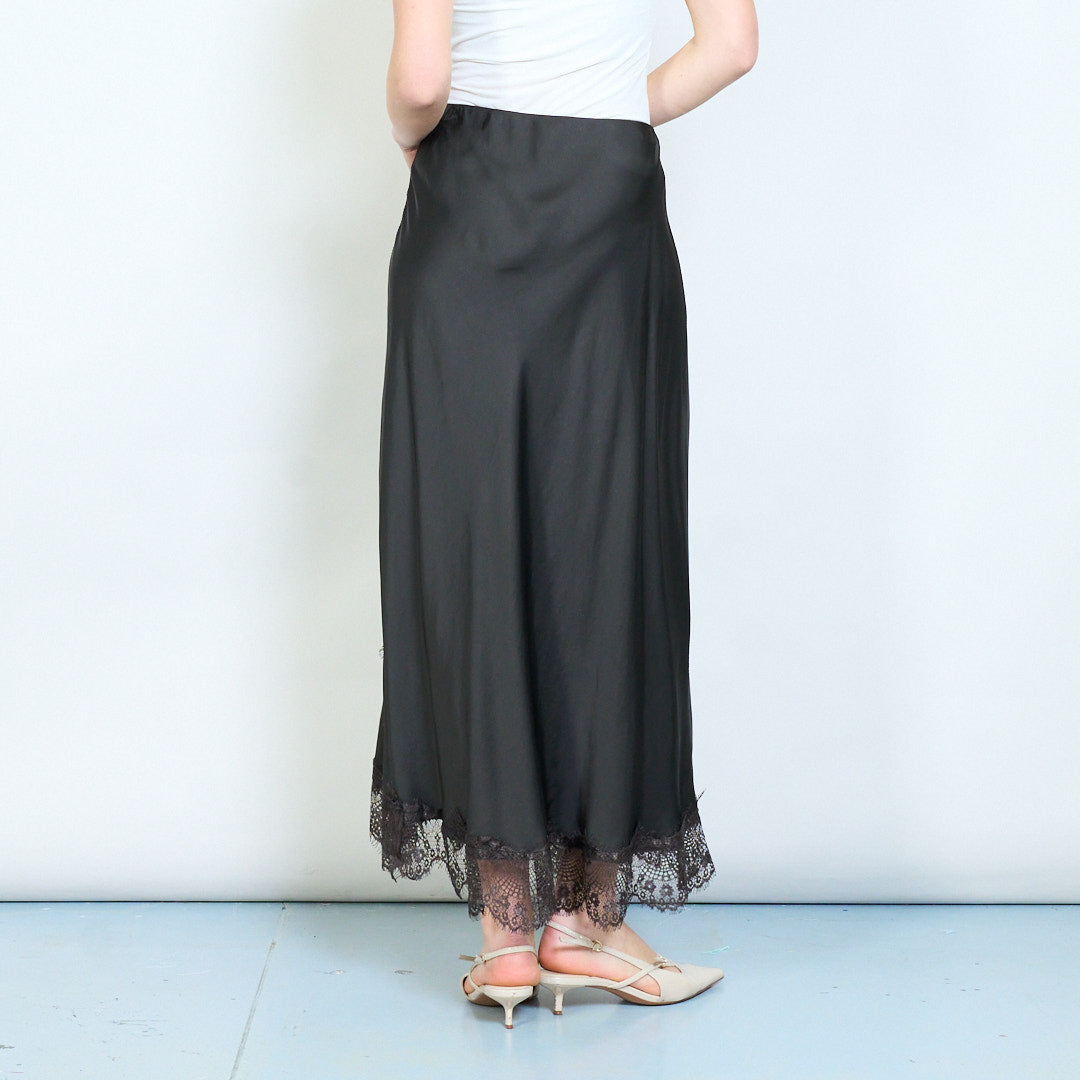 Eleganter, gerader Midi-Rock mit Spitzenbesatz und fließendem Fall