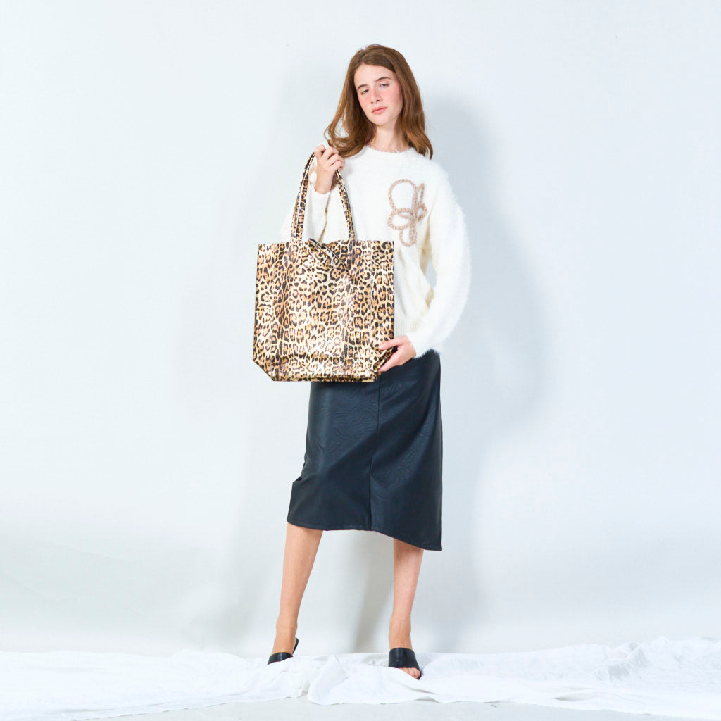 Hochglanz -Einkaufstasche mit Leopardenmuster Großhandel