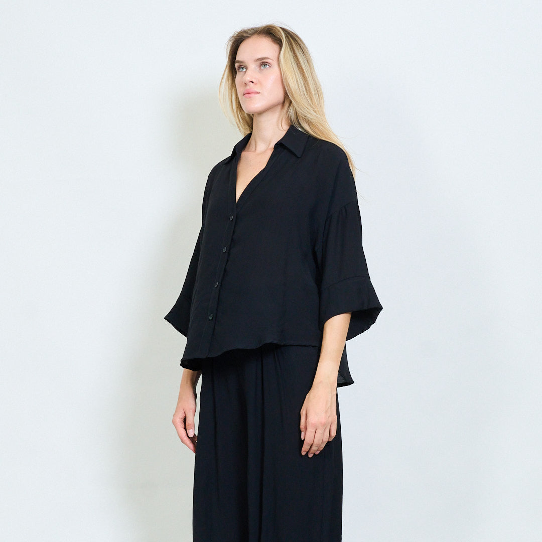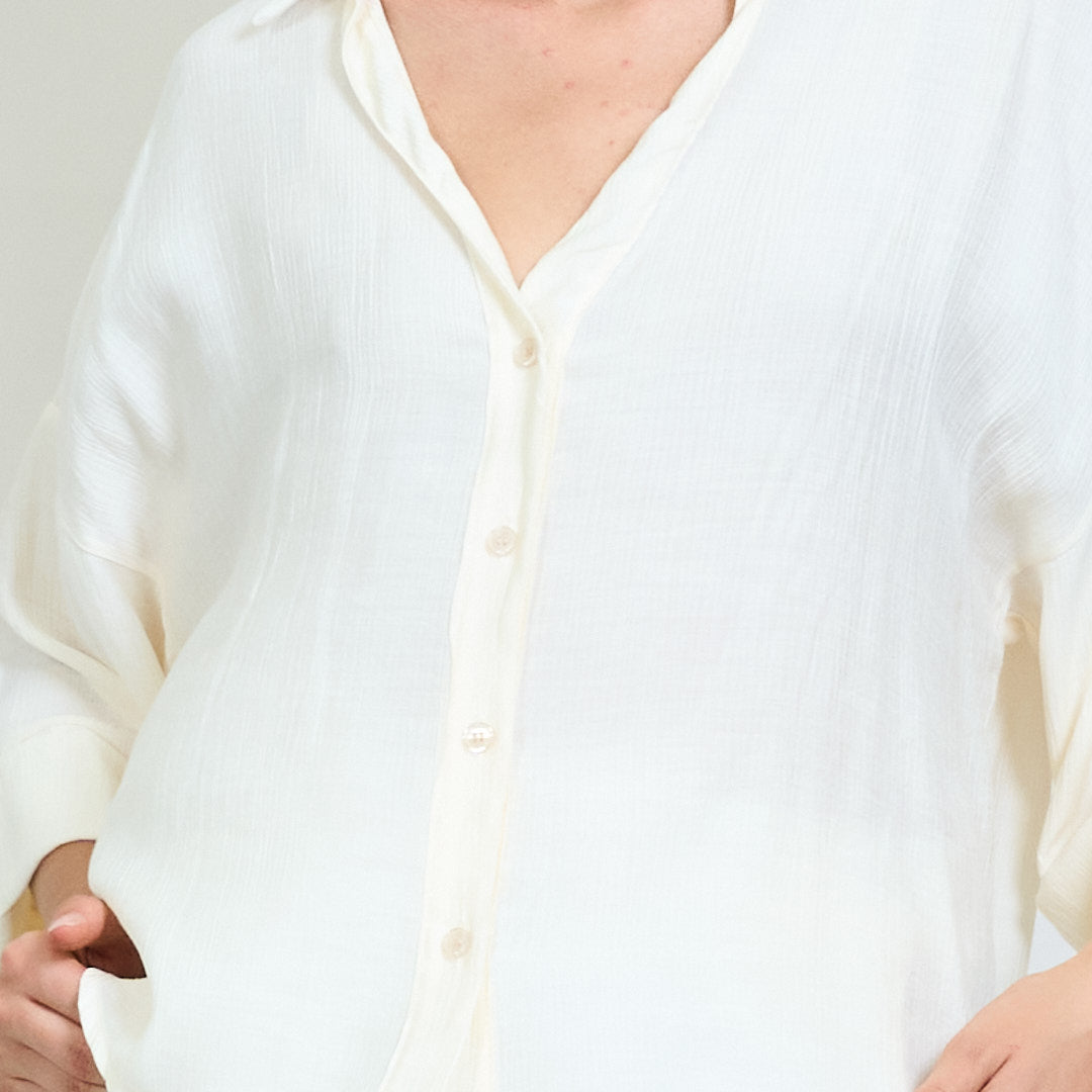 - Klassischer Hemdkragen mit V-Ausschnitt-Öffnung