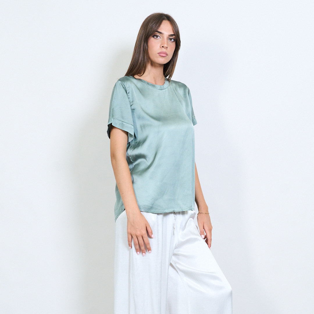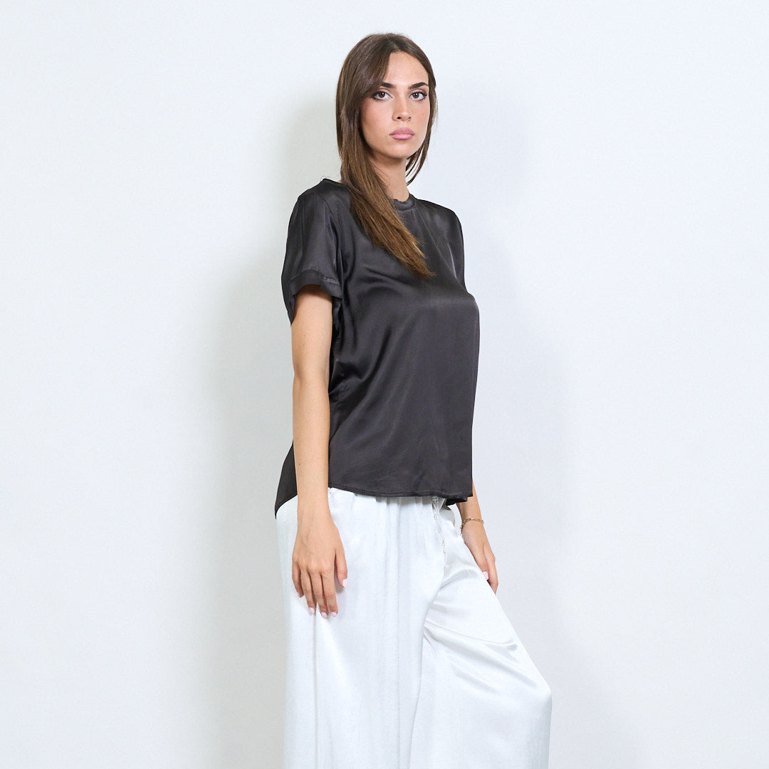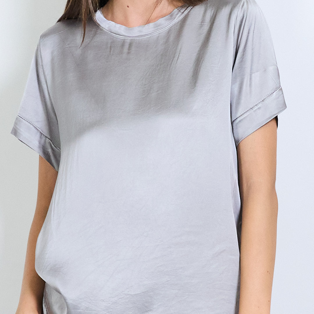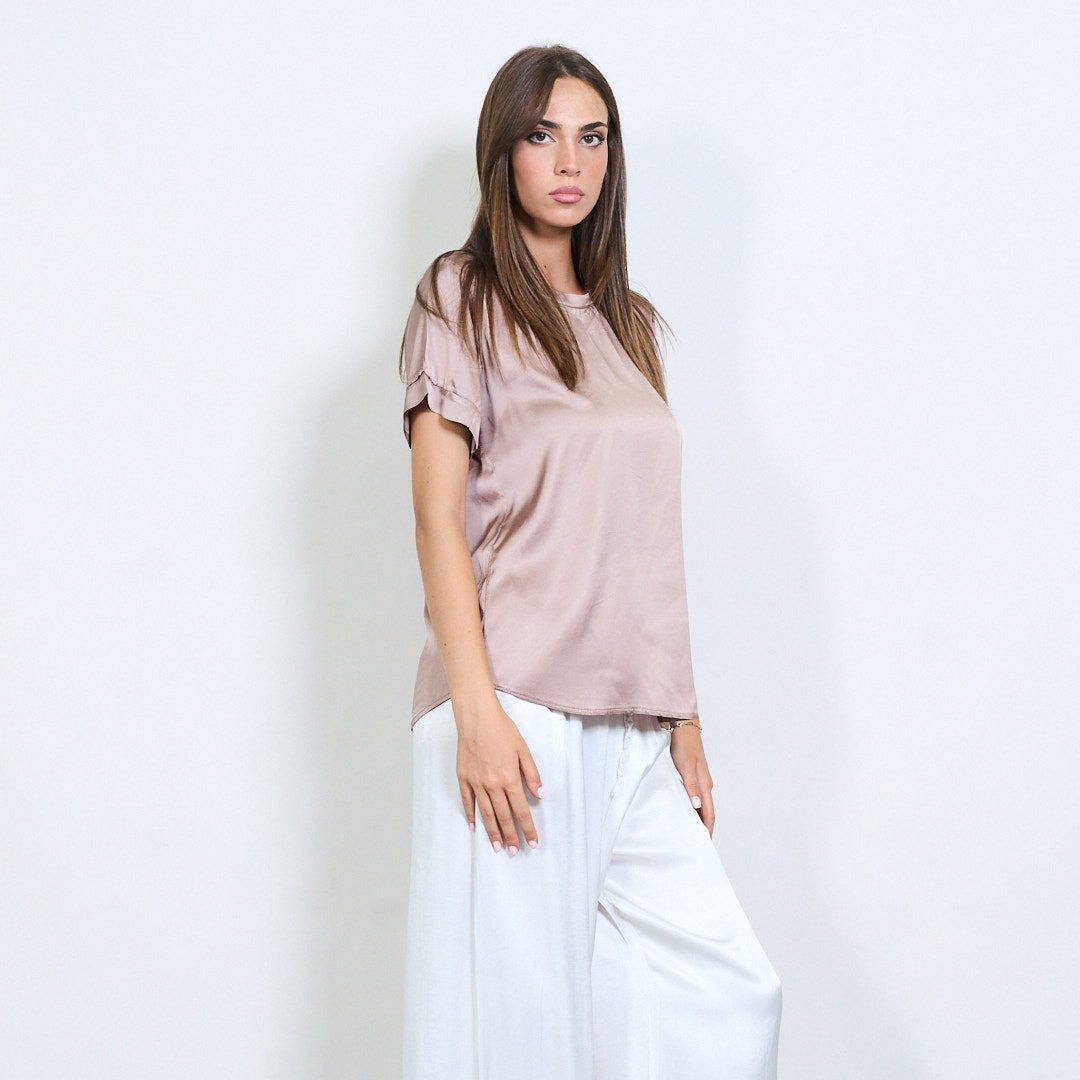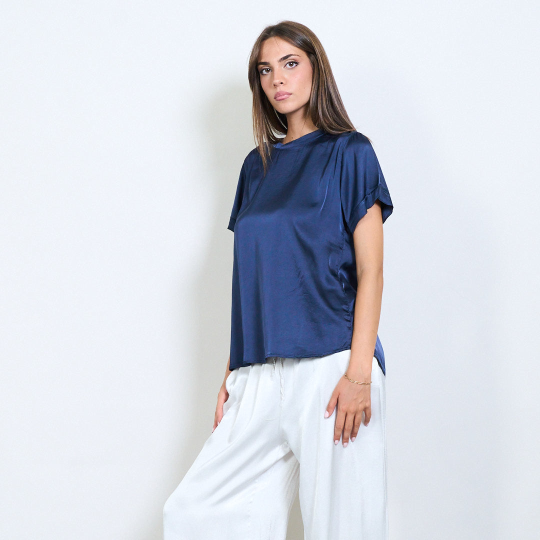 Kurzarm -Satin -Effekt entspannter Bluse Großhandel