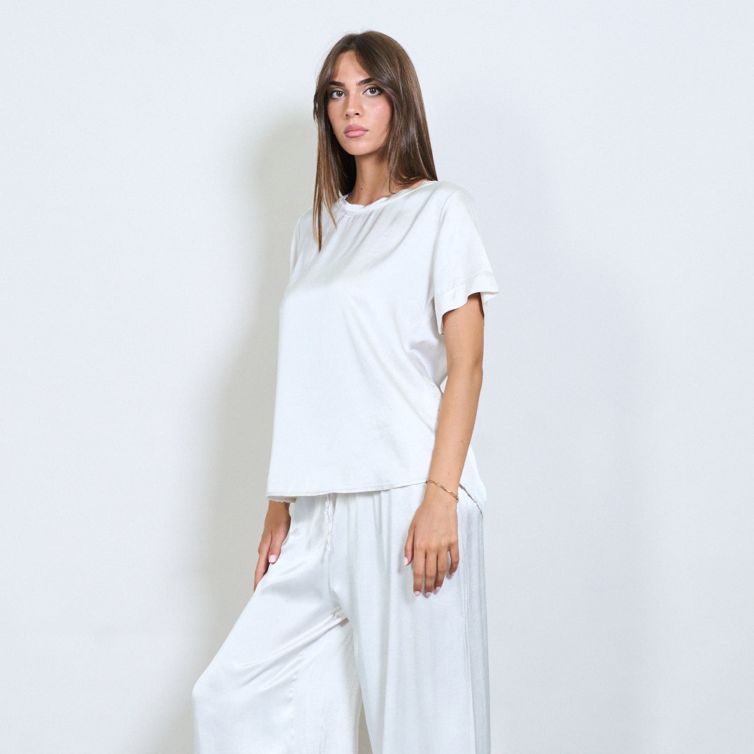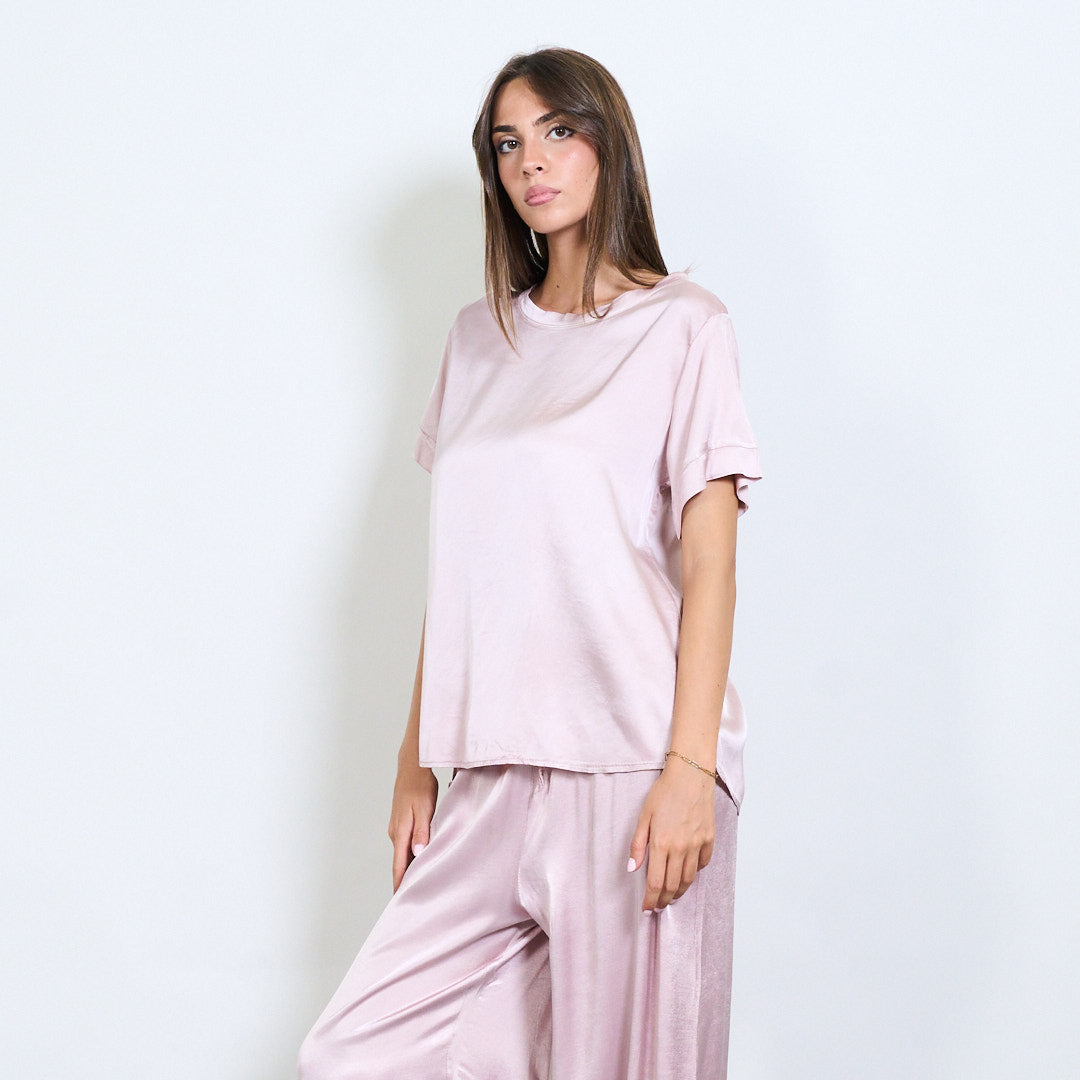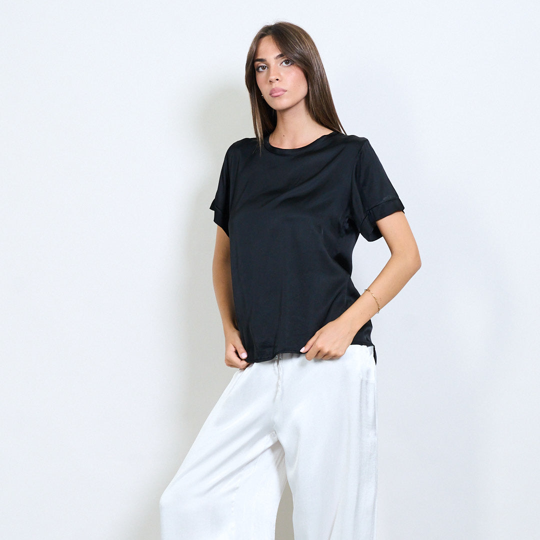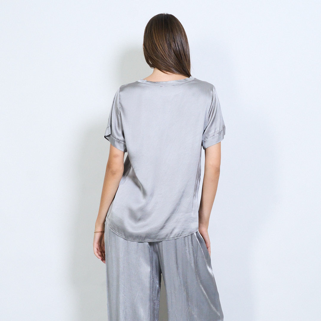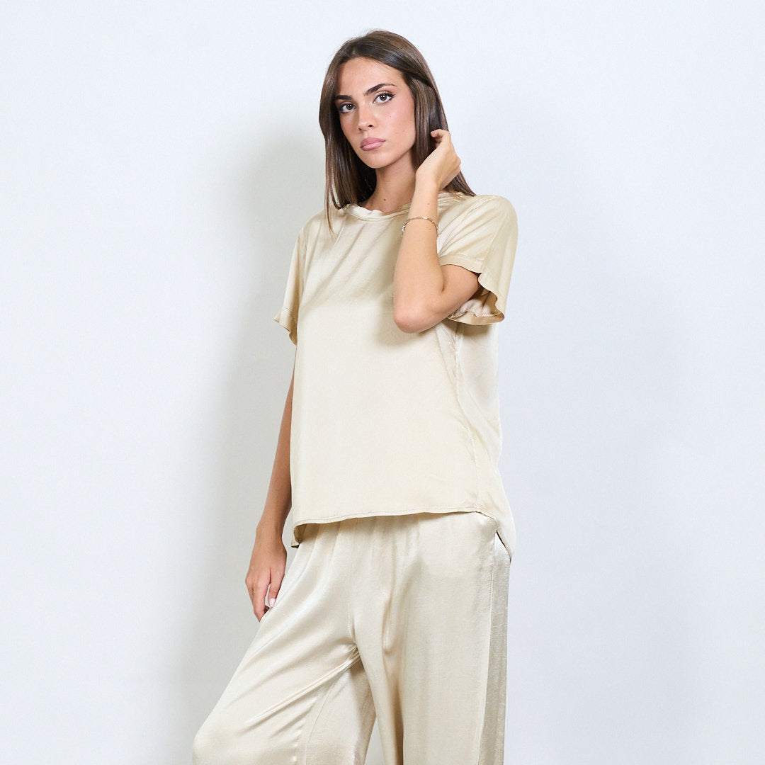 Kurzarm -Satin -Effekt entspannter Bluse Großhandel