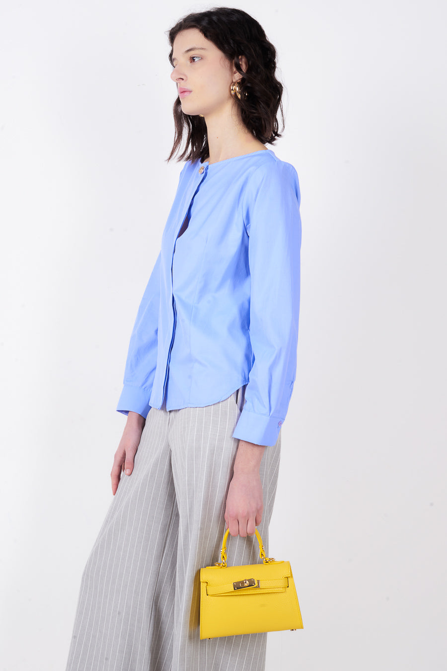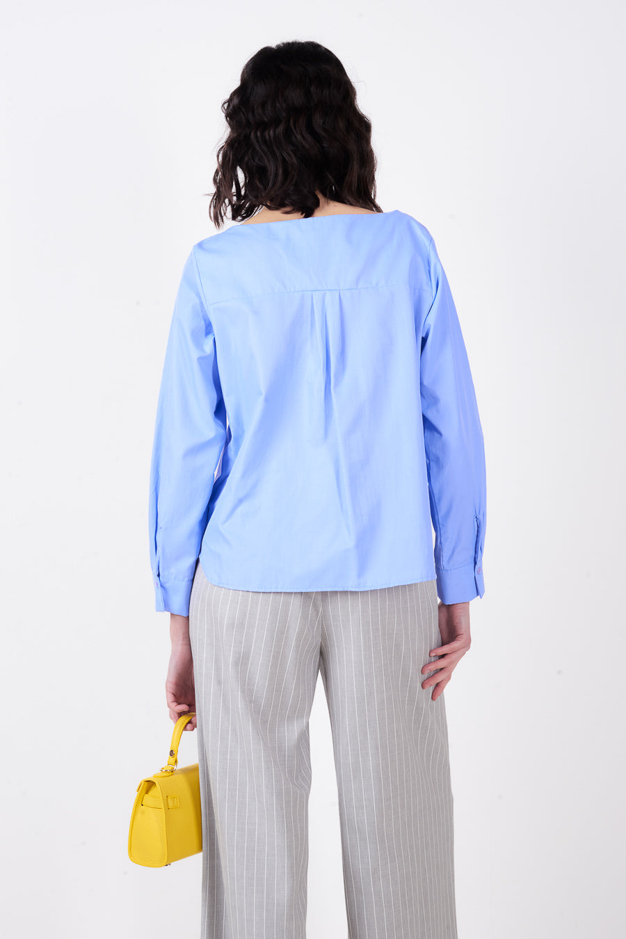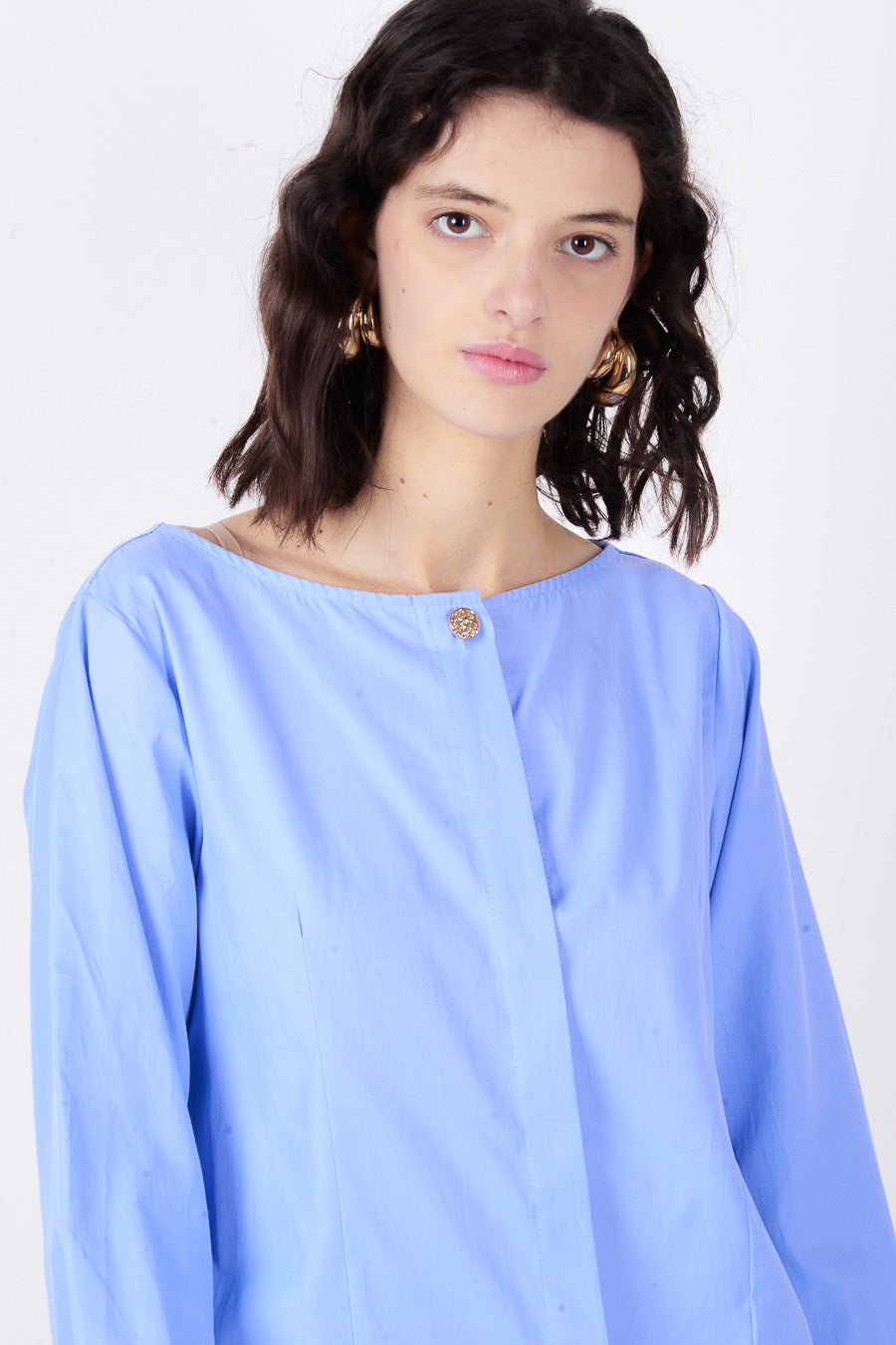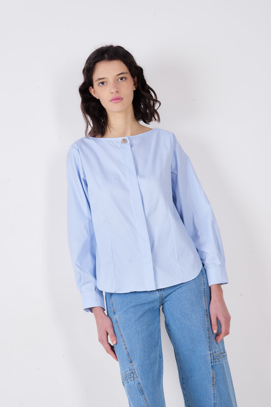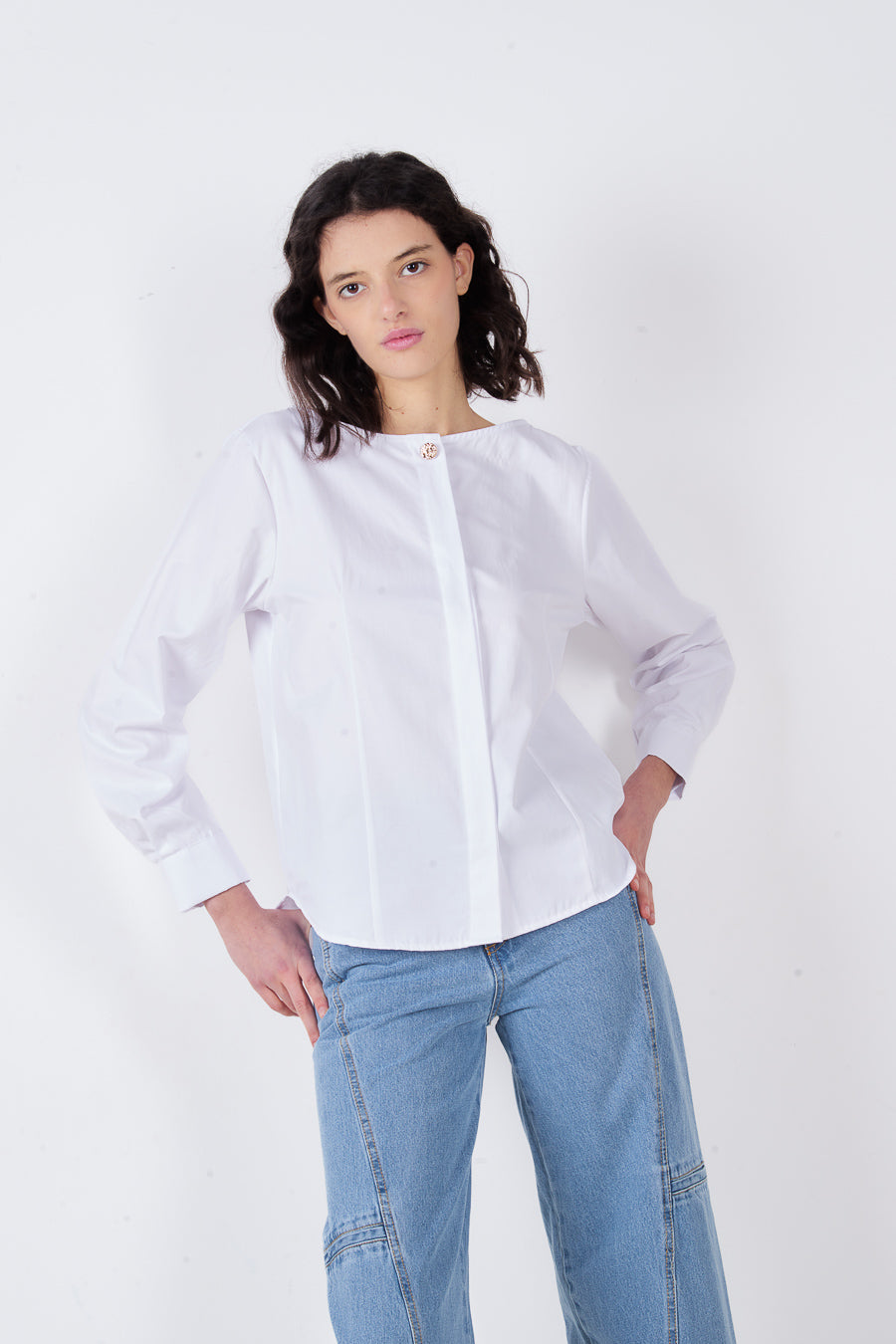Minimale Baumwollbluse mit Rundhalsausschnitt und Knopfdetail im Großhandel