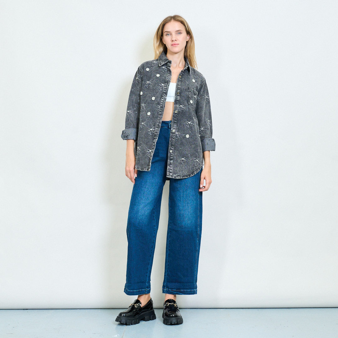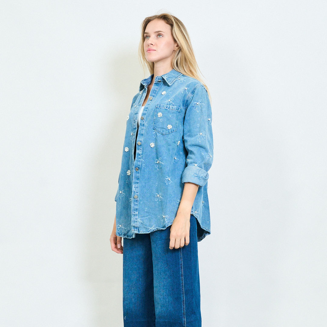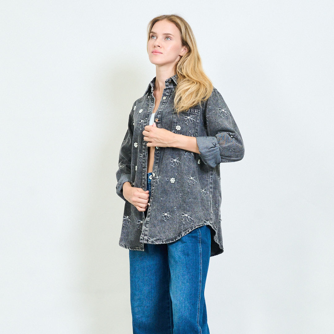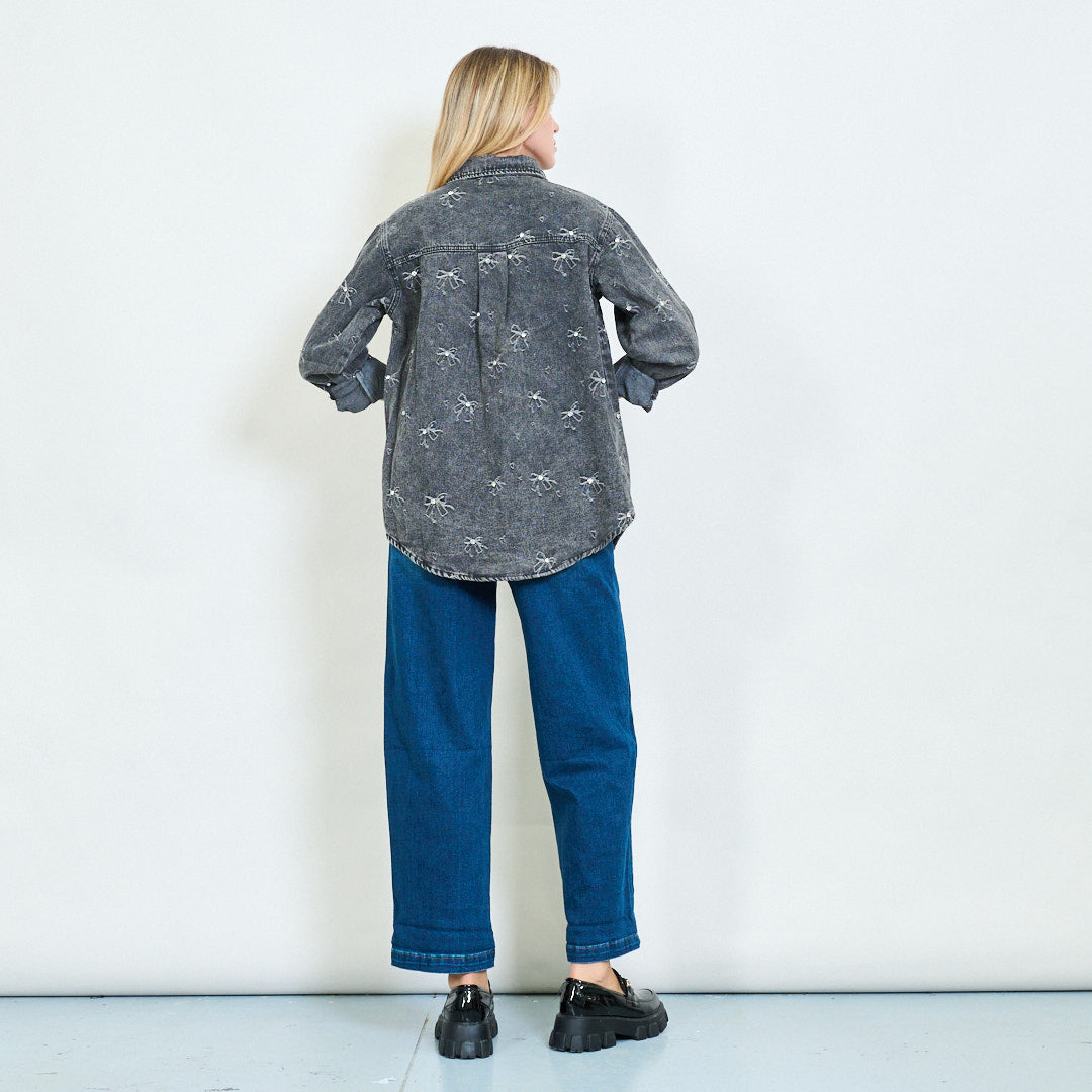 - Wäsche Denim-Hemd mit All-Over-bestickten Bogenmotiven