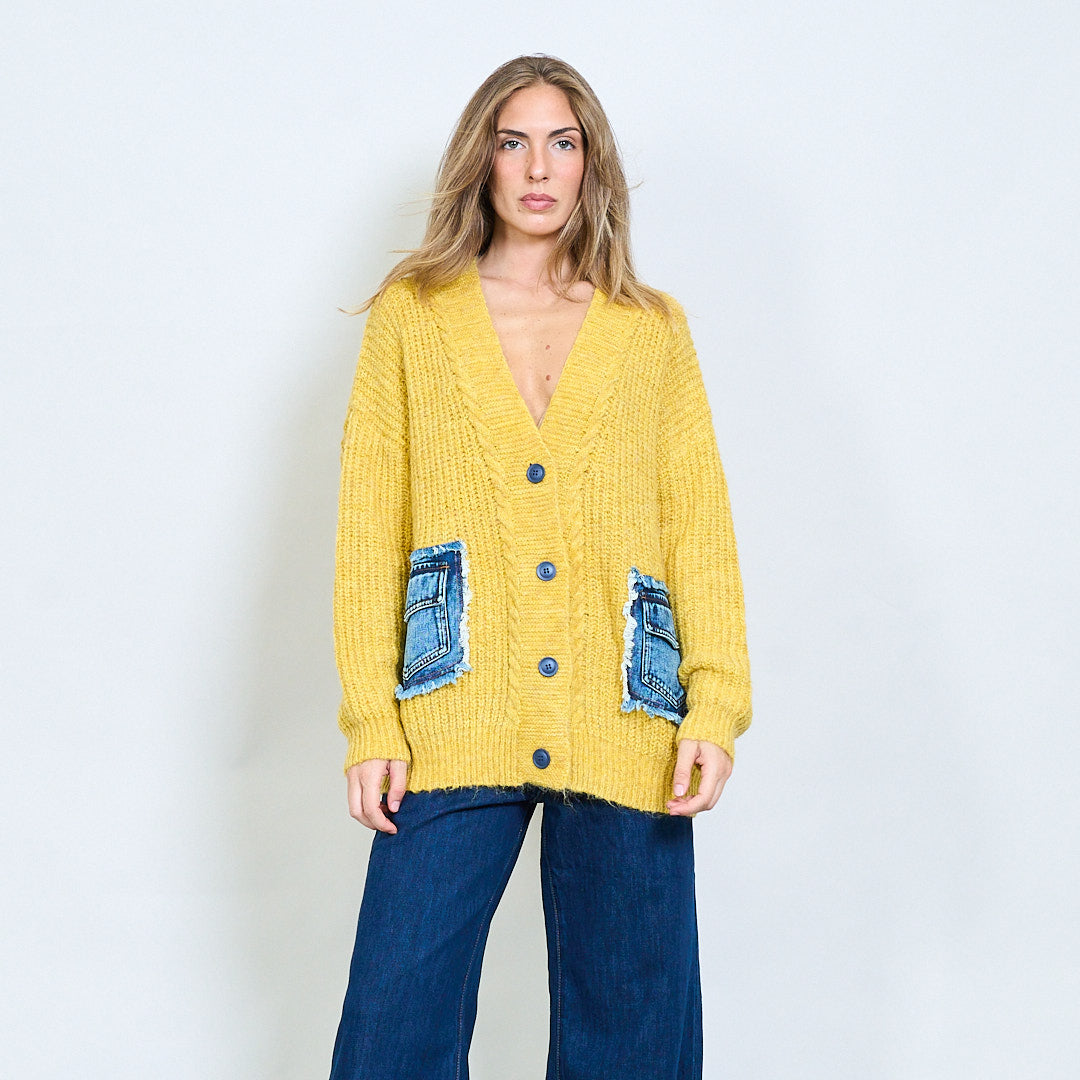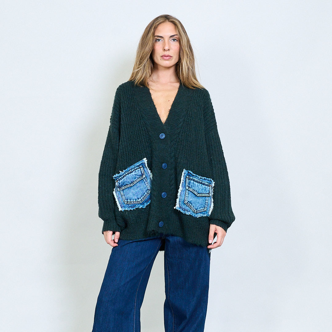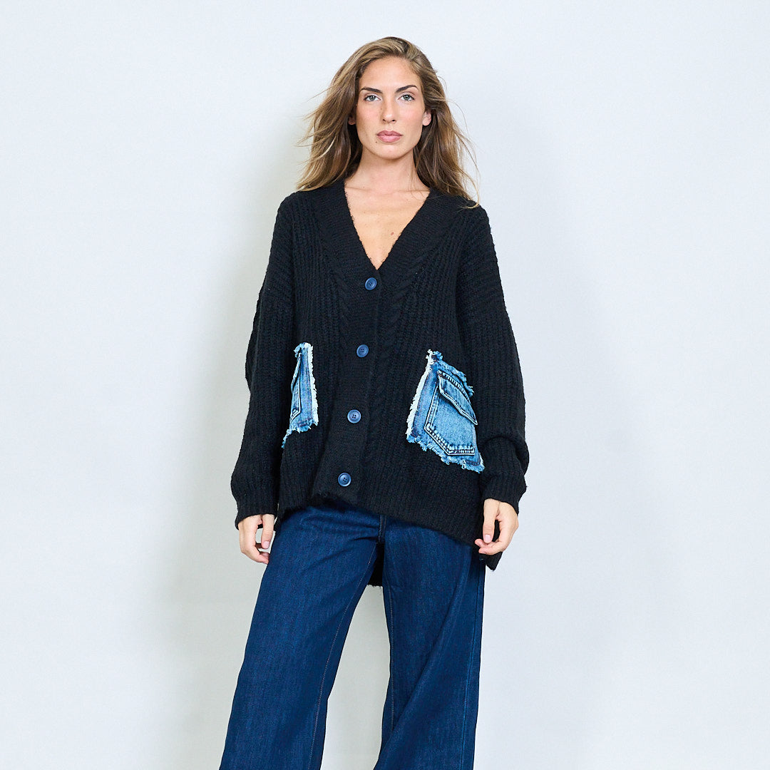 Klobige Strick -Strickjacke mit Denim -Taschen Großhandel
