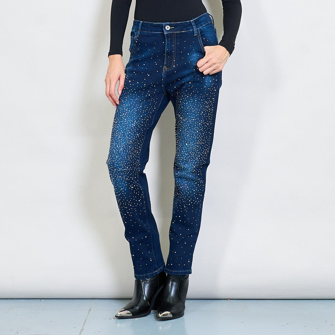 Mittelhaut verschönerte Jeanshosen mit All-Over-Strass-Detailgroßhandel