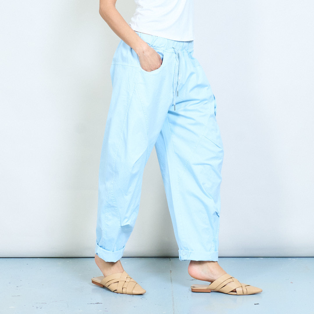 Entspannte Freizeithose aus pastellfarbener Baumwolle mit Kordelzug und elastischem Bund im Großhandel