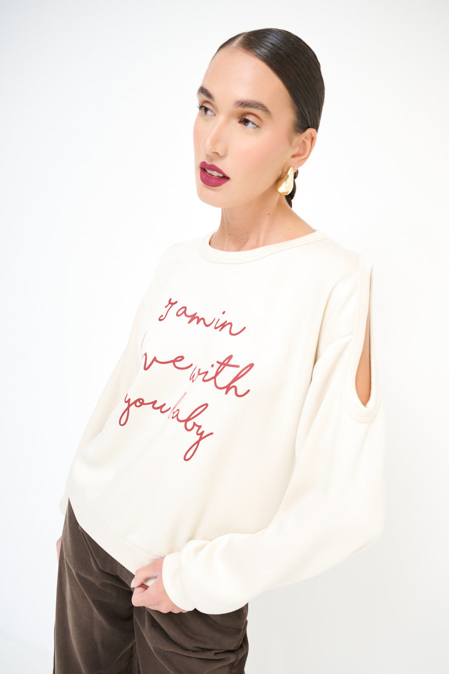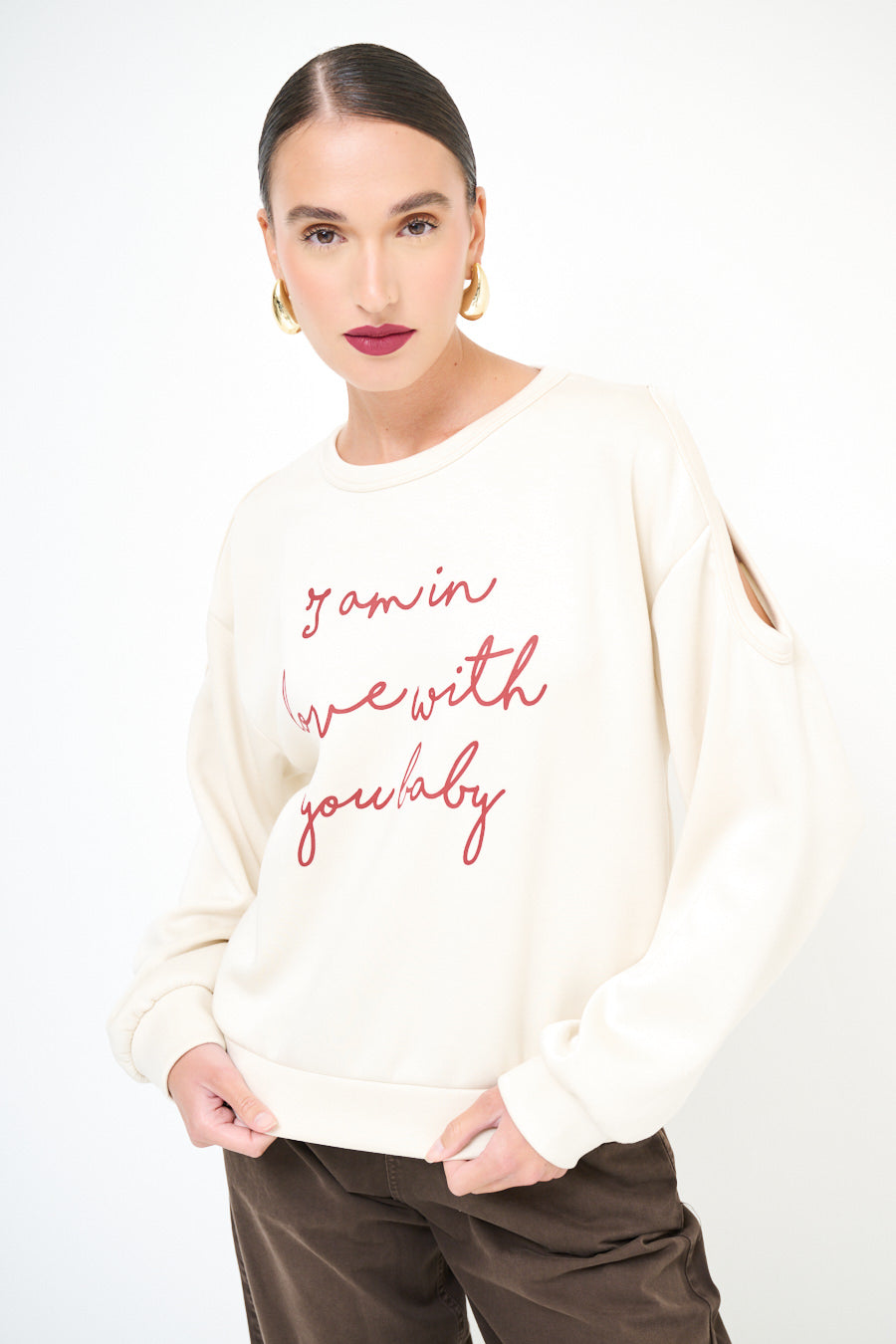 Grafische "Ich bin in dich verliebt in dich Baby" gedruckte Ausschnitts -Schulter -Sweatshirt im Großhandel